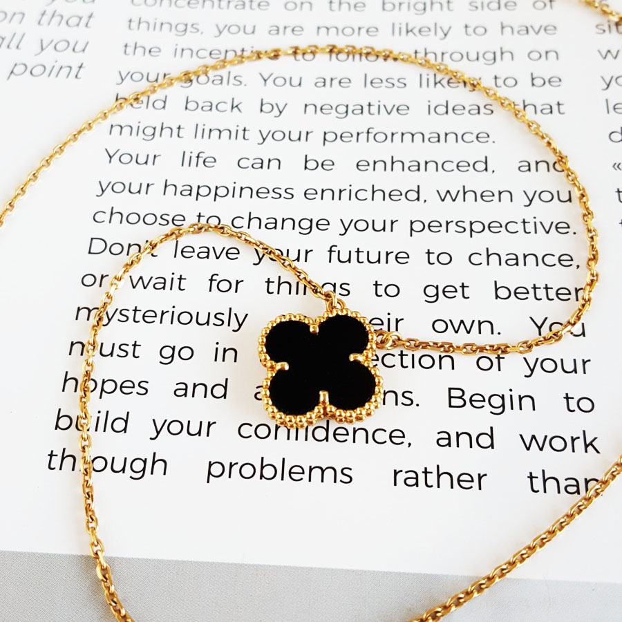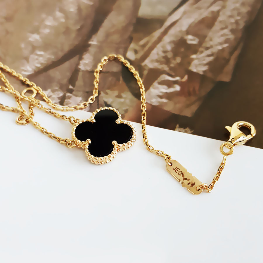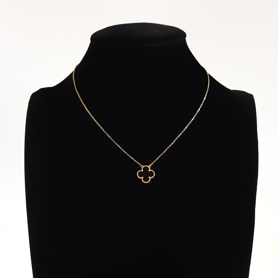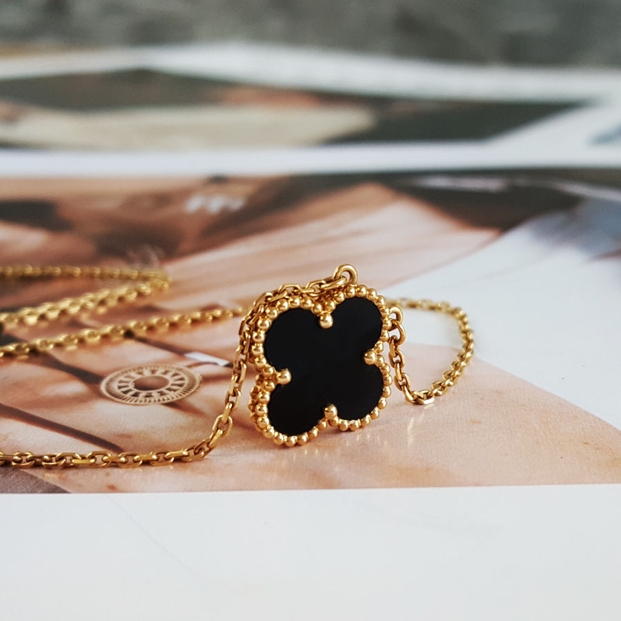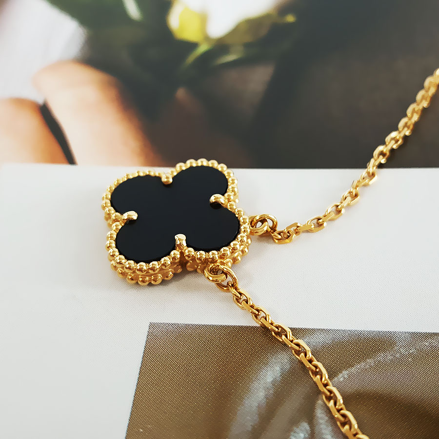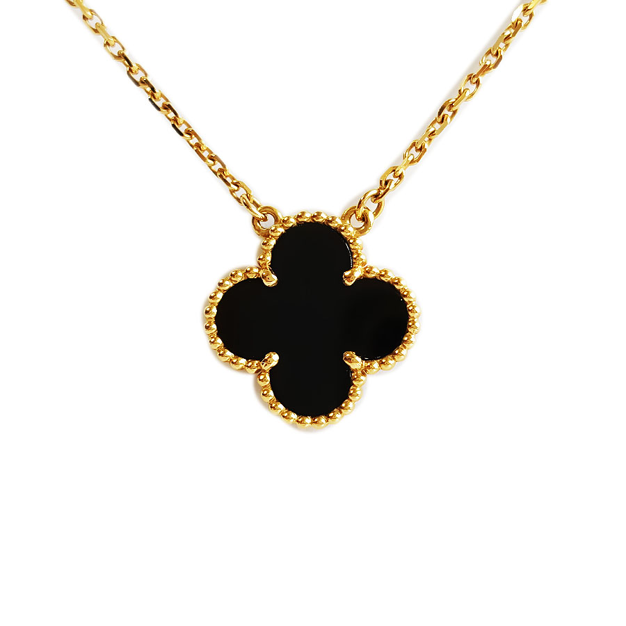 款式 | 中号18K黄金镶黑玛瑙四叶草老扣黑花项链 |