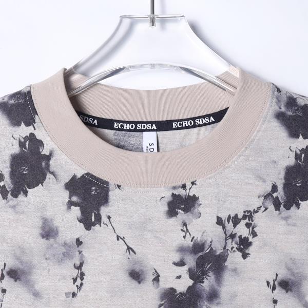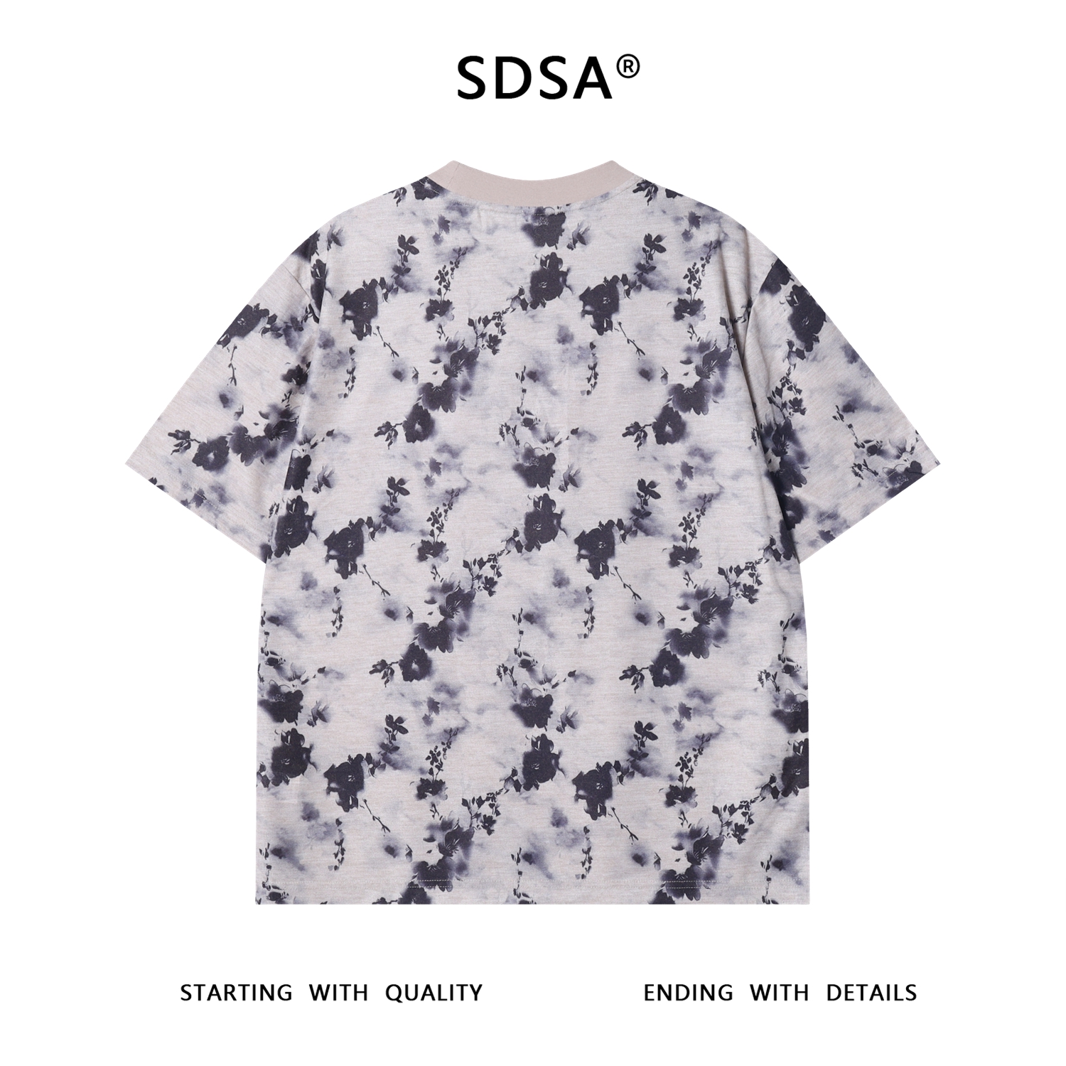 T3609夏季高级感新款男士水墨花卉图案短袖T恤国风百搭简约圆领上衣