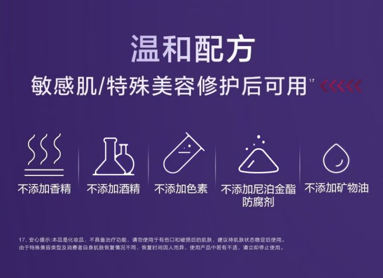 1.护肤品成分各有不同,敏感性肌肤的人士请先在耳后进行测试后再使用。