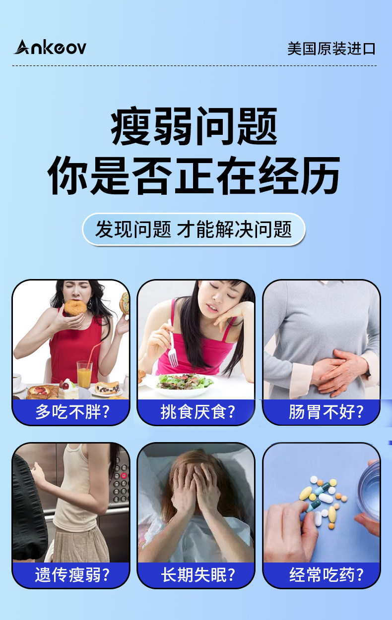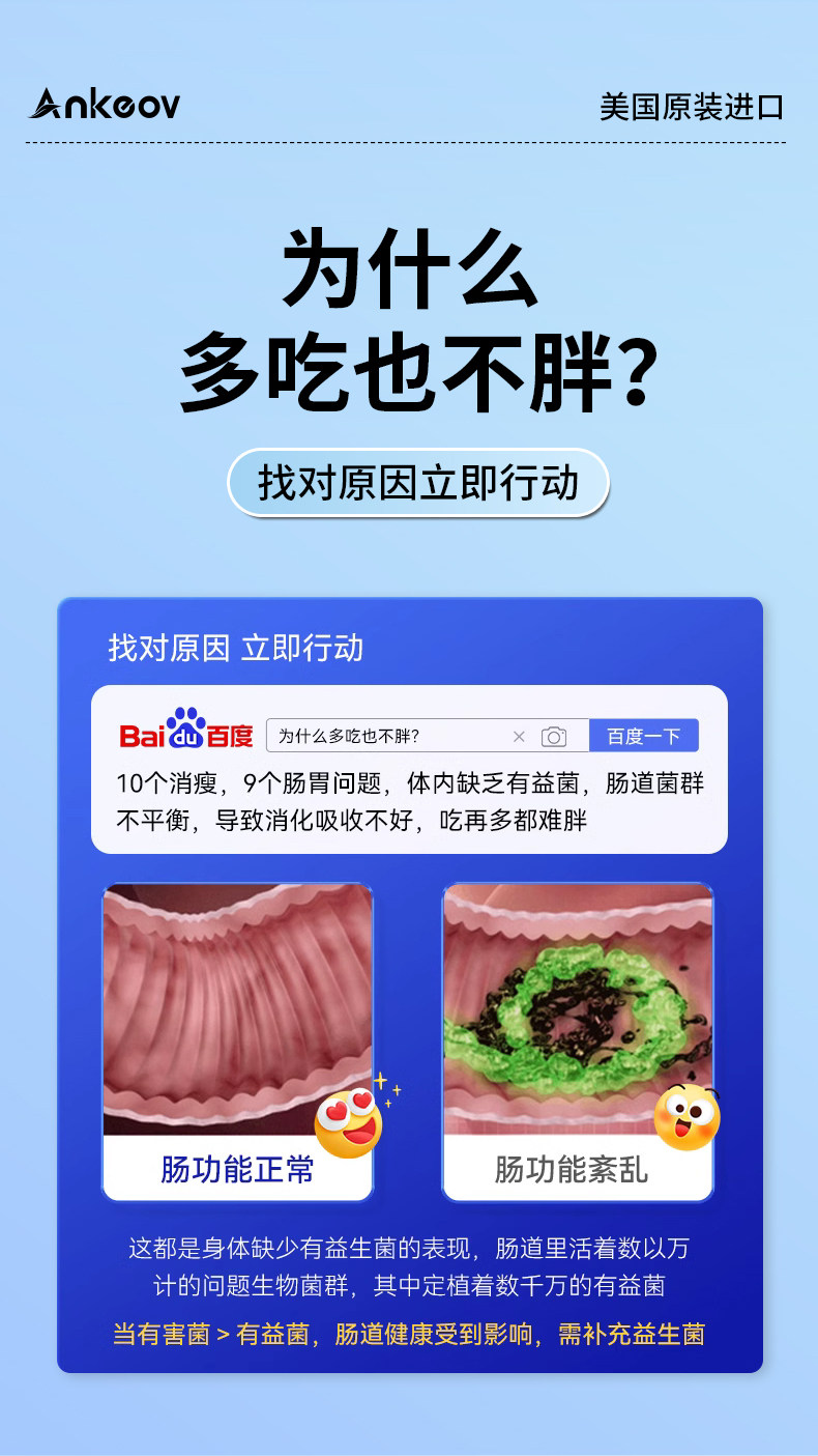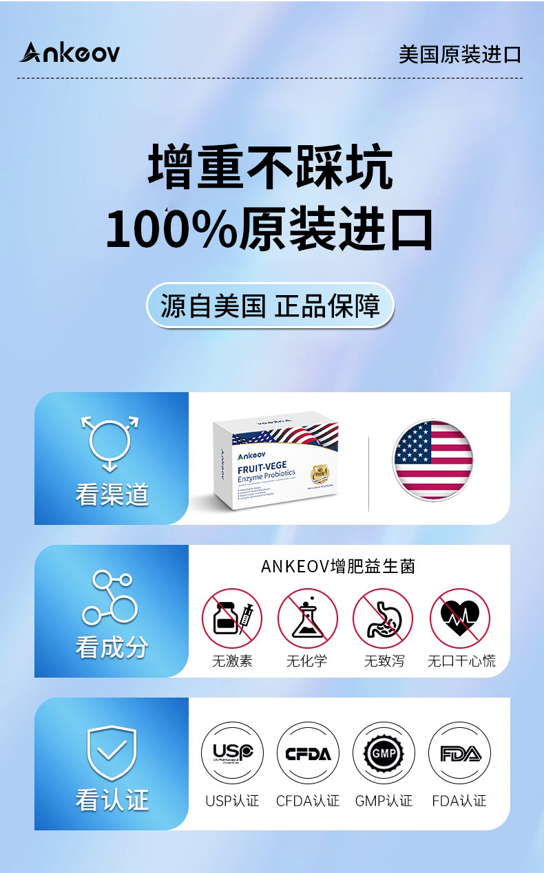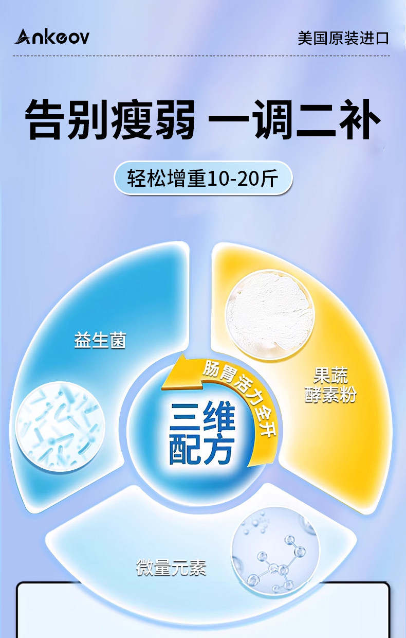 ANKEOV安可夫增肥益生菌增肥增胖增重安可沃美国进口果蔬酶益生菌