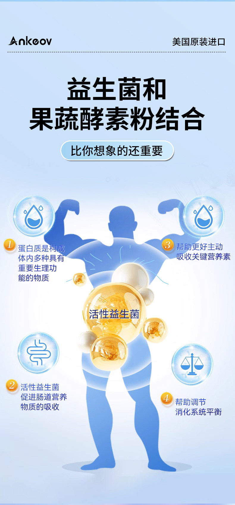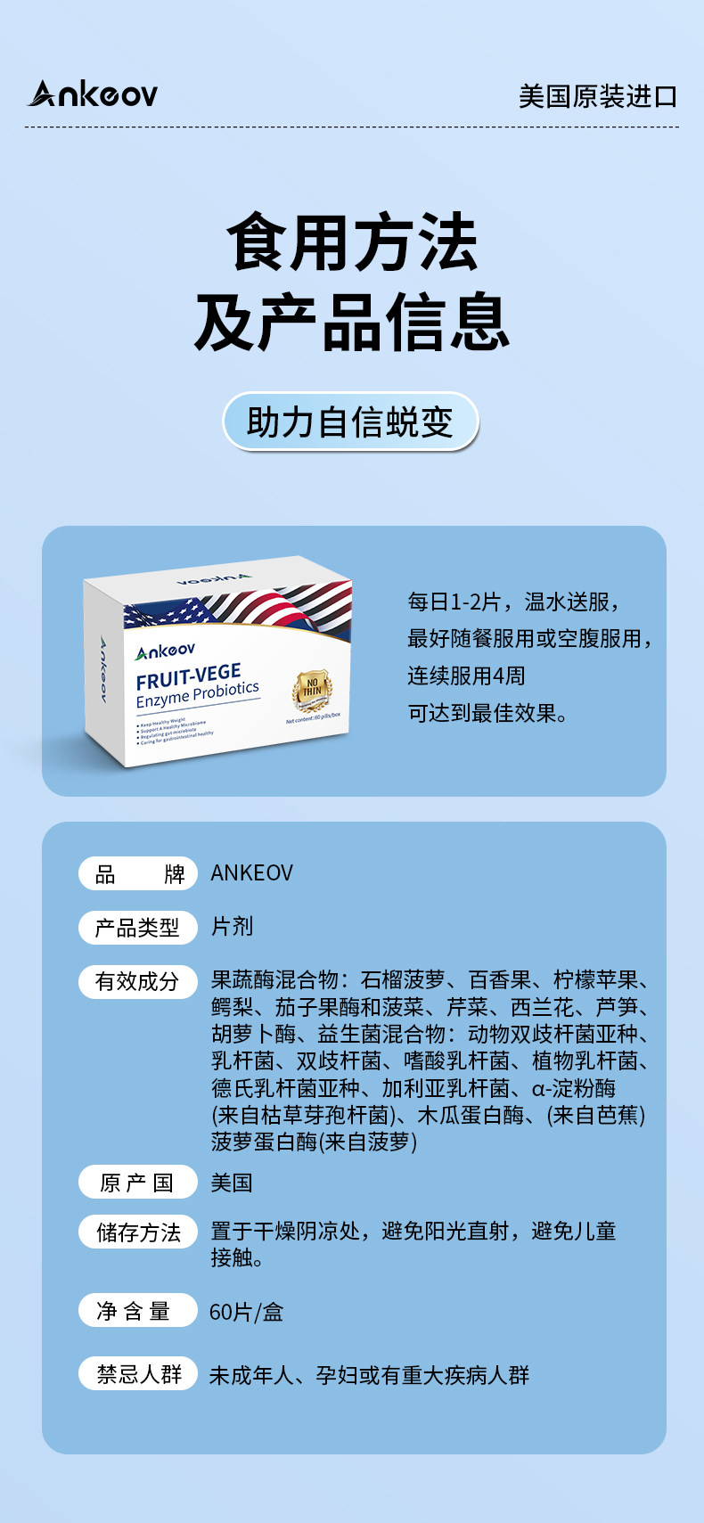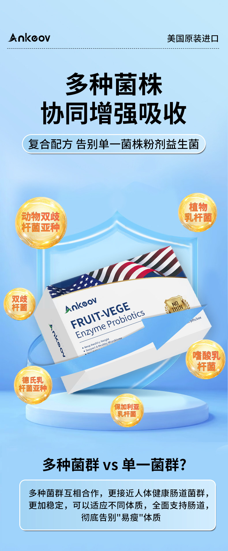 ANKEOV安可夫增肥益生菌增肥增胖增重安可沃美国进口果蔬酶益生菌