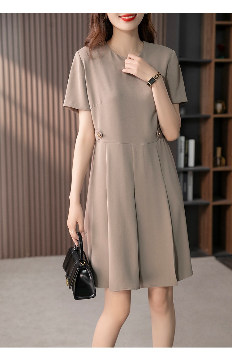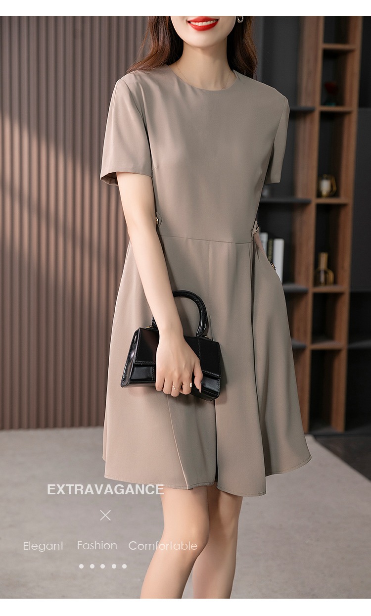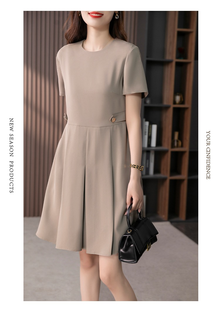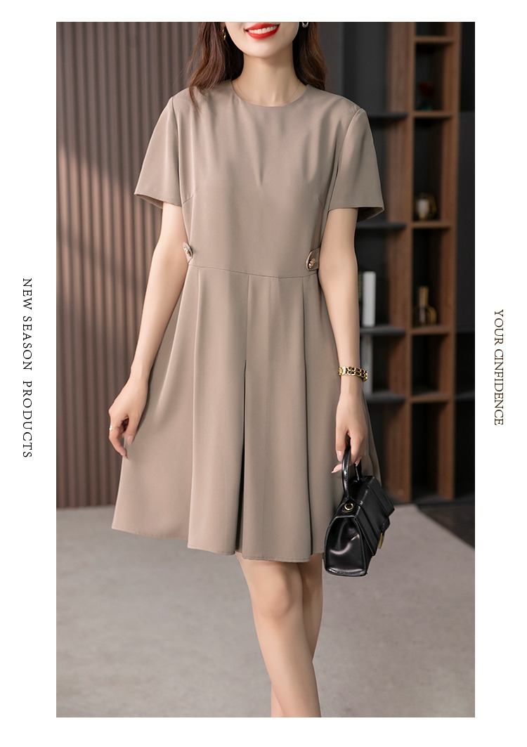 YX【定制17天】小个子短袖连衣裙女夏2024新款设计感收腰显瘦中长款百褶裙