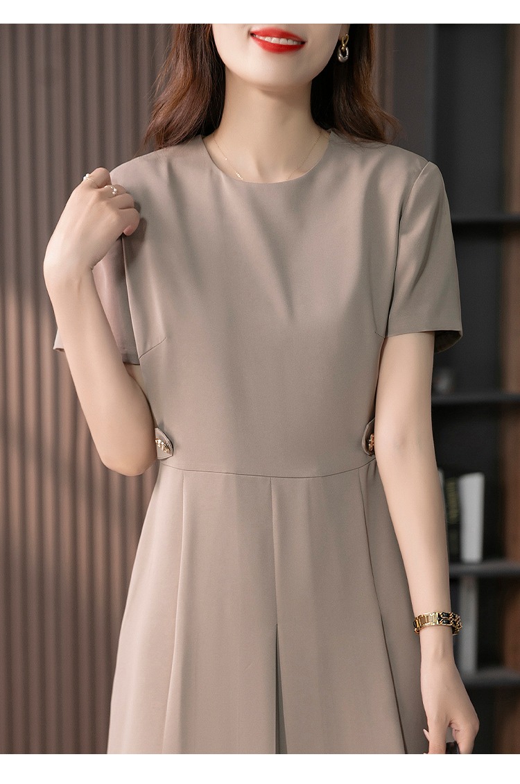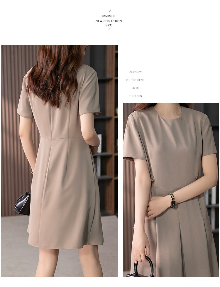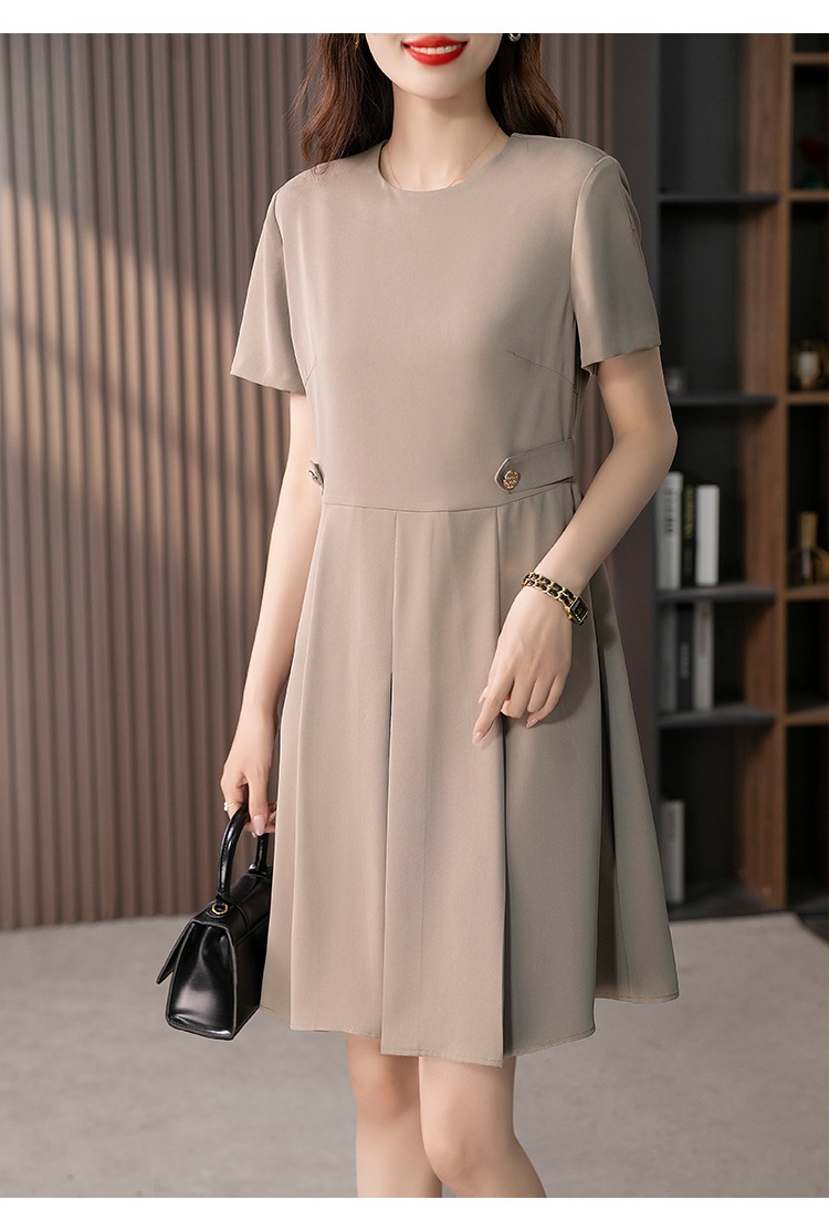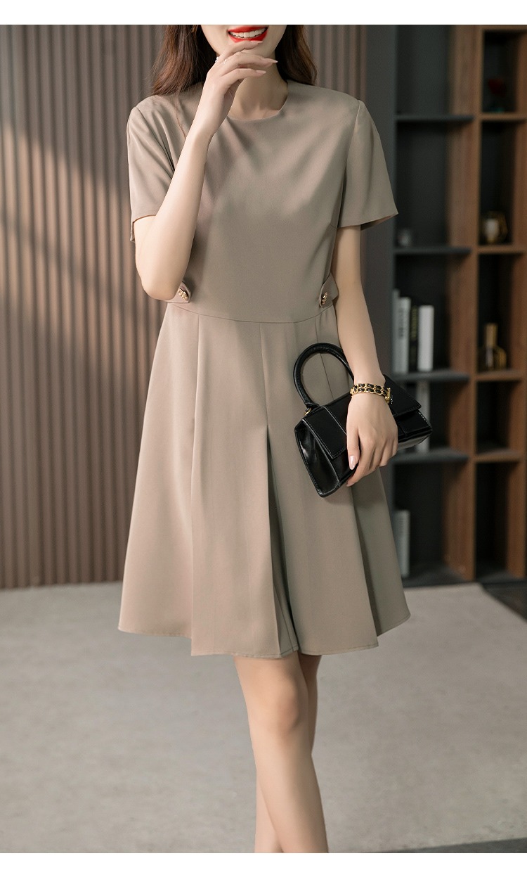 YX【定制17天】小个子短袖连衣裙女夏2024新款设计感收腰显瘦中长款百褶裙