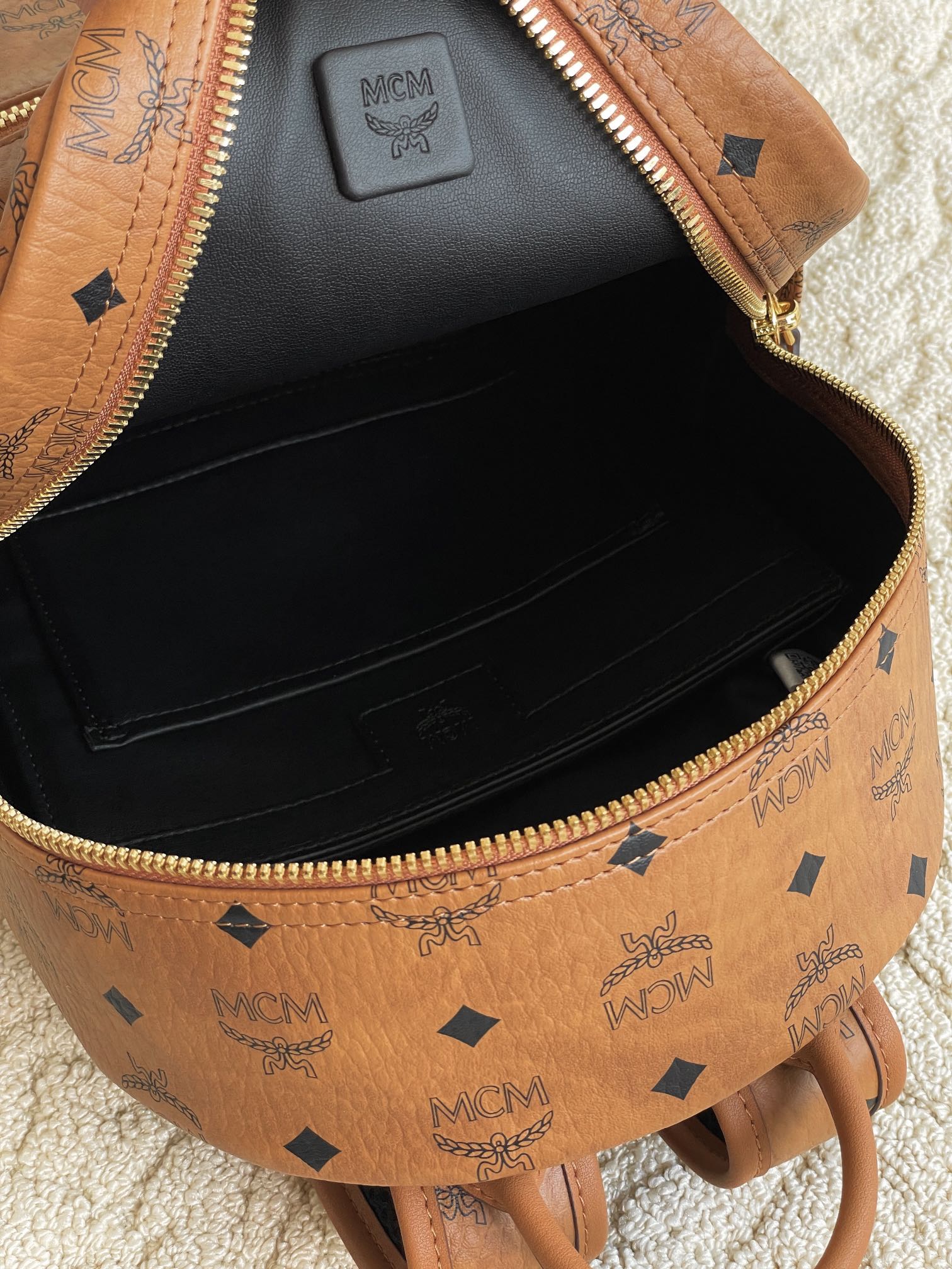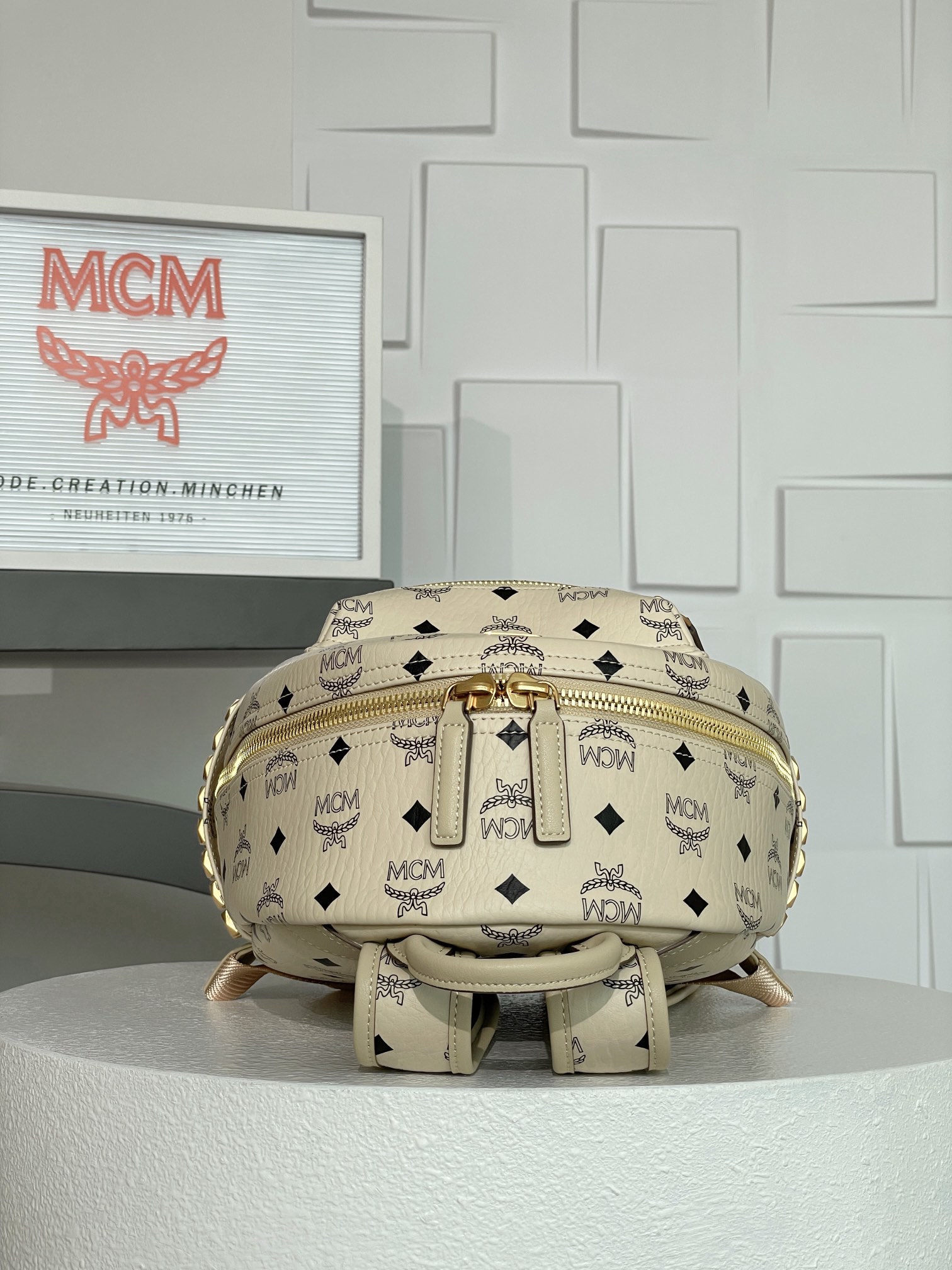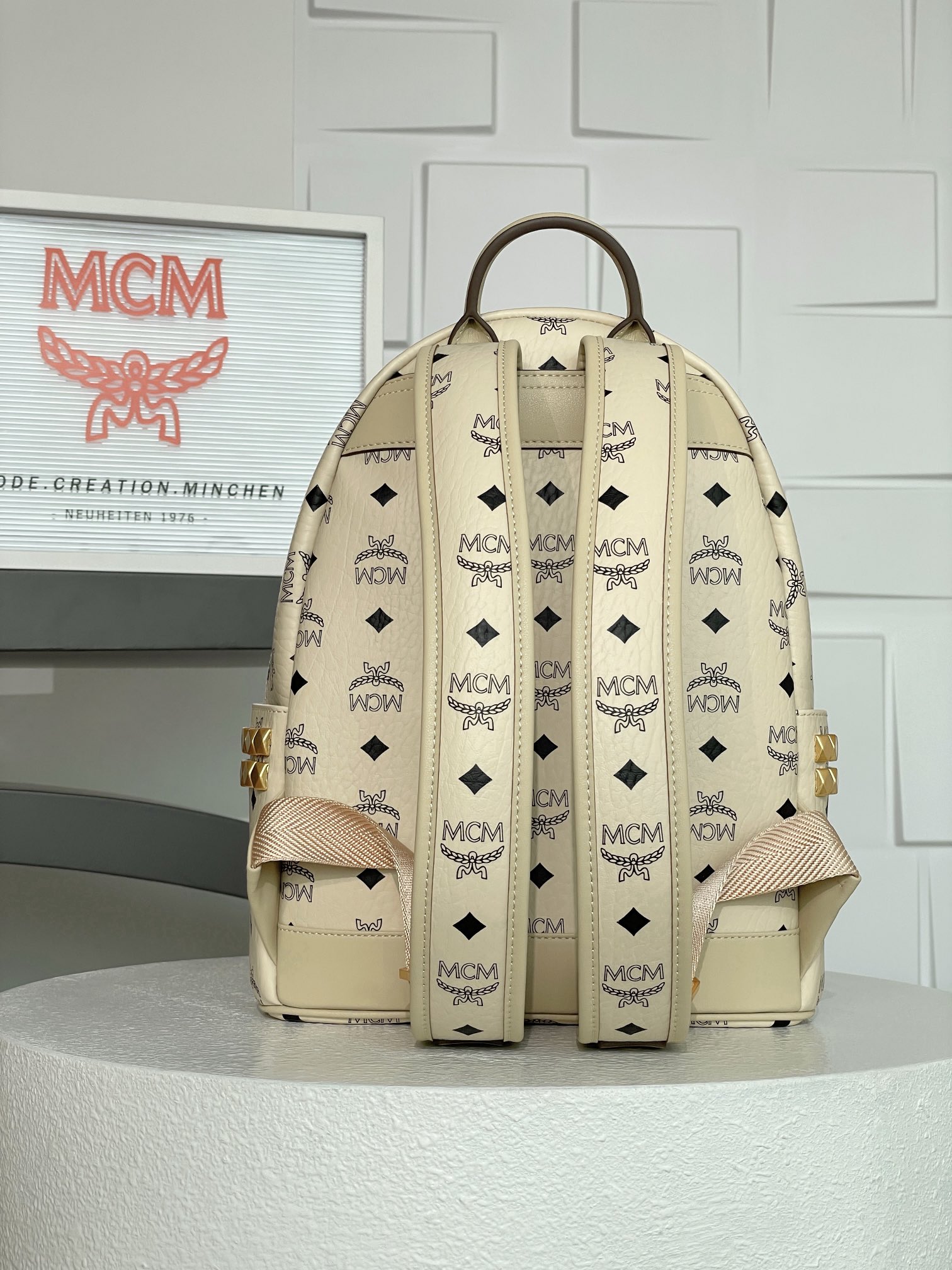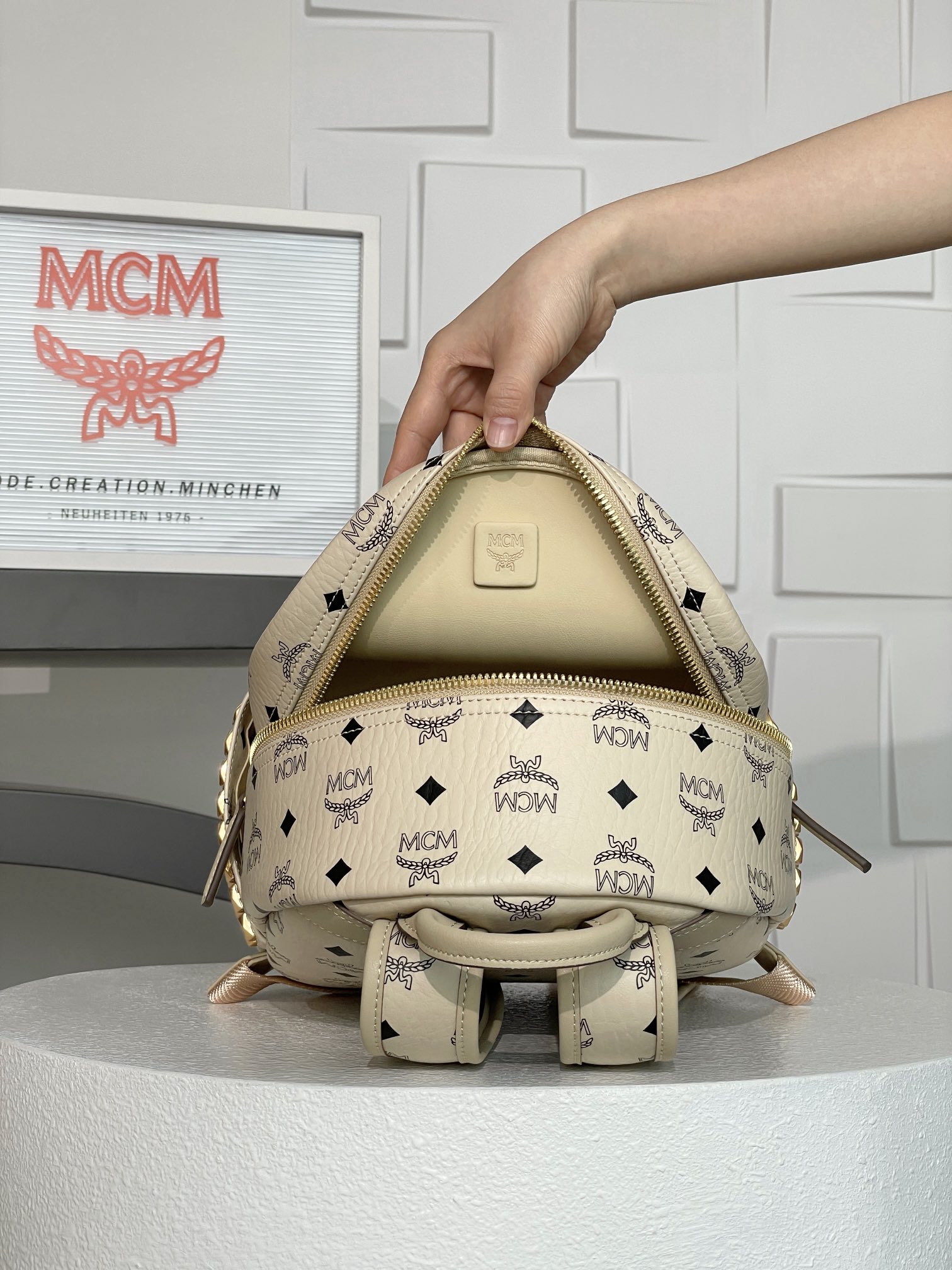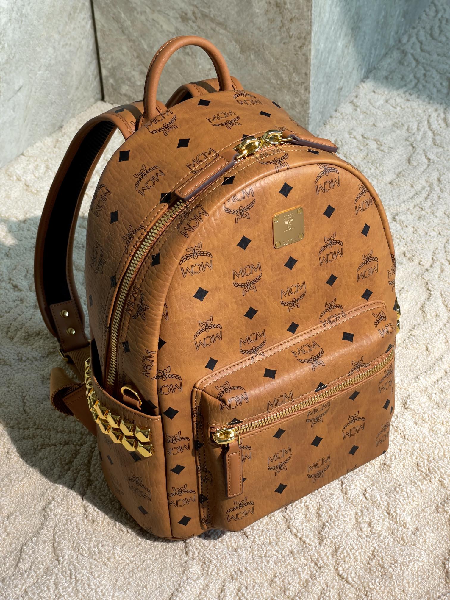 # 本季的小号Stark双肩背包是MCM经典款的重新演绎 单品采用我们标志性的Visetos涂层帆布制成 采用奢华的人造皮革衬里 结构化设计拥有宽敞的内部空间和金字塔形铆钉饰边 为您的造型增添前卫风格。