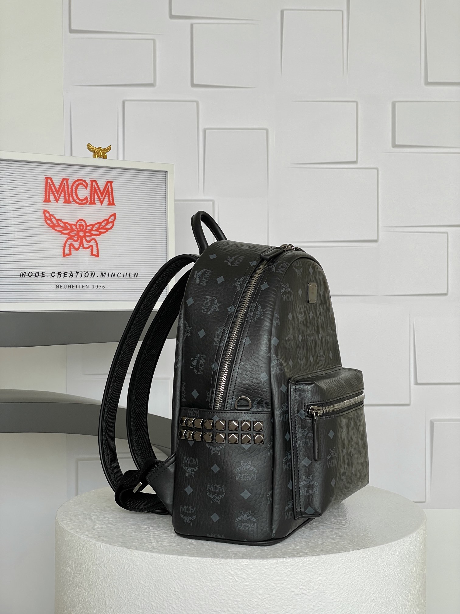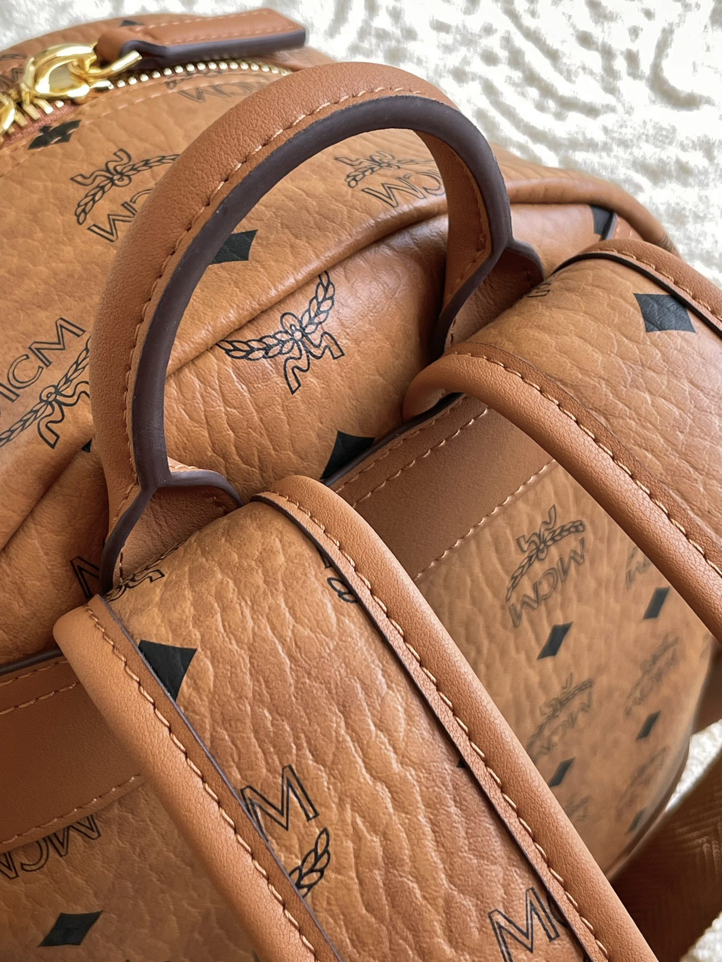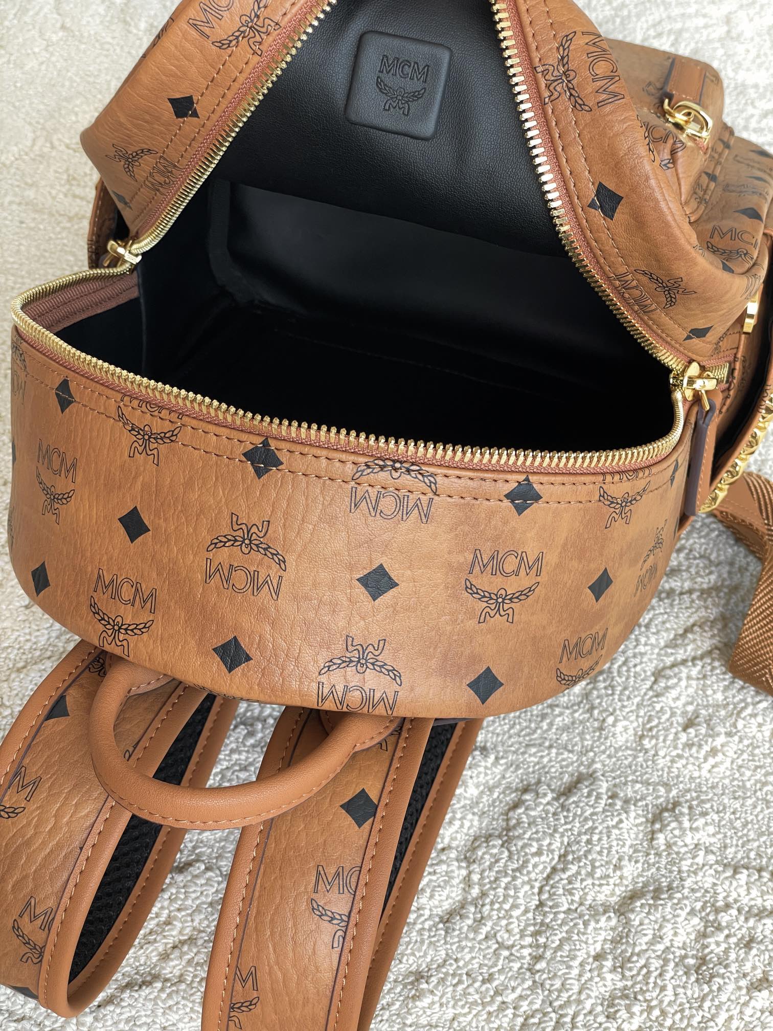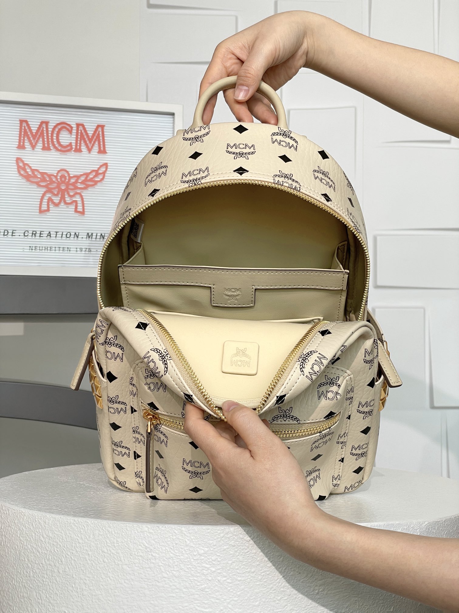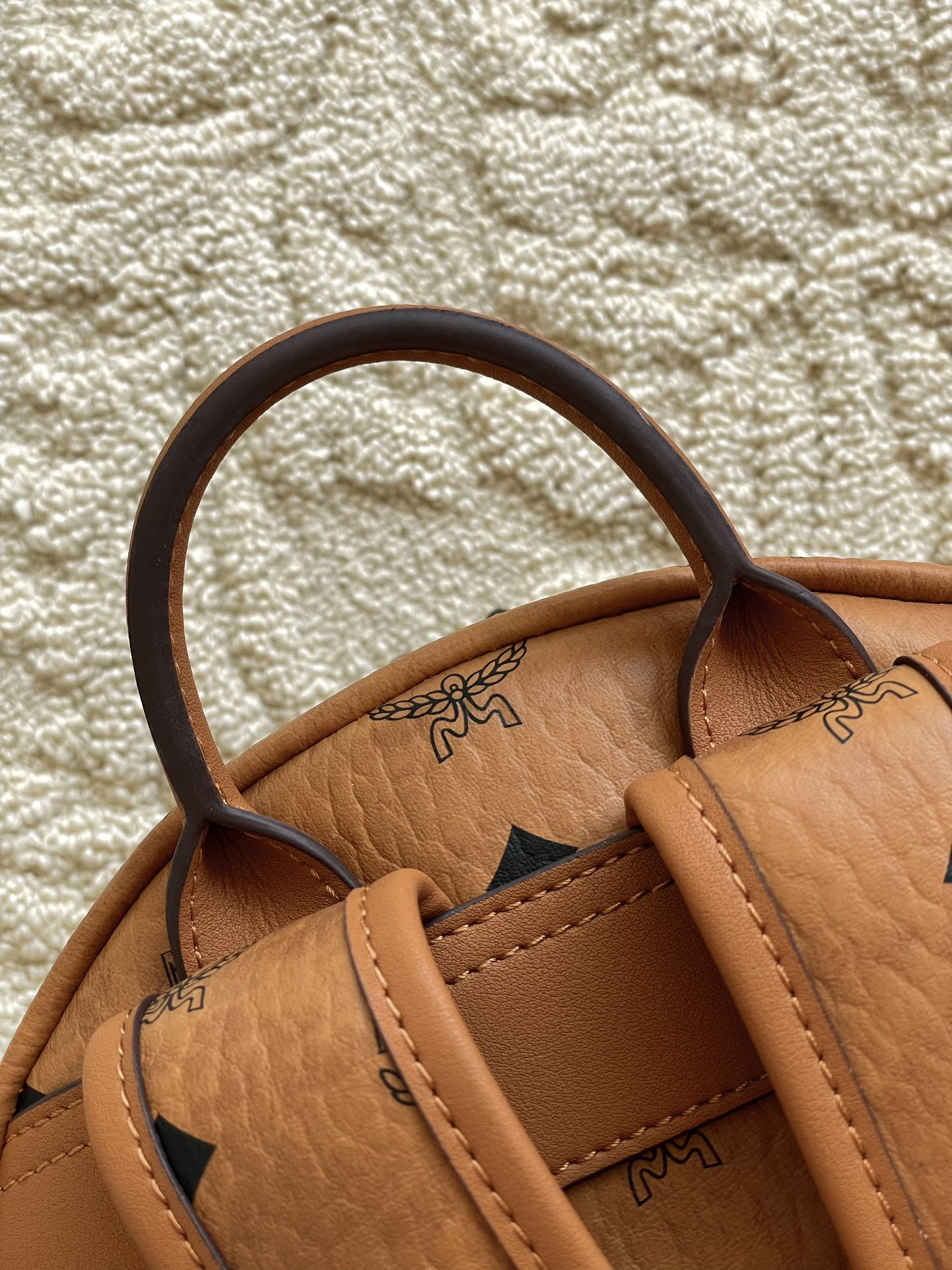 # 本季的小号Stark双肩背包是MCM经典款的重新演绎 单品采用我们标志性的Visetos涂层帆布制成 采用奢华的人造皮革衬里 结构化设计拥有宽敞的内部空间和金字塔形铆钉饰边 为您的造型增添前卫风格。