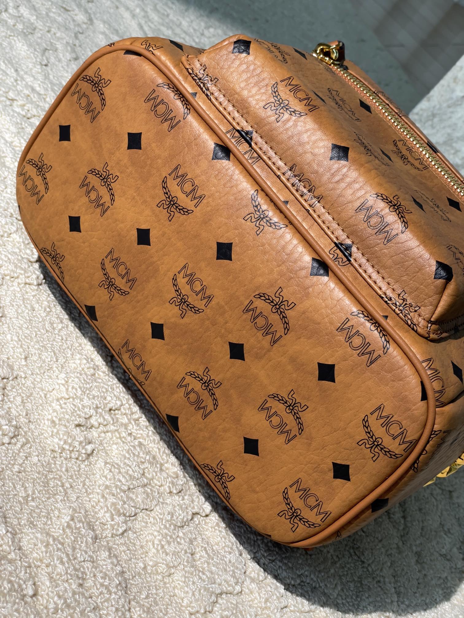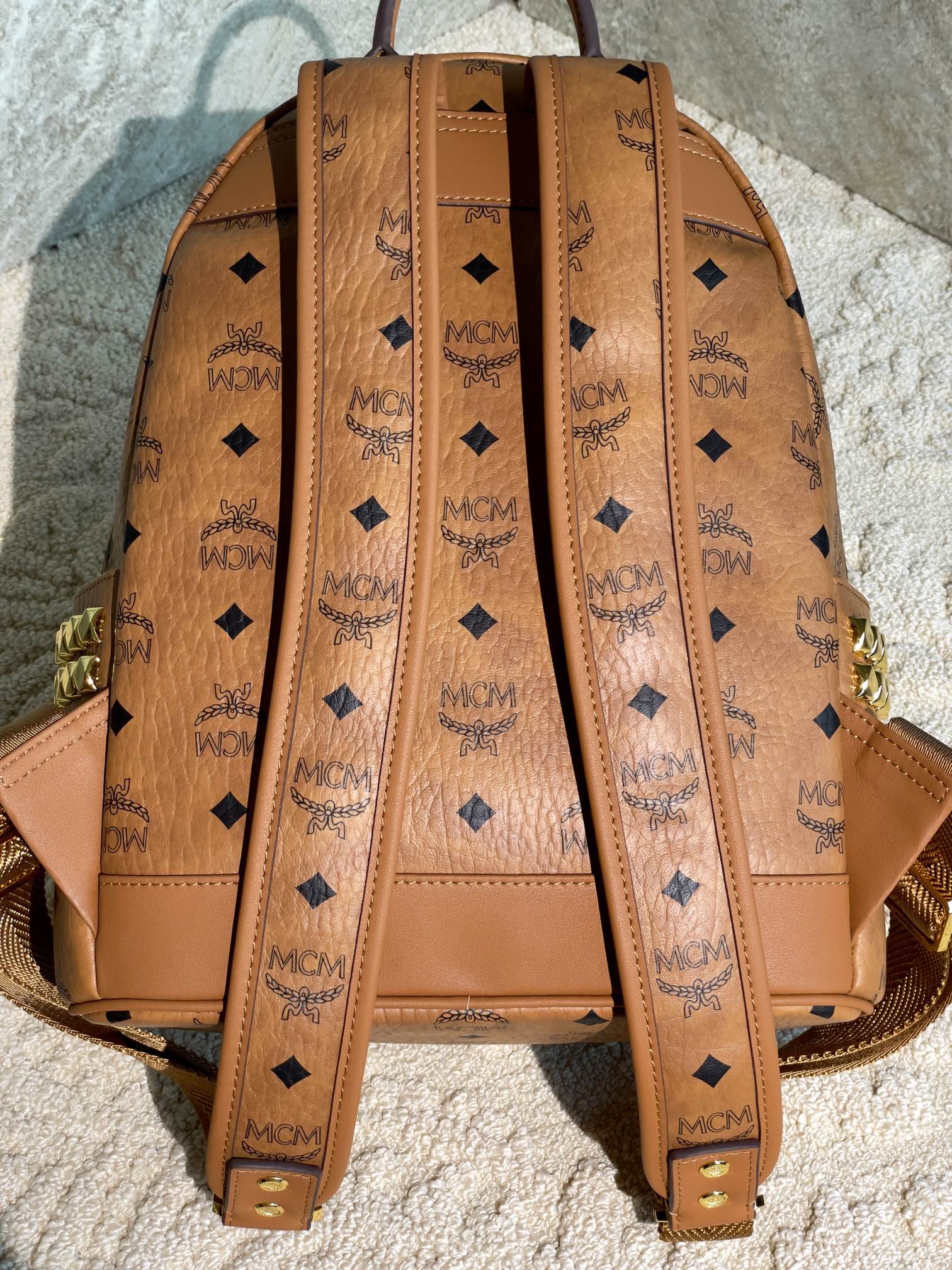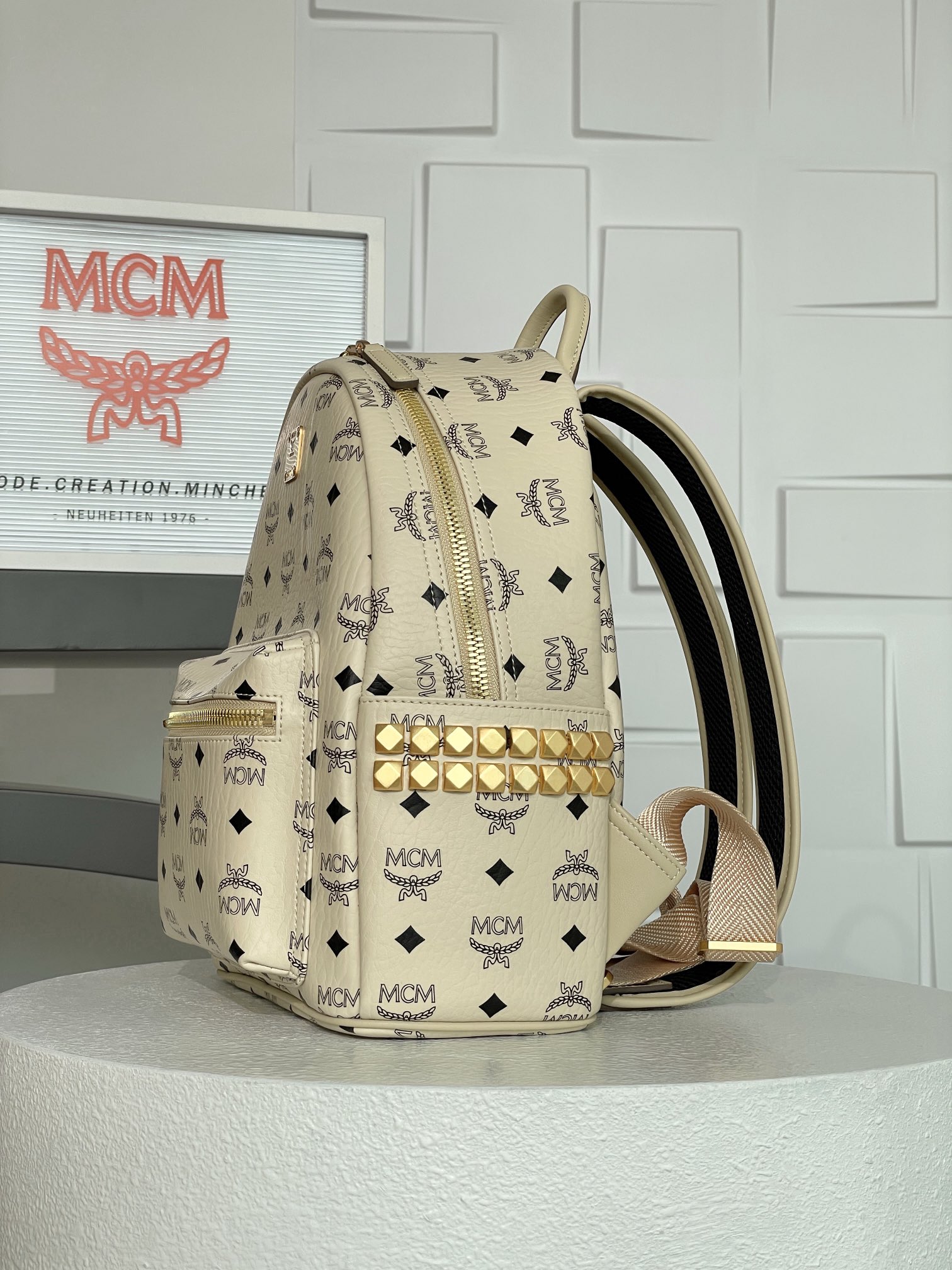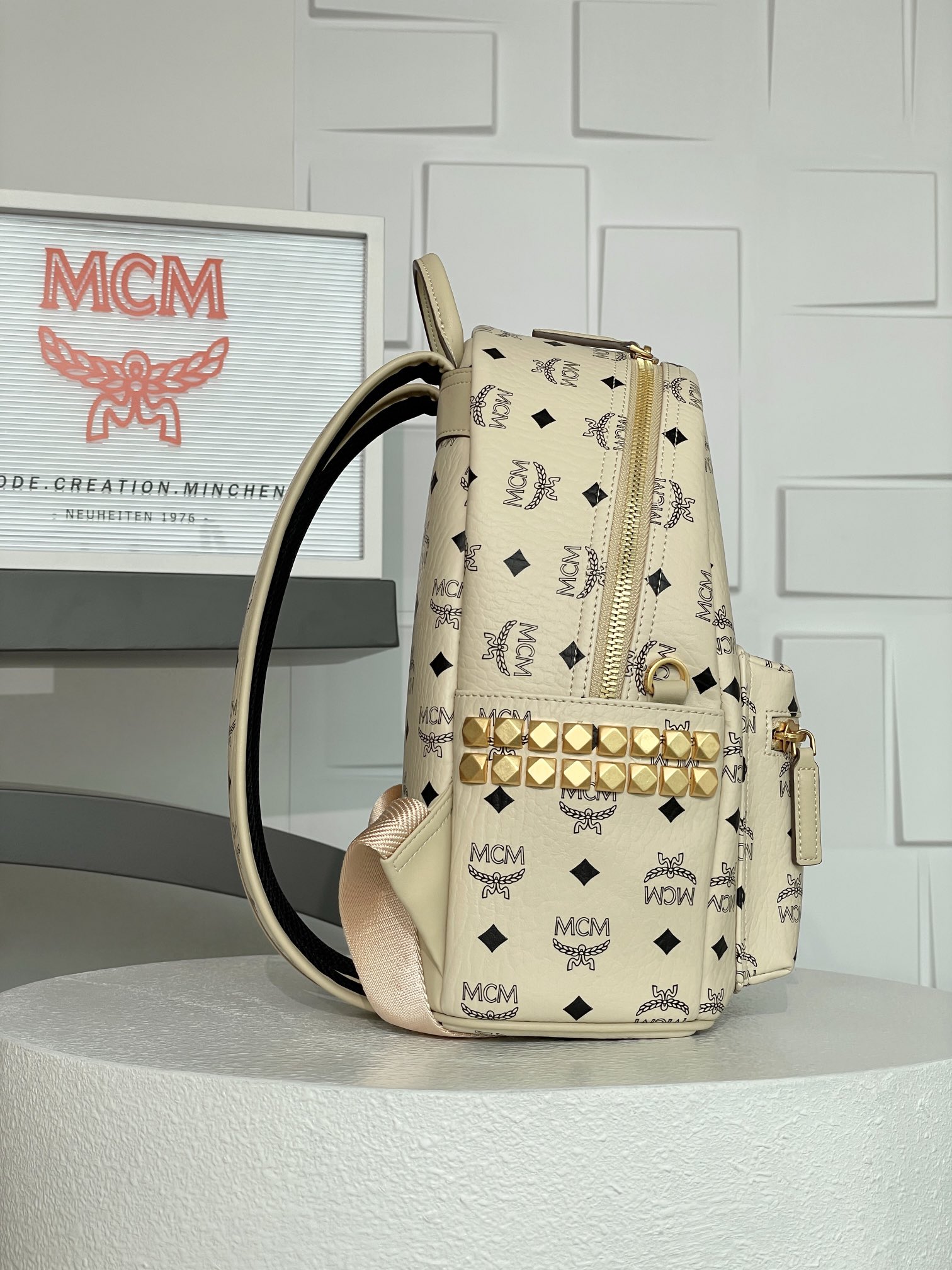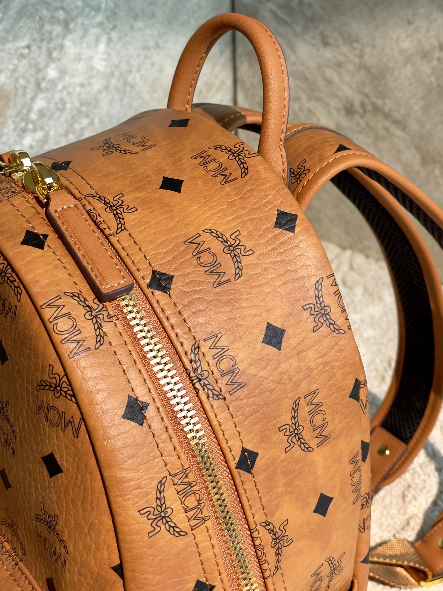 # 本季的小号Stark双肩背包是MCM经典款的重新演绎 单品采用我们标志性的Visetos涂层帆布制成 采用奢华的人造皮革衬里 结构化设计拥有宽敞的内部空间和金字塔形铆钉饰边 为您的造型增添前卫风格。