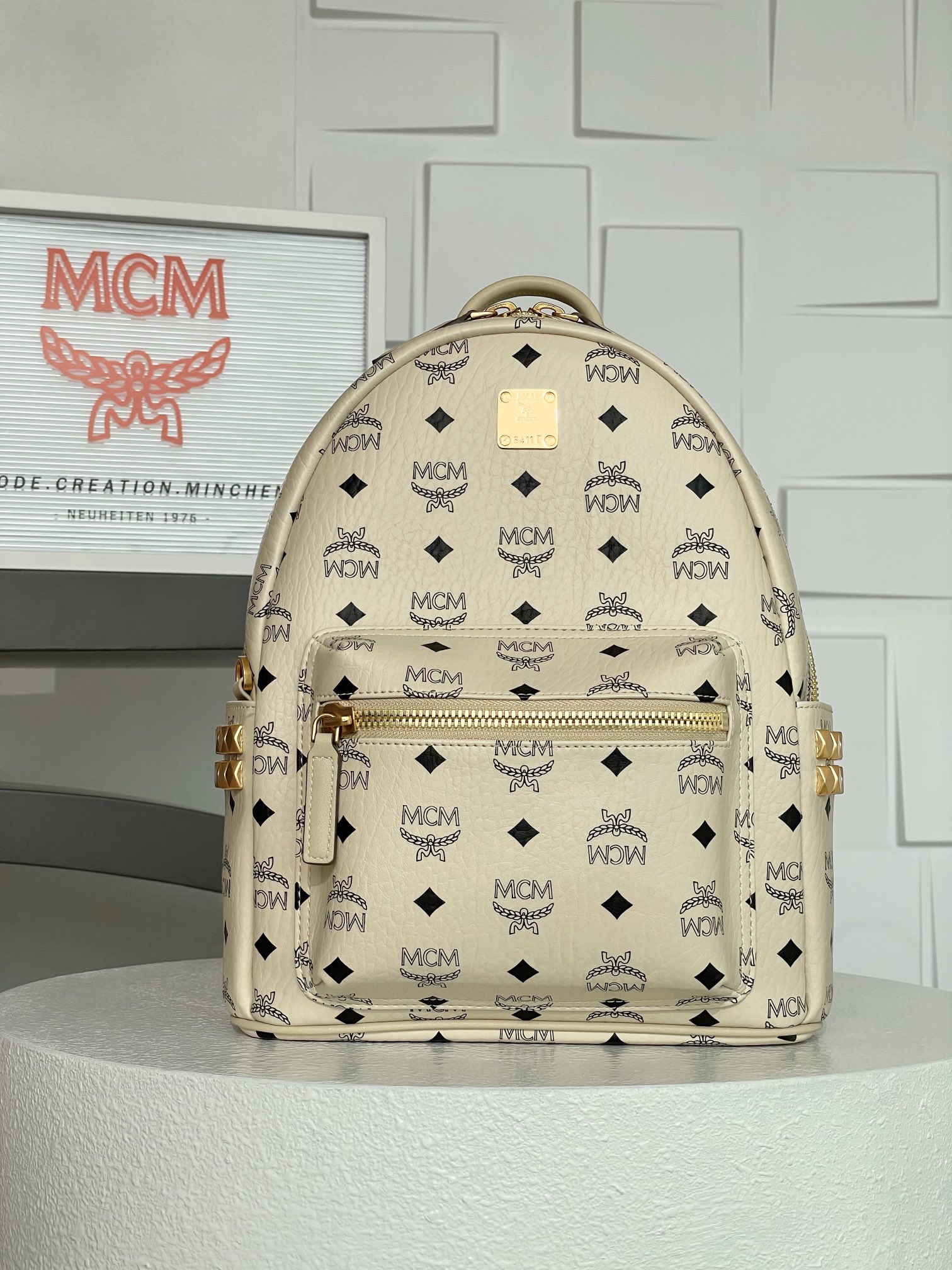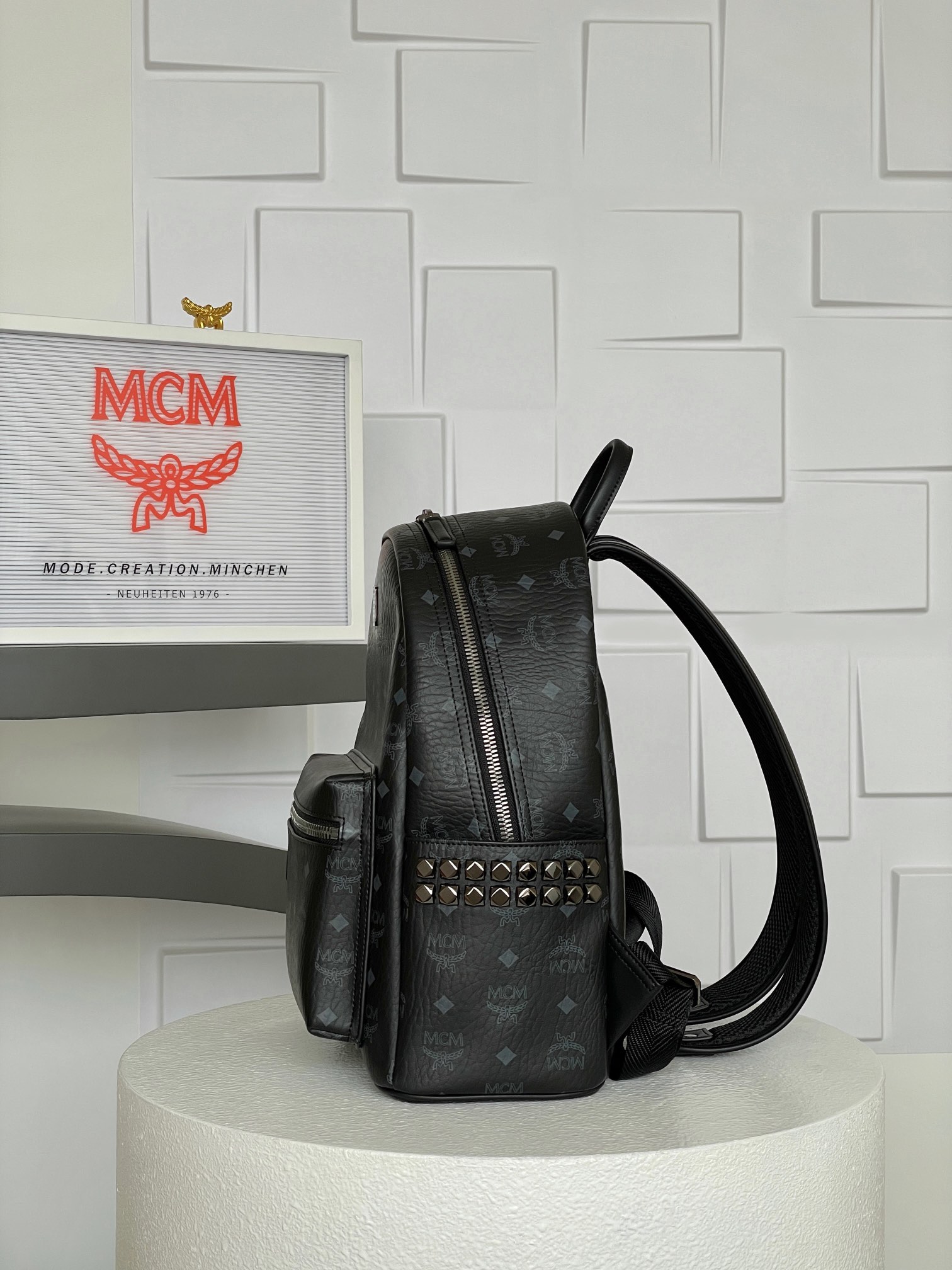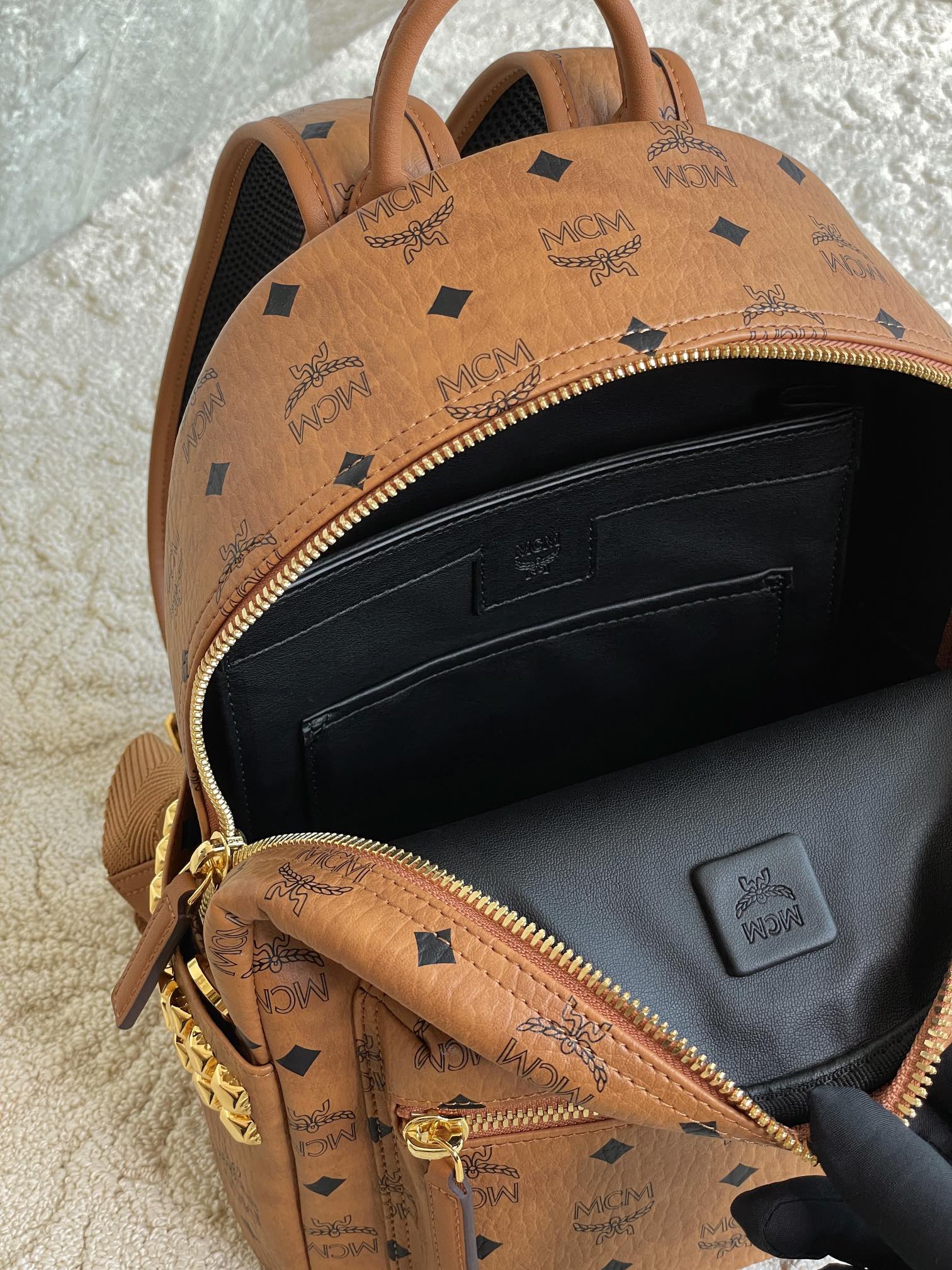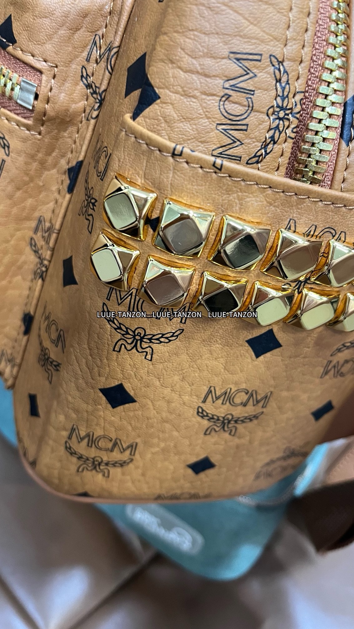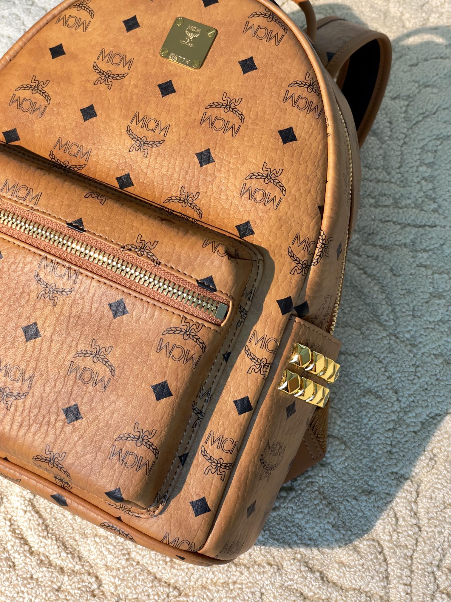 # 本季的小号Stark双肩背包是MCM经典款的重新演绎 单品采用我们标志性的Visetos涂层帆布制成 采用奢华的人造皮革衬里 结构化设计拥有宽敞的内部空间和金字塔形铆钉饰边 为您的造型增添前卫风格。