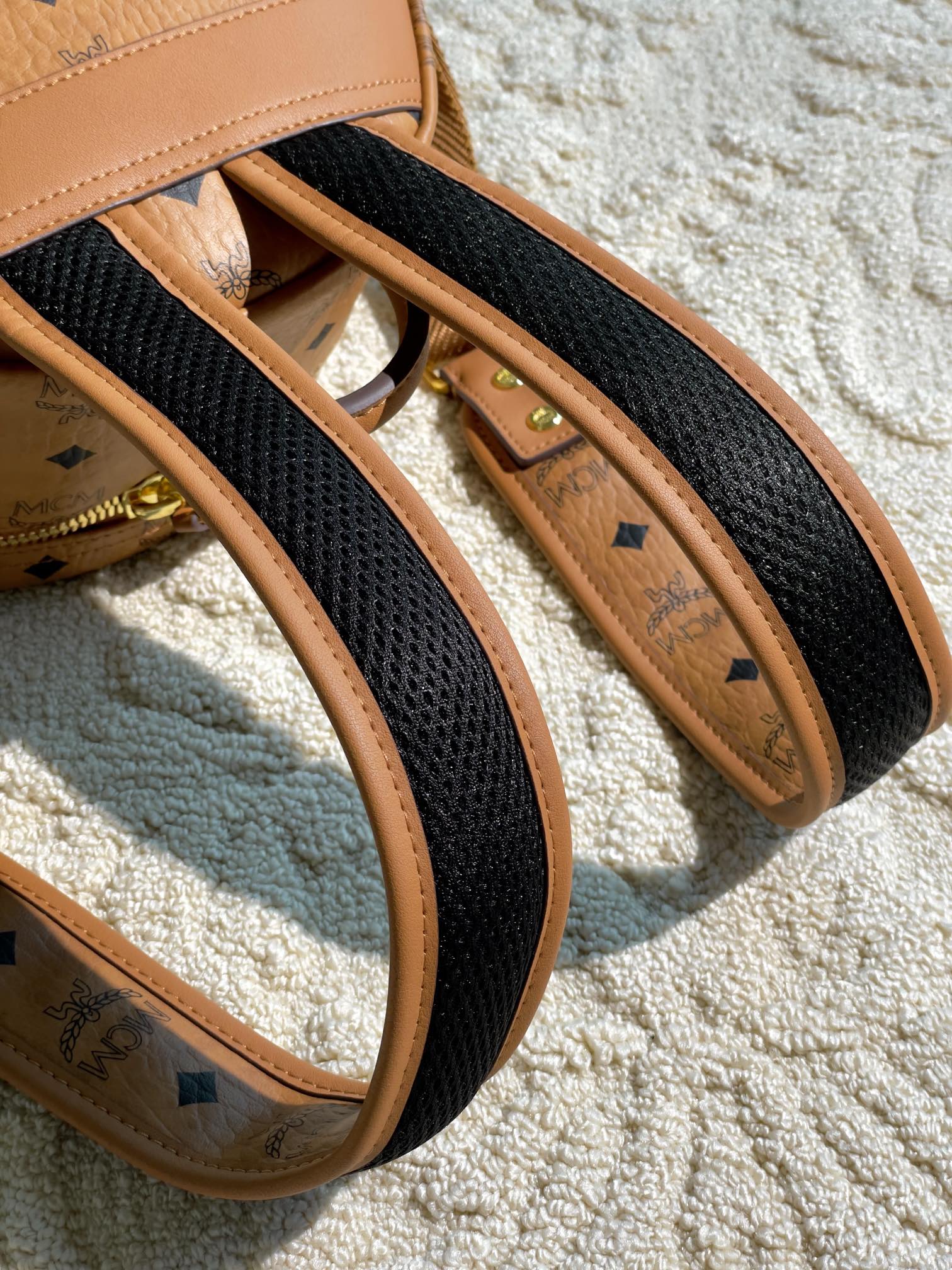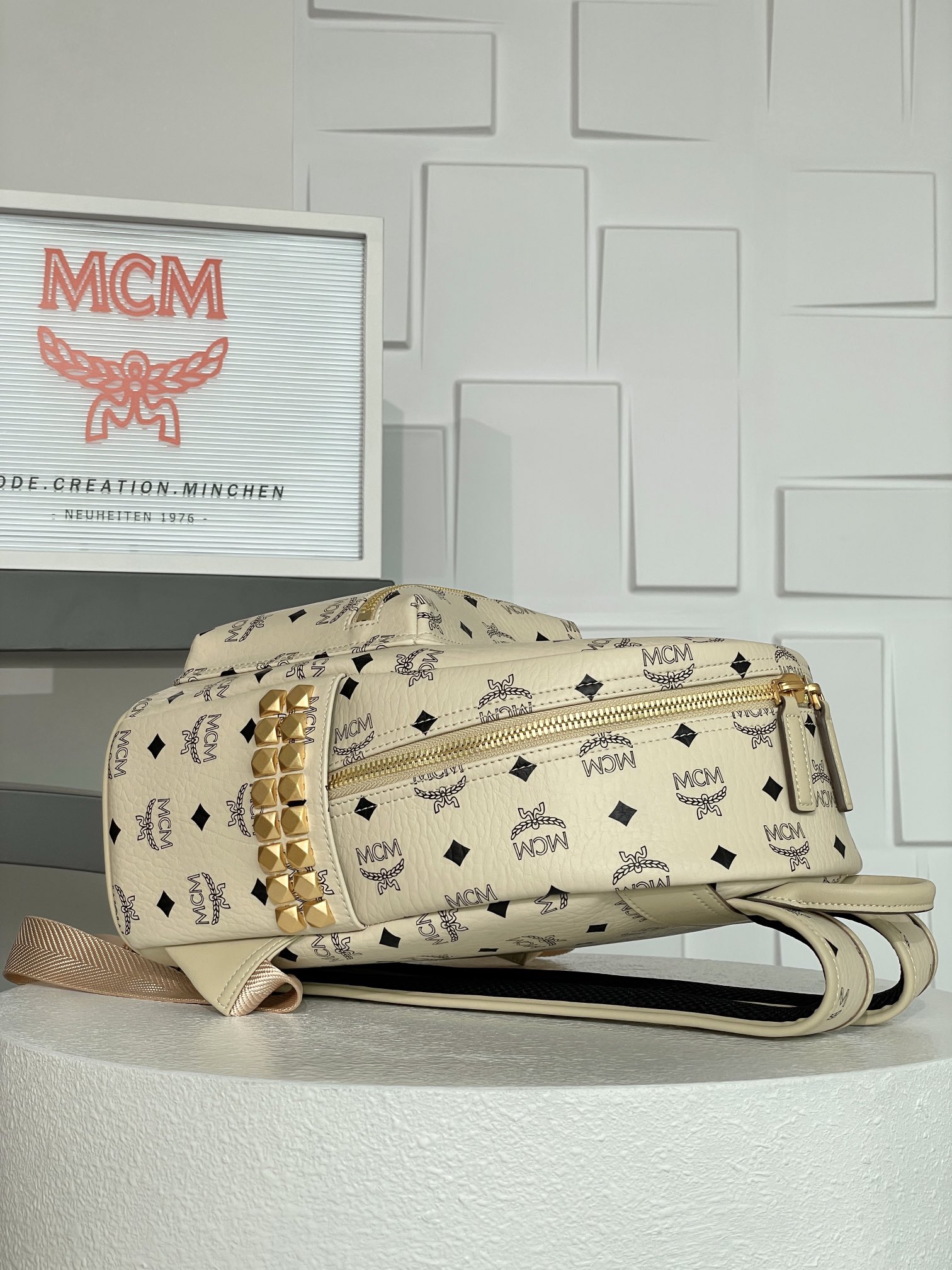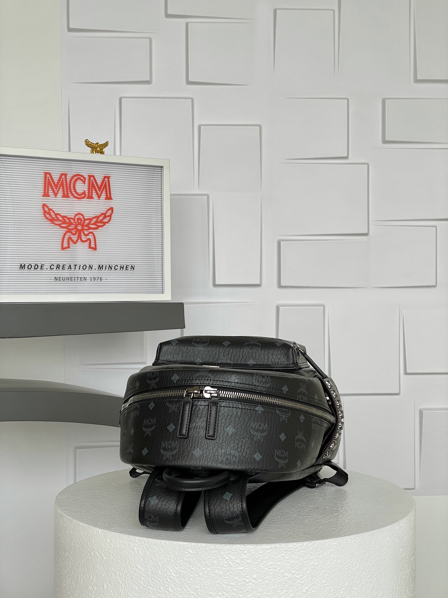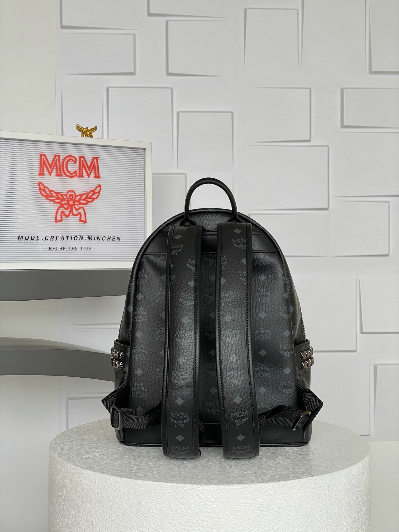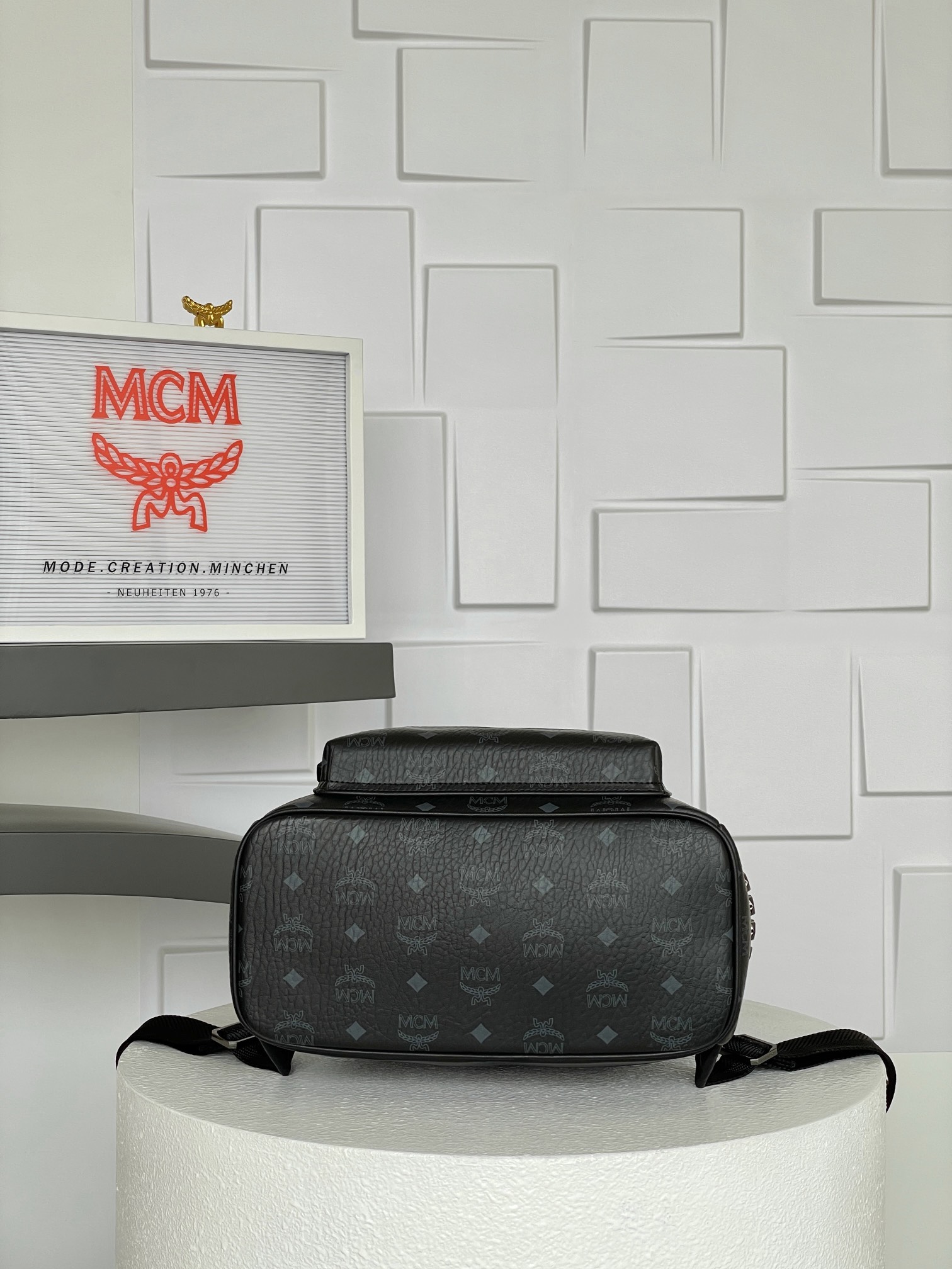 # 本季的小号Stark双肩背包是MCM经典款的重新演绎 单品采用我们标志性的Visetos涂层帆布制成 采用奢华的人造皮革衬里 结构化设计拥有宽敞的内部空间和金字塔形铆钉饰边 为您的造型增添前卫风格。