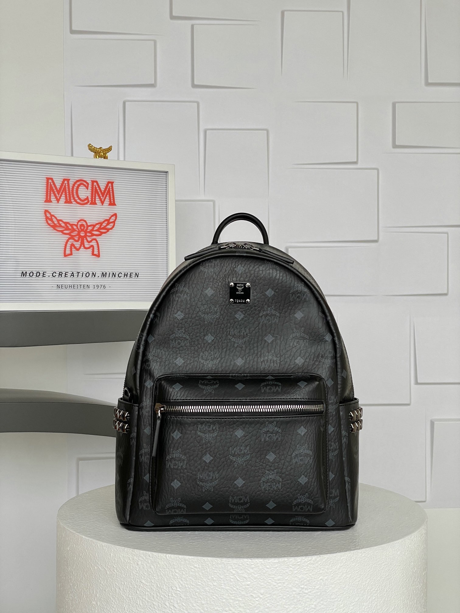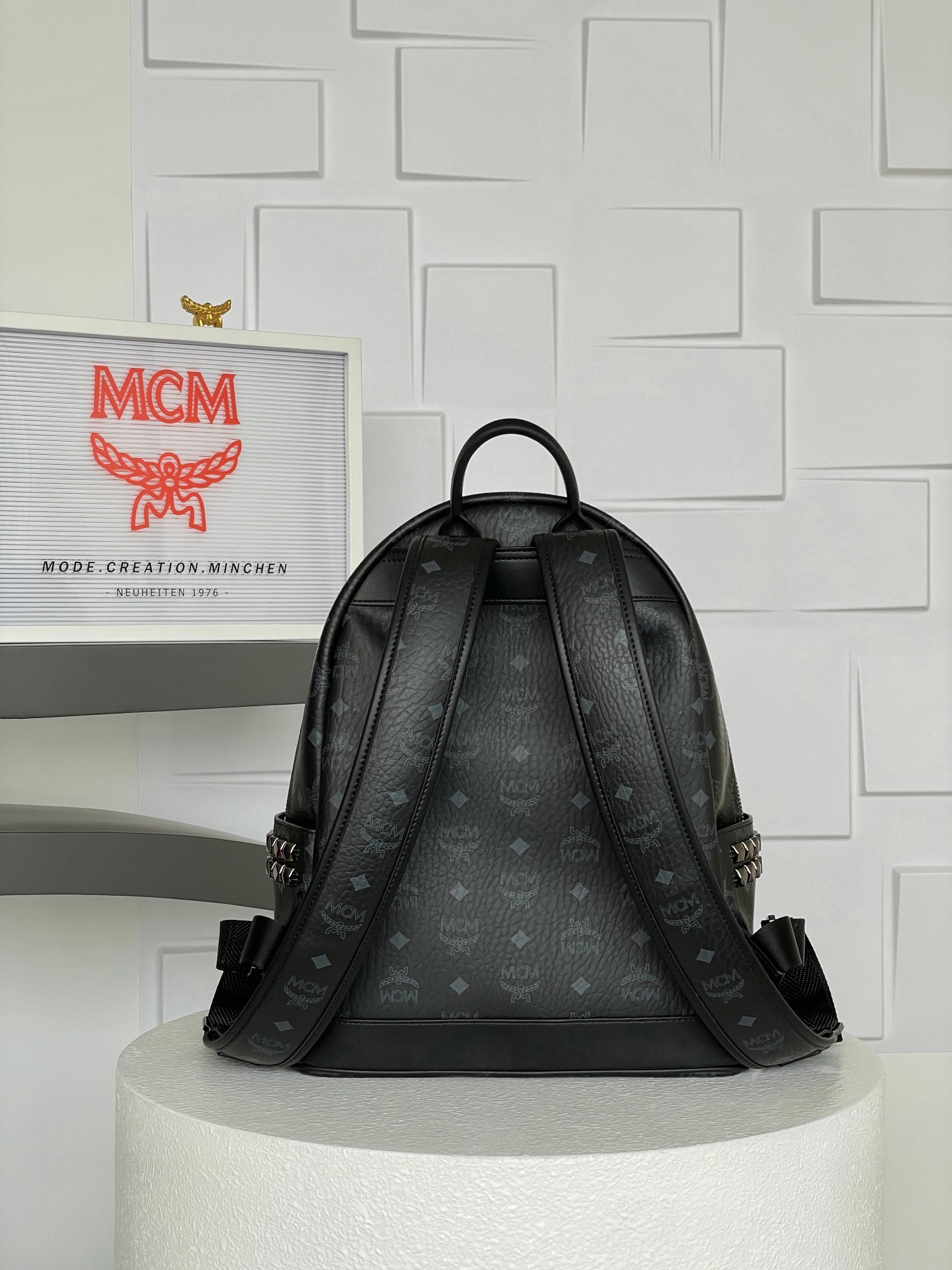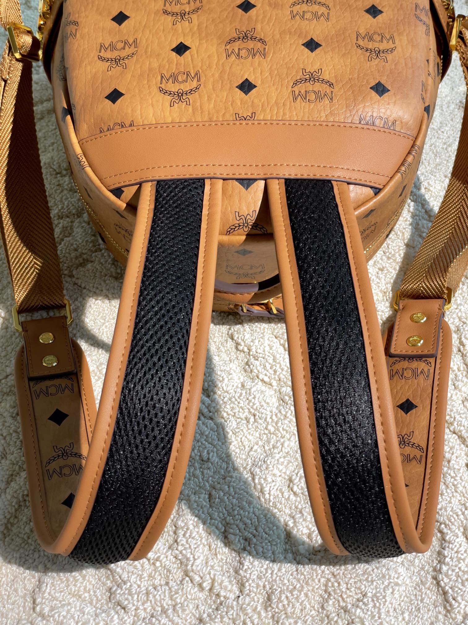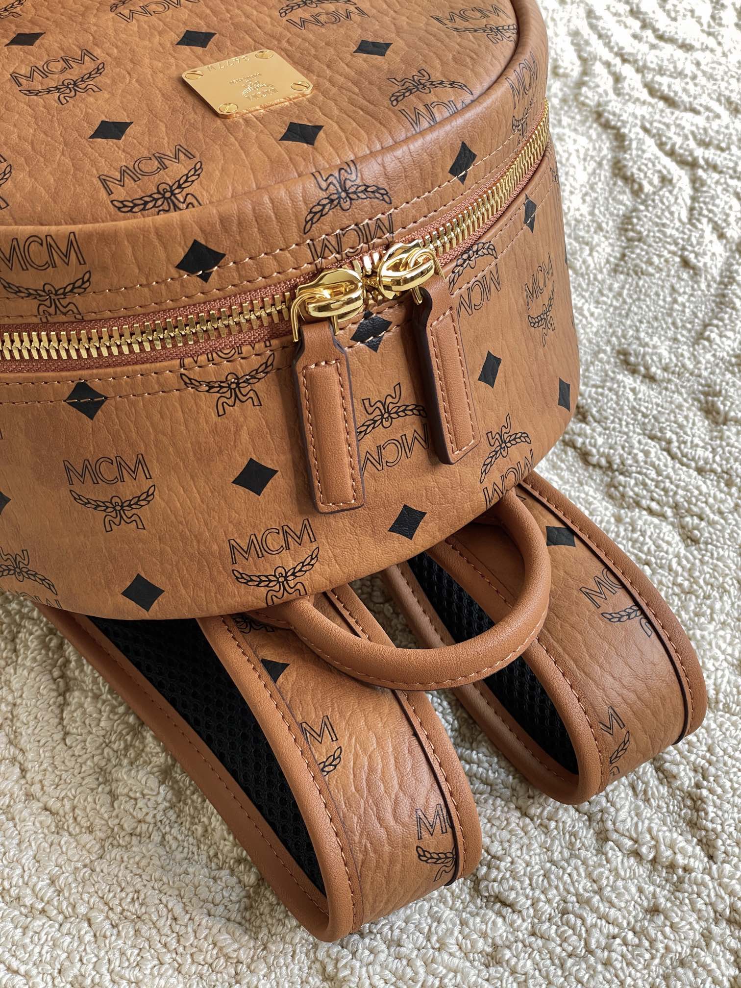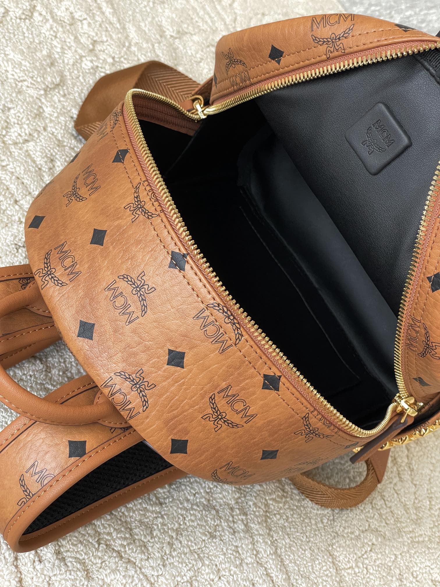 # 本季的小号Stark双肩背包是MCM经典款的重新演绎 单品采用我们标志性的Visetos涂层帆布制成 采用奢华的人造皮革衬里 结构化设计拥有宽敞的内部空间和金字塔形铆钉饰边 为您的造型增添前卫风格。