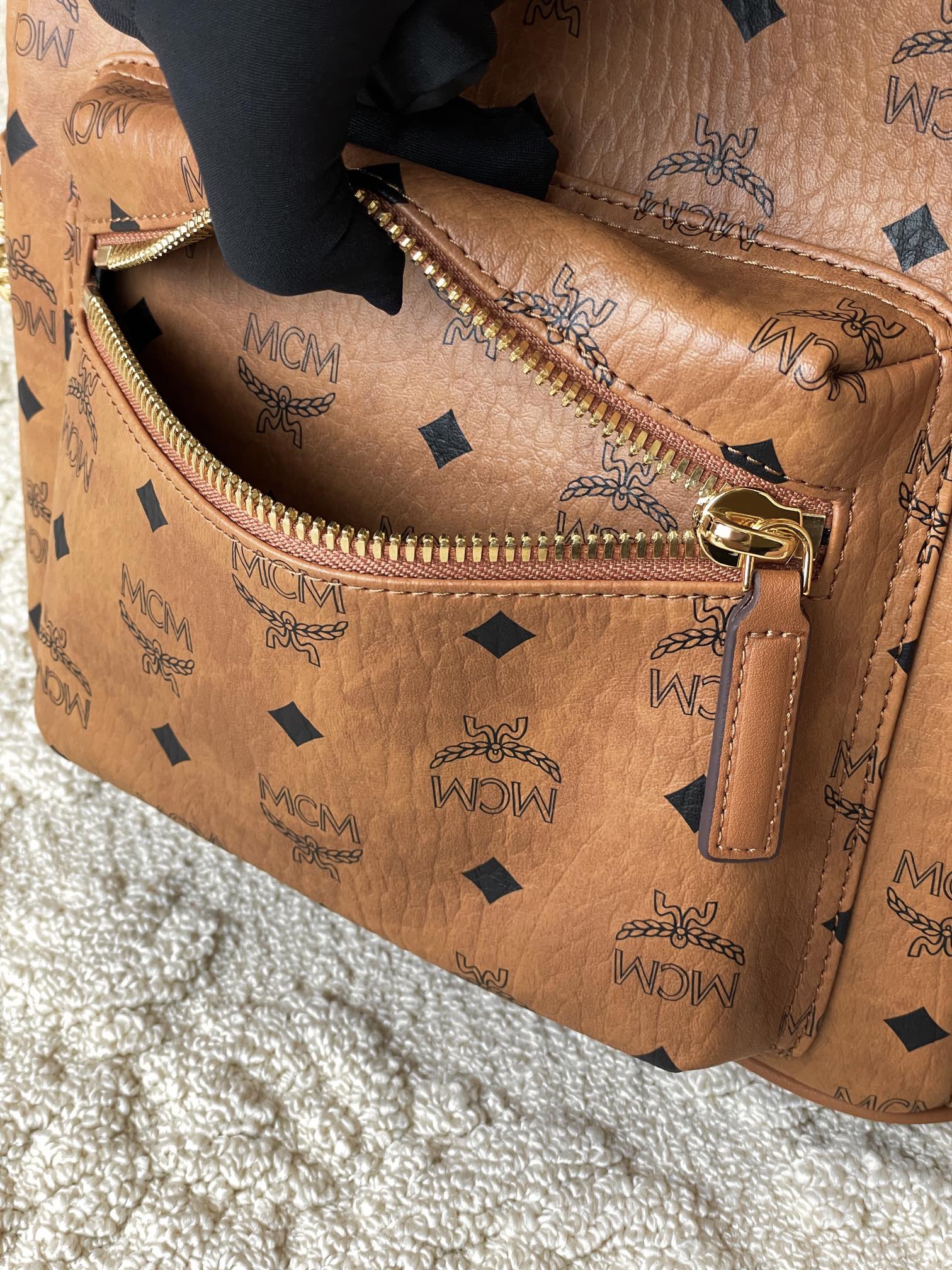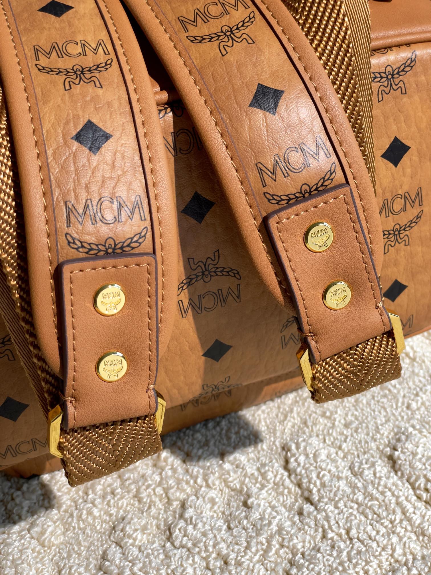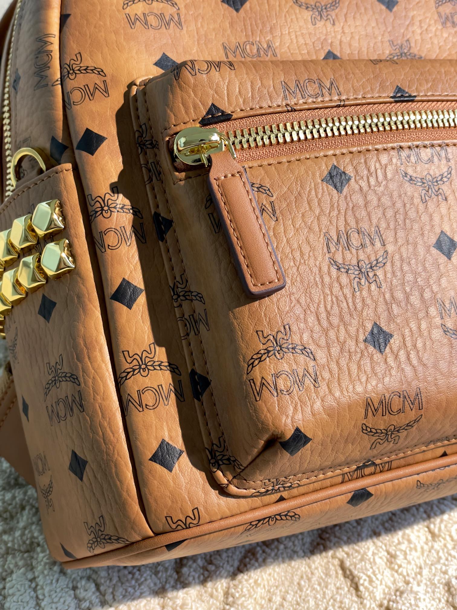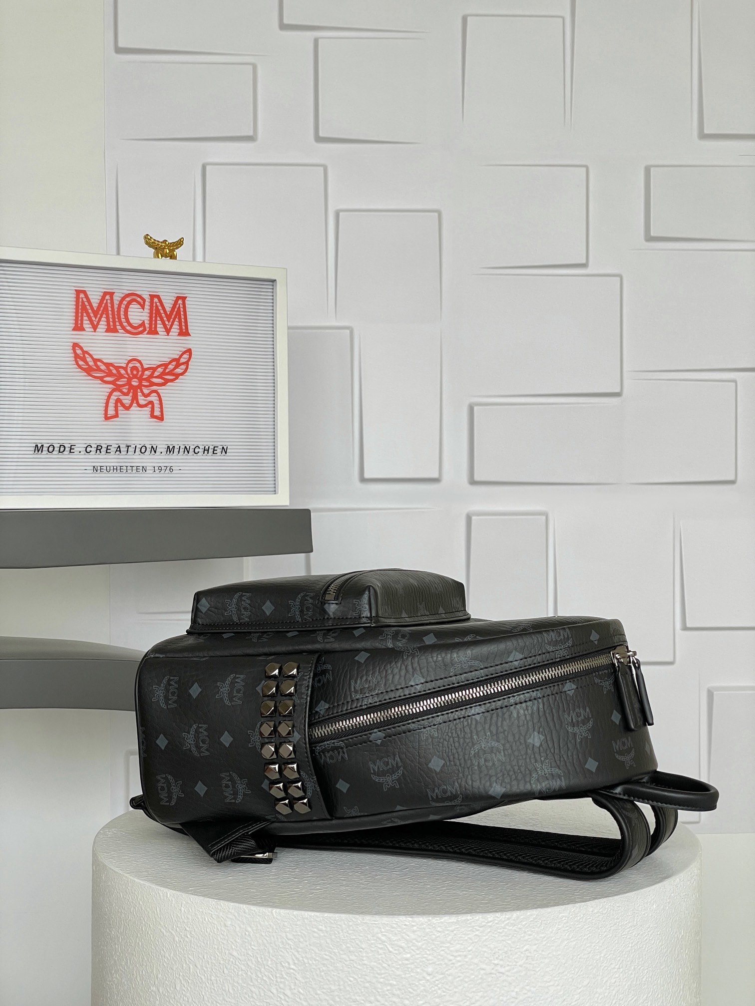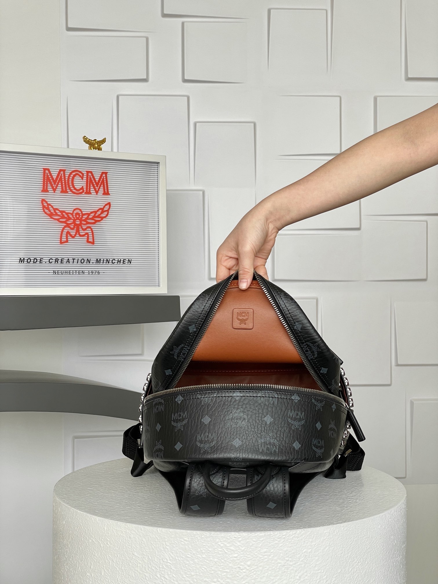 # 本季的小号Stark双肩背包是MCM经典款的重新演绎 单品采用我们标志性的Visetos涂层帆布制成 采用奢华的人造皮革衬里 结构化设计拥有宽敞的内部空间和金字塔形铆钉饰边 为您的造型增添前卫风格。