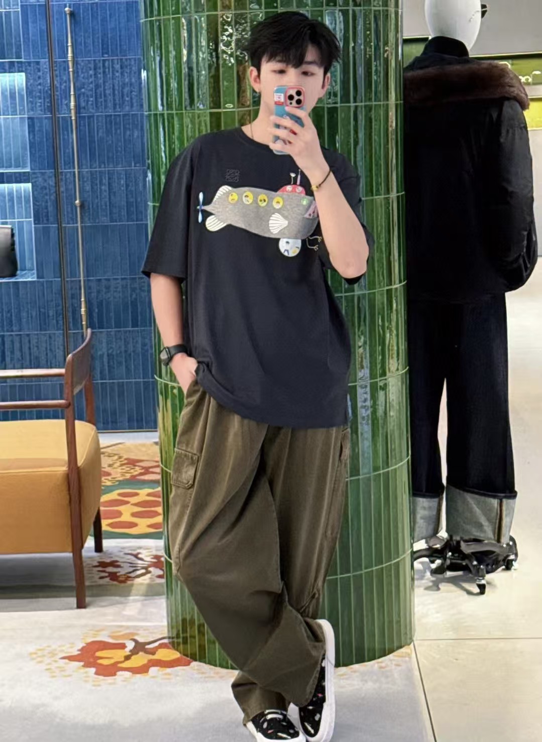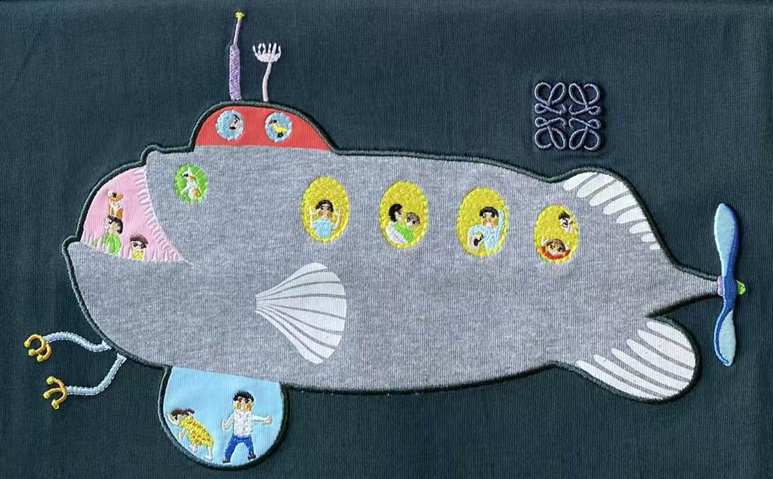 ⚠️原¥5,800购买;轻盈棉质面料、正面饰有潜水艇印花和刺绣贴片、搭配 Anagram 刺绣、宽松版型、标准长度、圆领设计、联名辅料配备