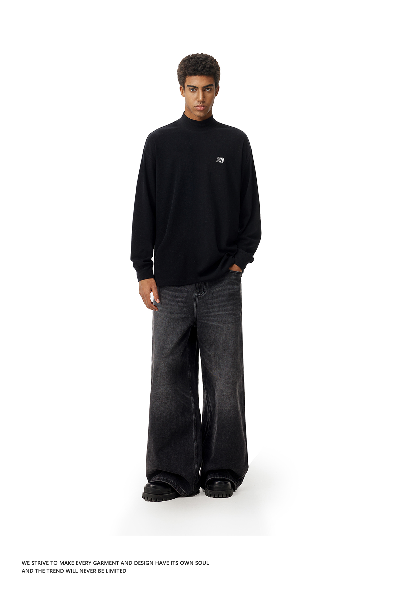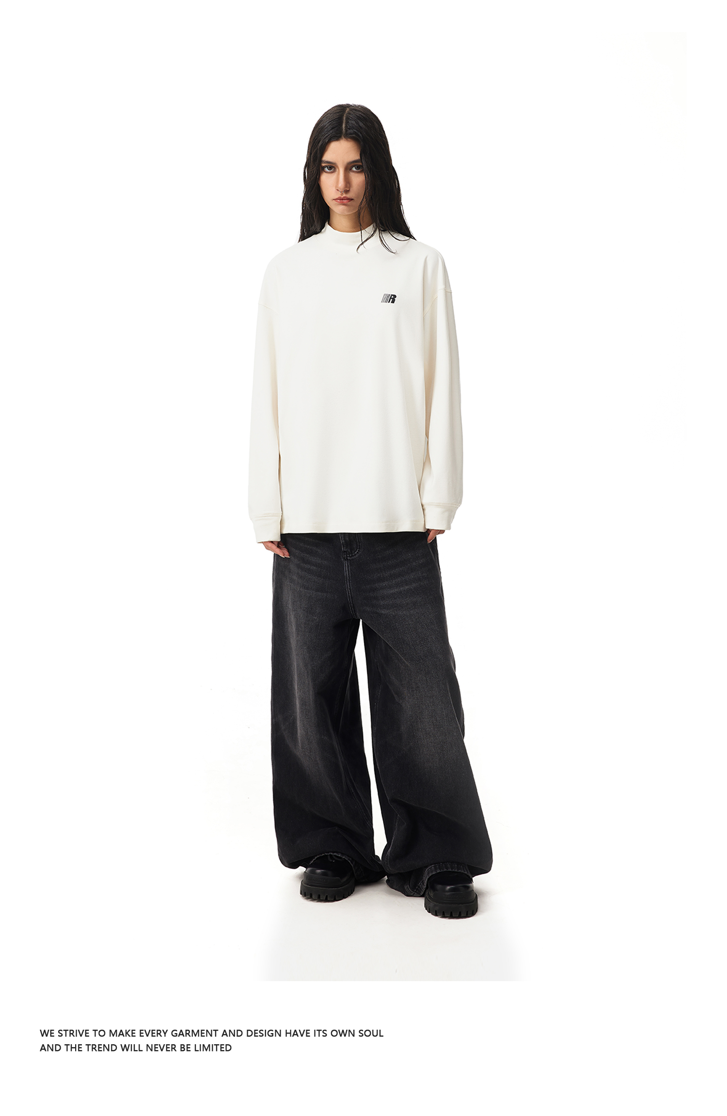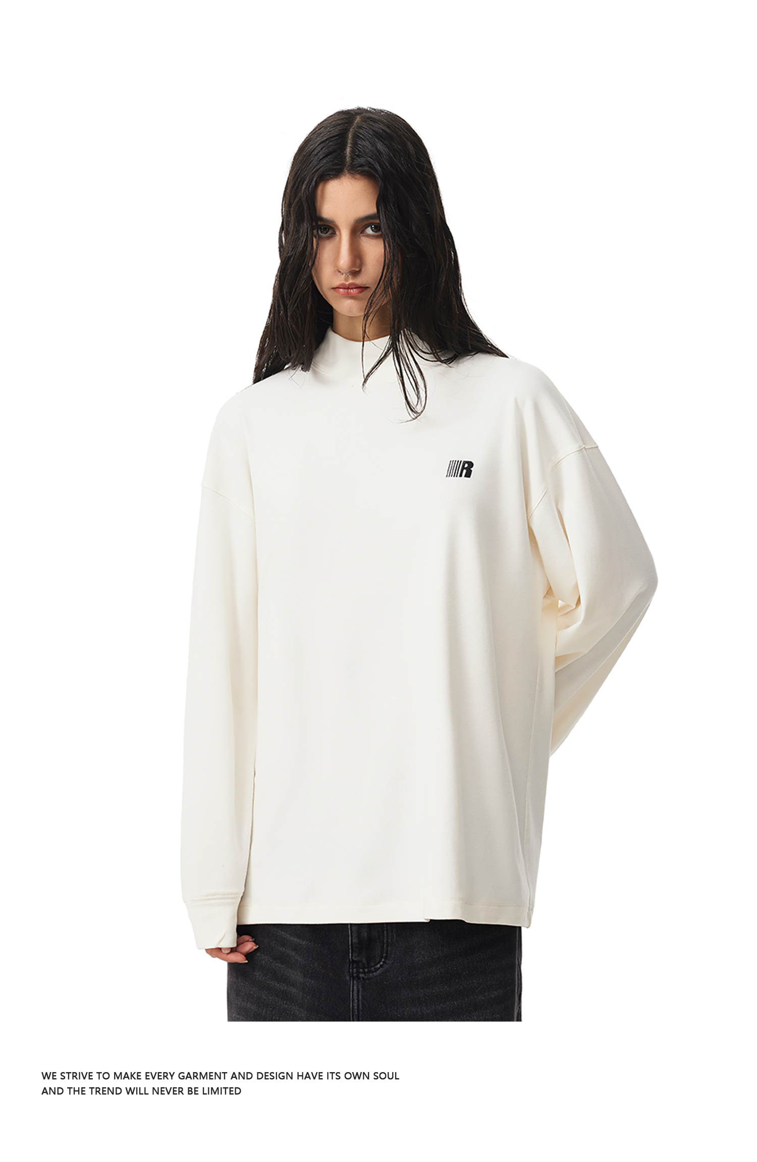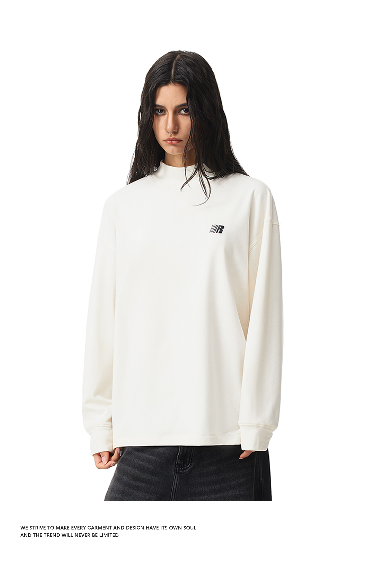 FDR官方店 R字基础半高领长袖T恤男女春秋季新款美式宽松打底衫