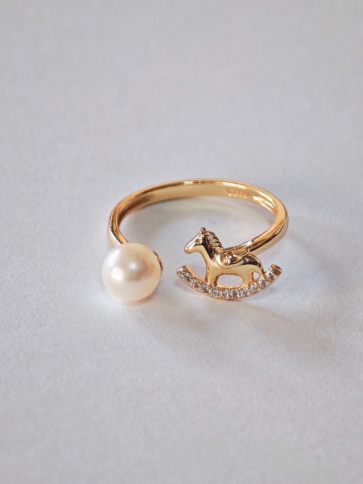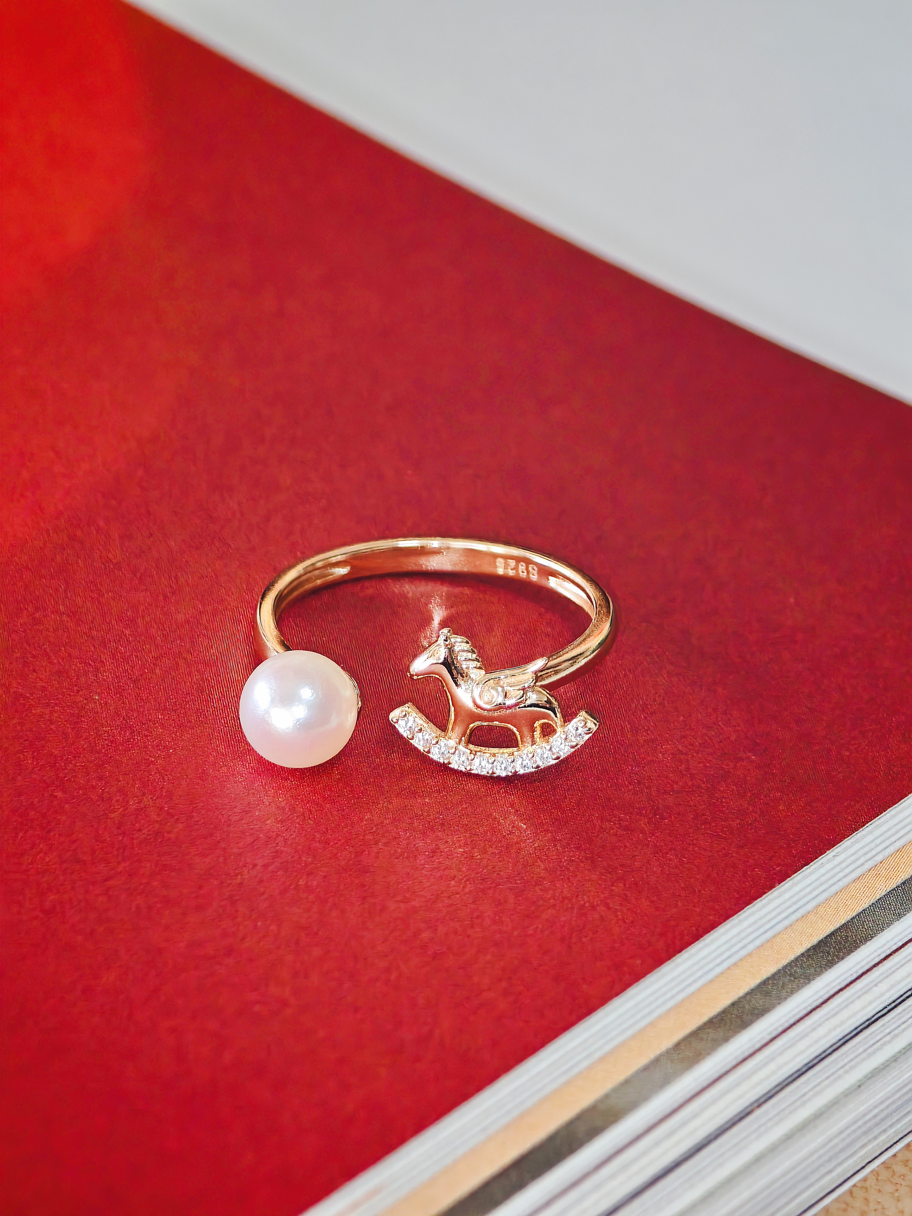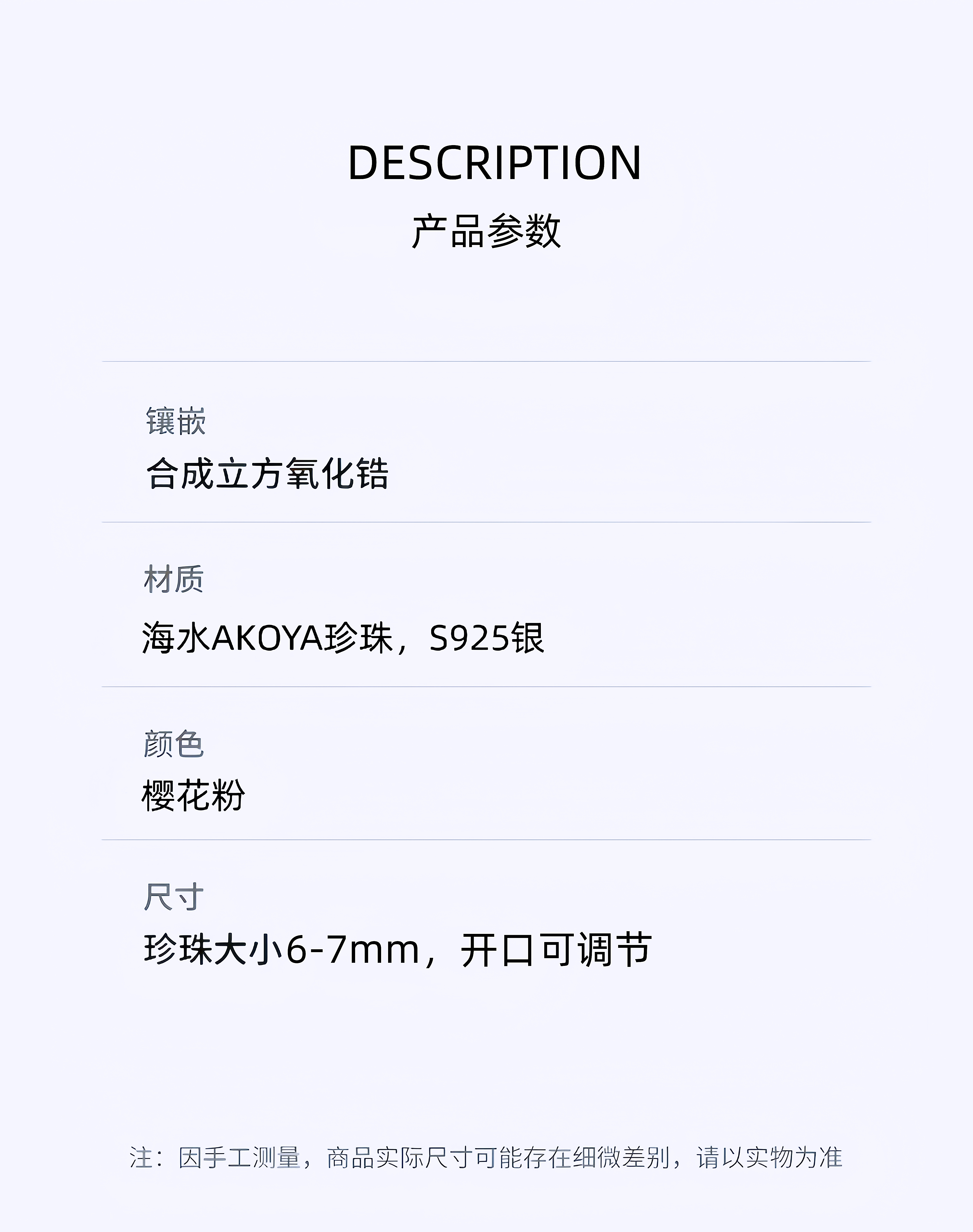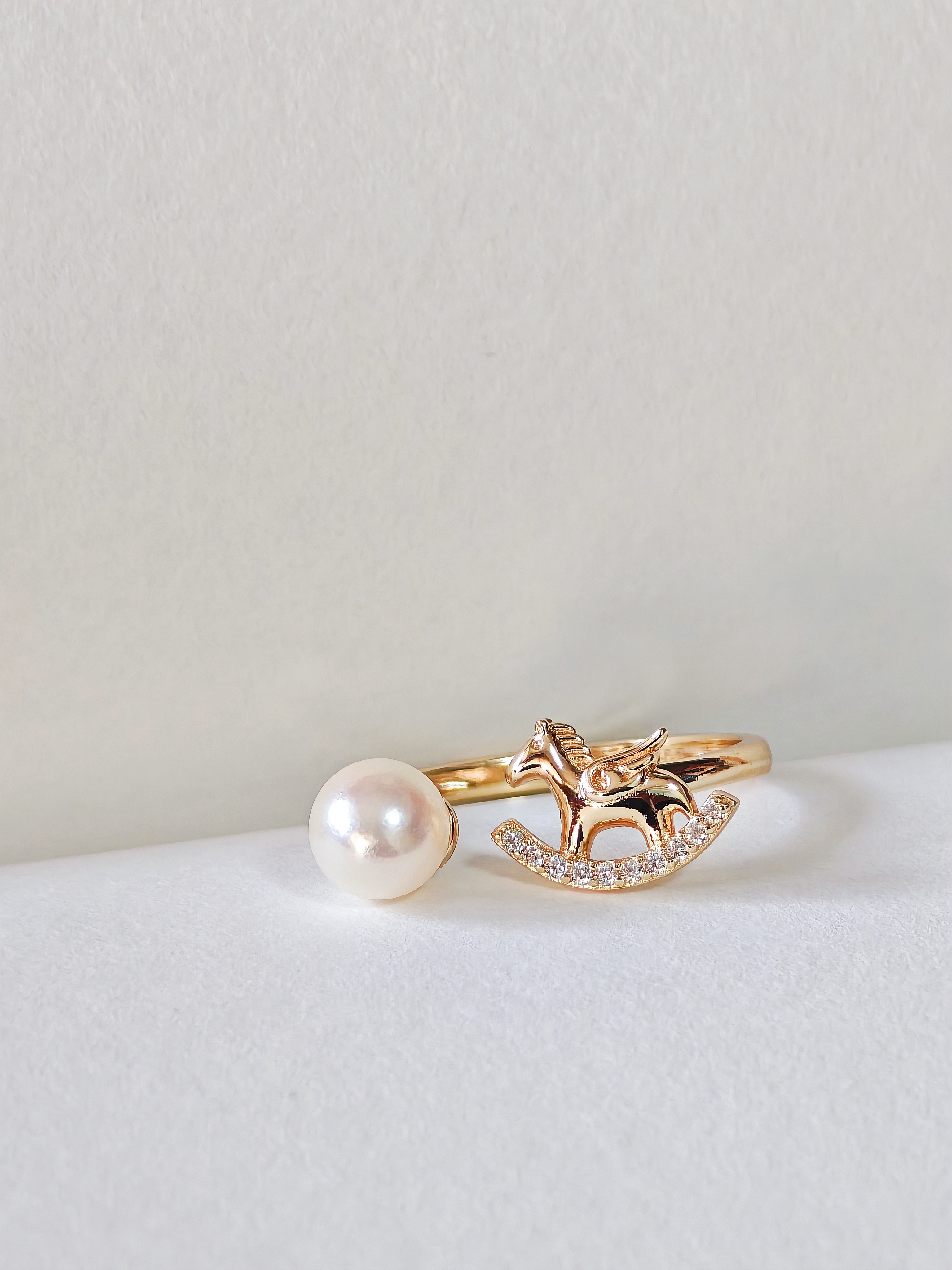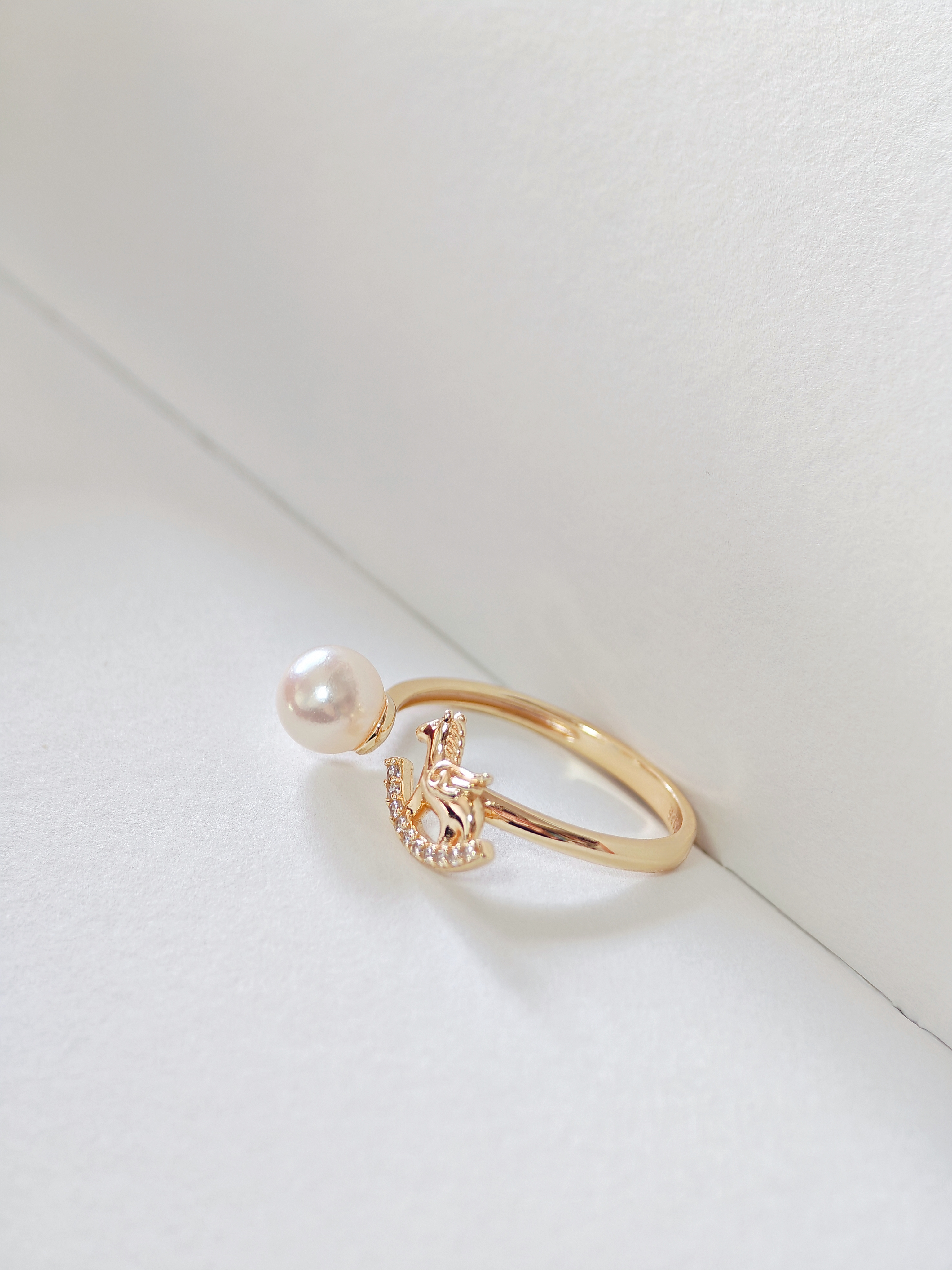 7DYAS “马上有财”海水akoya樱花粉珍珠开口戒指