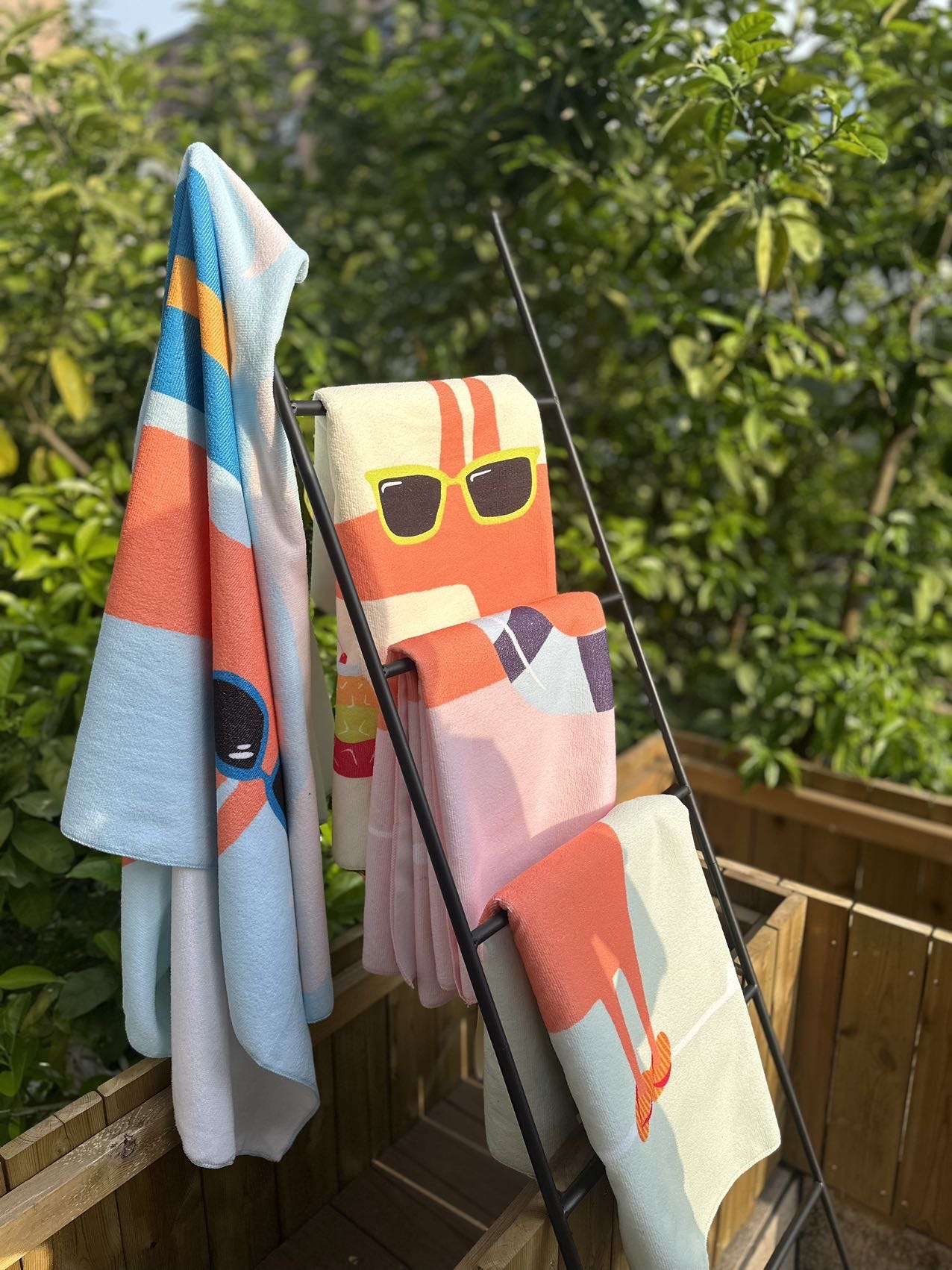 浴巾材质:绒毛纱:100%聚酯/聚酰胺复合纤维/底纱:100%聚酯纤维(缎档及装饰部分除外)