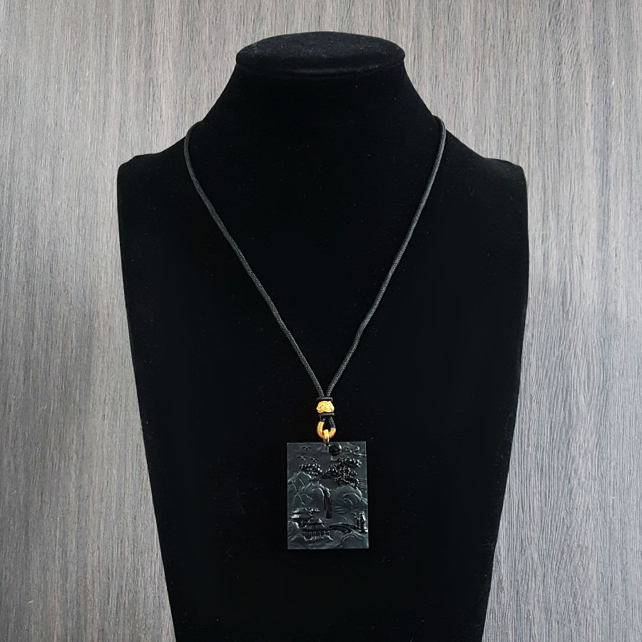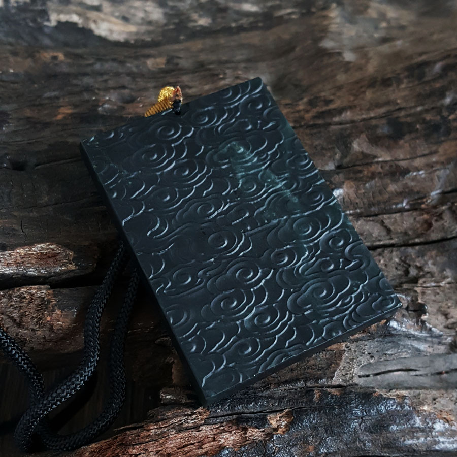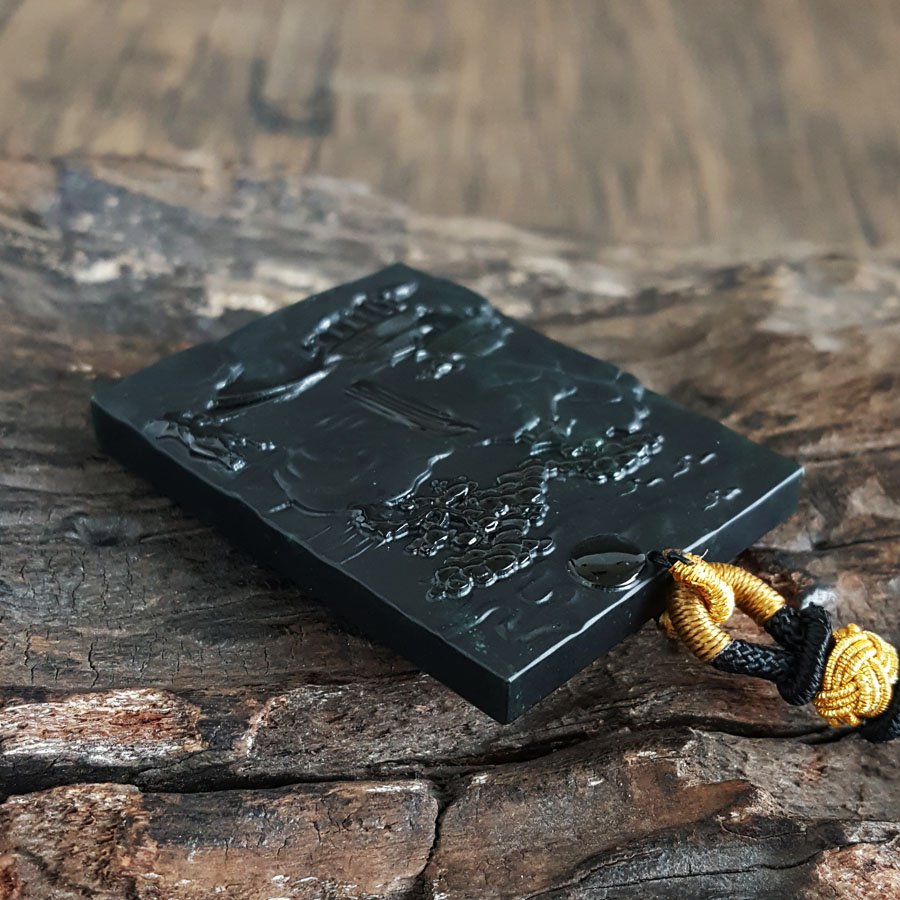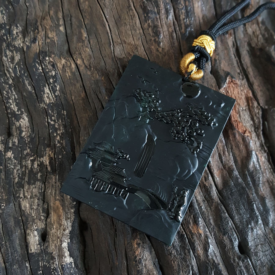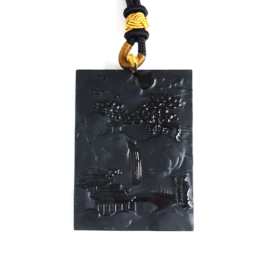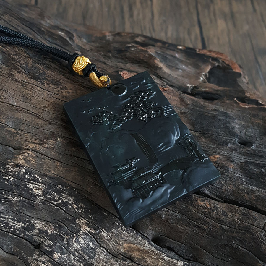 名称 | 天然收藏级细腻冰种无纹裂雕山水平安无事牌墨翠吊坠 |