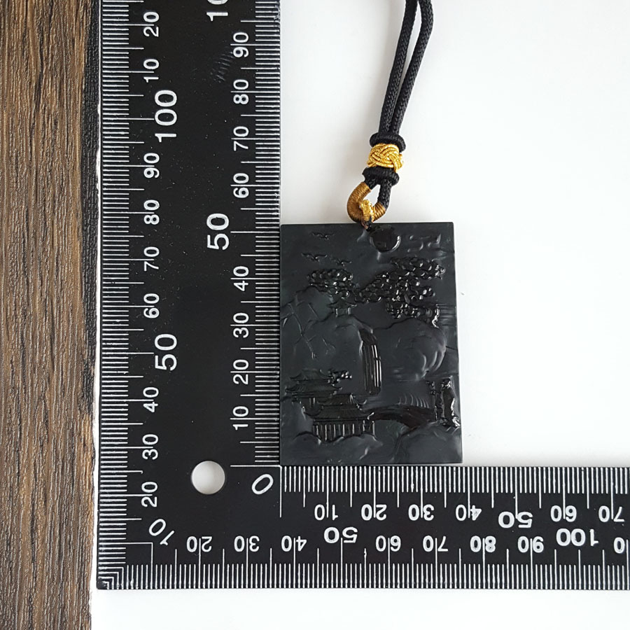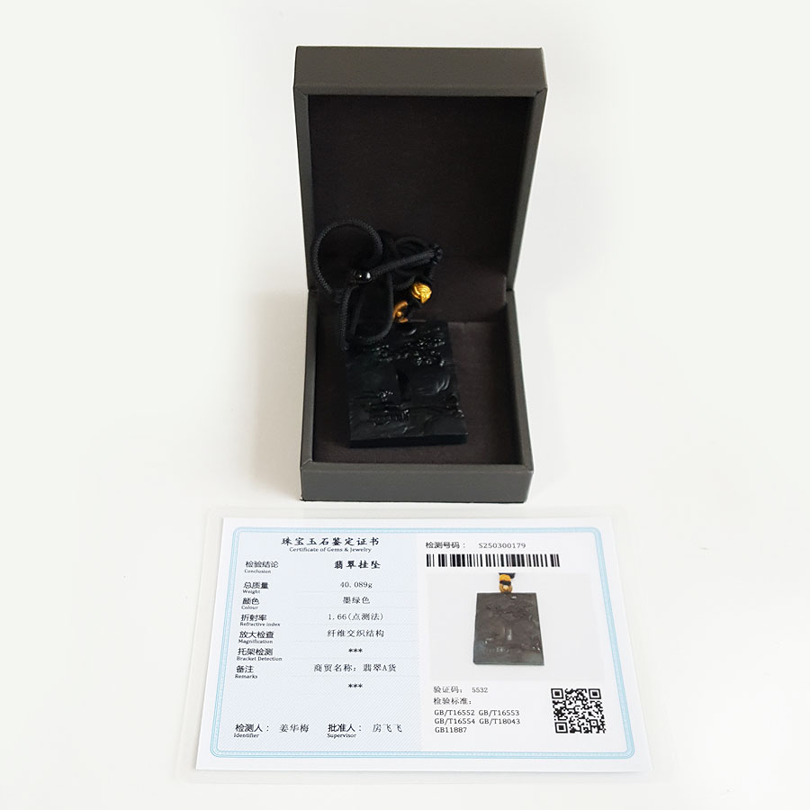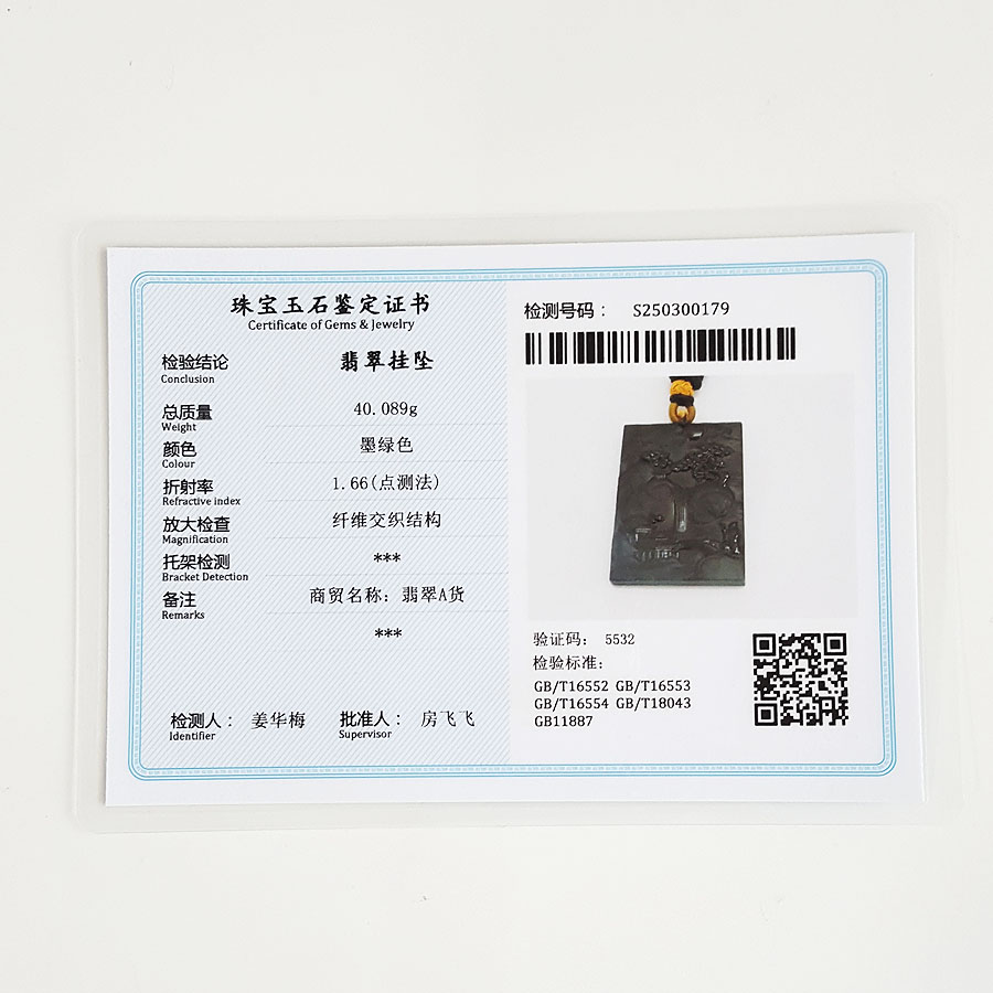 【天然正品】天然收藏级细腻冰种无纹裂雕山水平安无事牌墨翠吊坠51.2*38.5*6.7MM(皆取最大值)中性款现售价:12800!070325AH37