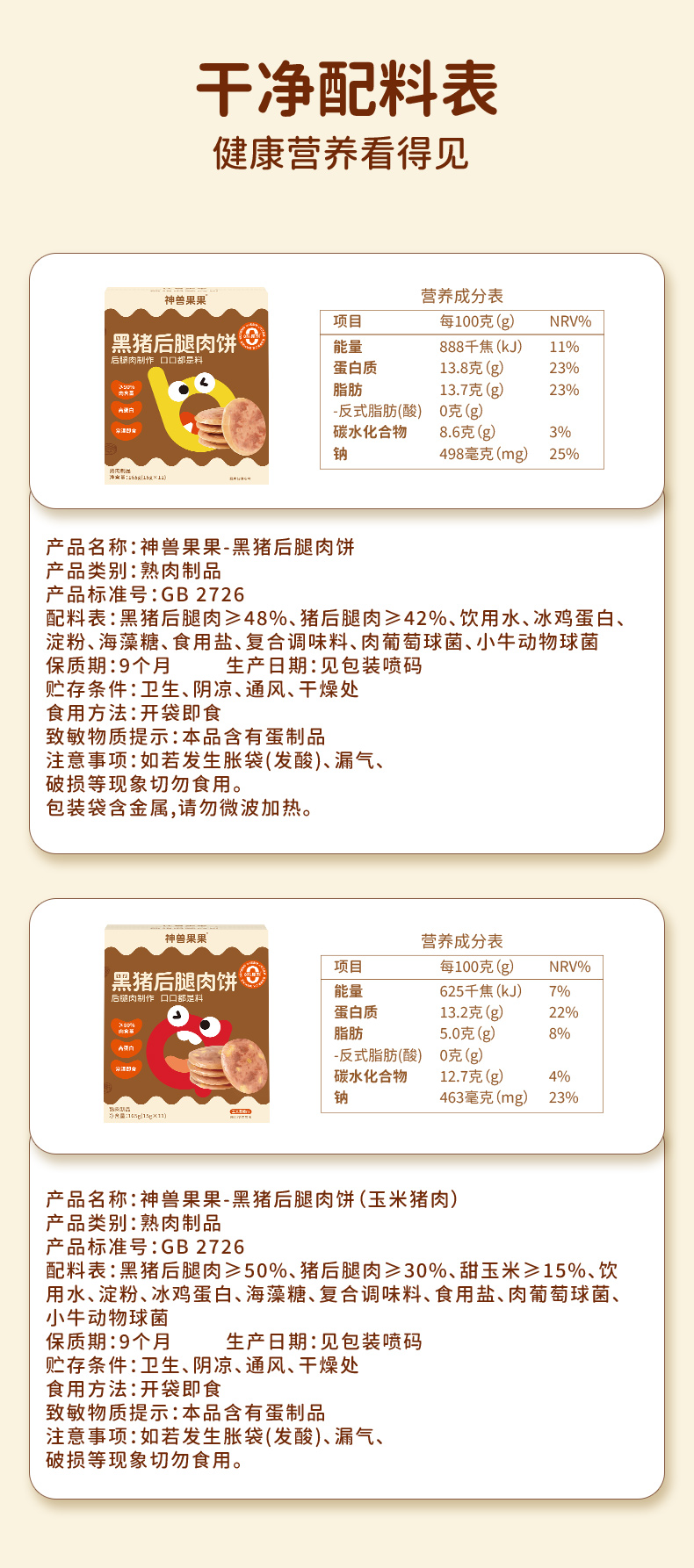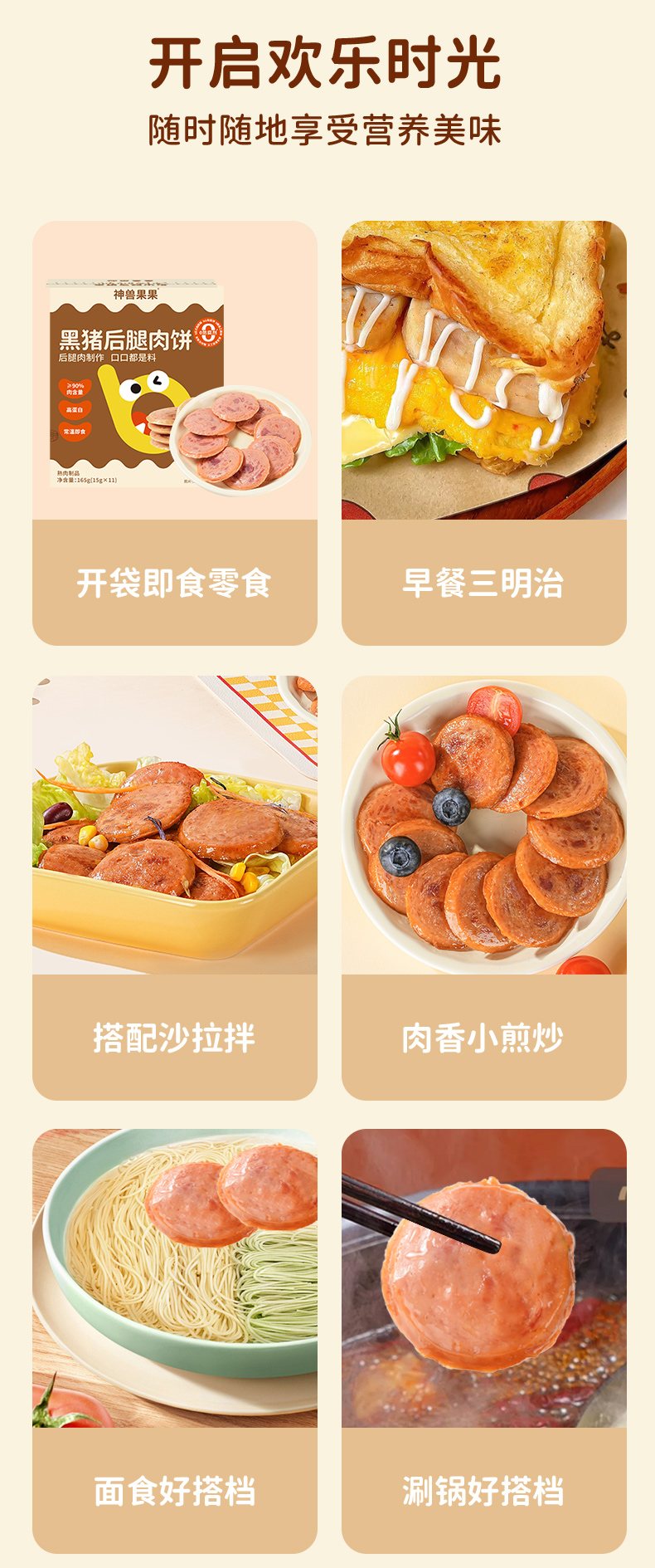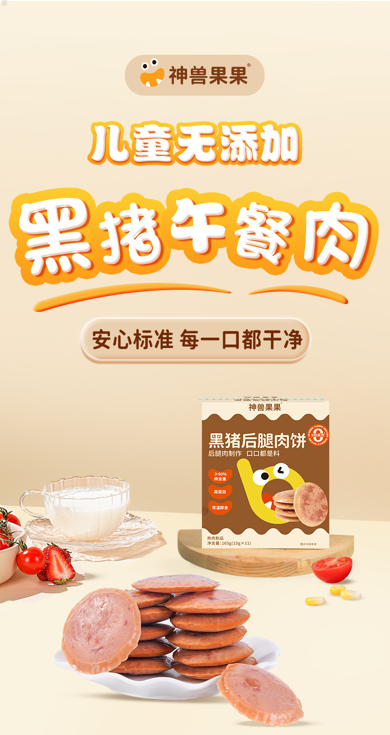 神兽果果 午餐肉黑猪后腿肉饼精选健康儿童宝宝