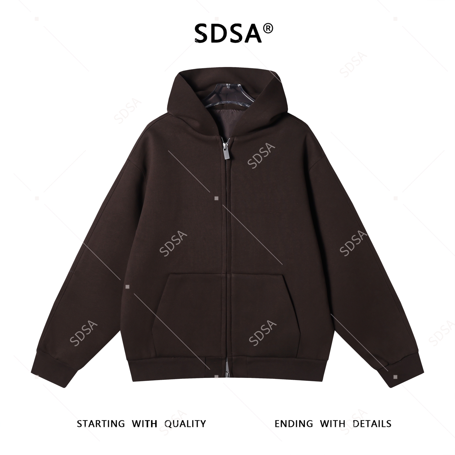 SDSA男士秋冬新款痞帅男装港风复古纯色开衫拉链连帽卫衣外套潮