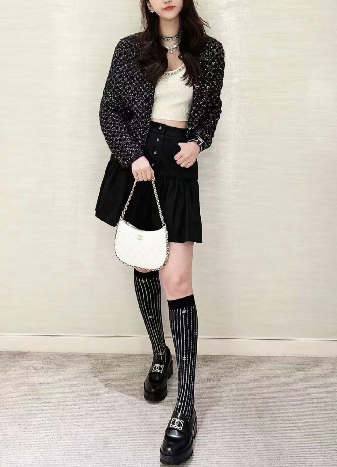 经典大双c标志元素,全黑银扣Logo酷感爆棚