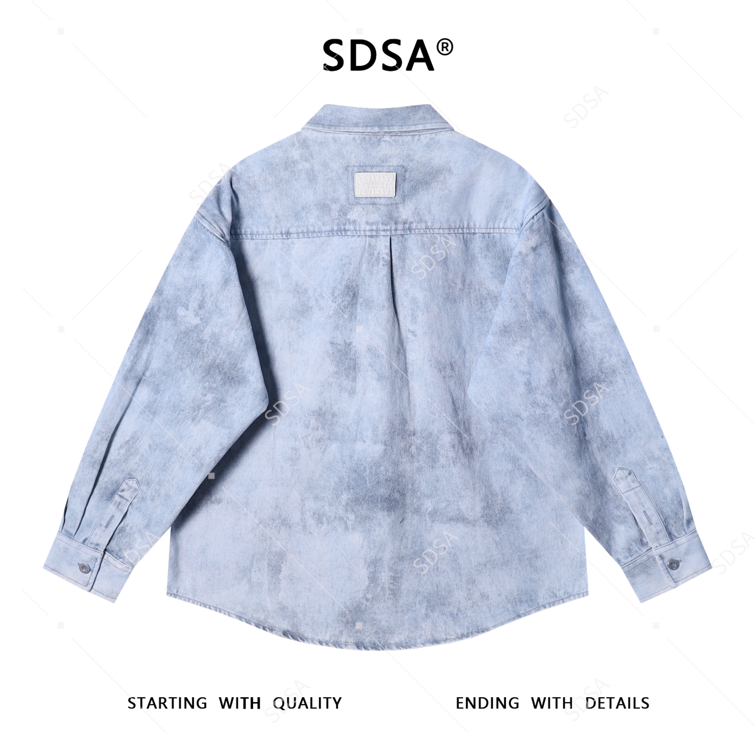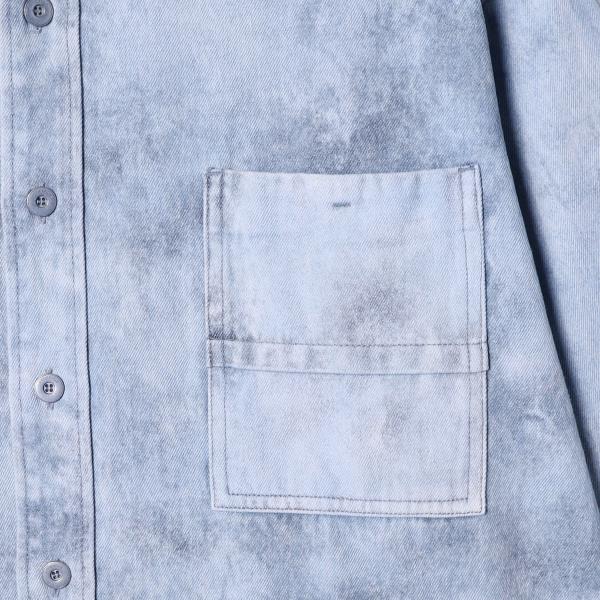 12496SDSA男士秋冬新款痞帅男装韩版扎染磨白纽扣翻领牛仔长袖衬衫时尚