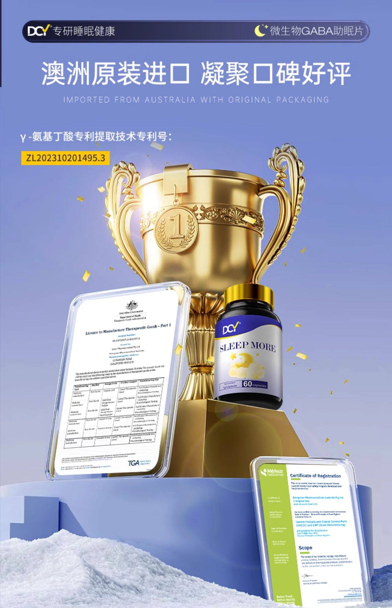 【澳洲进口】DCY第4代睡眠片GABA氨基丁酸安神稳定情绪非褪黑素
