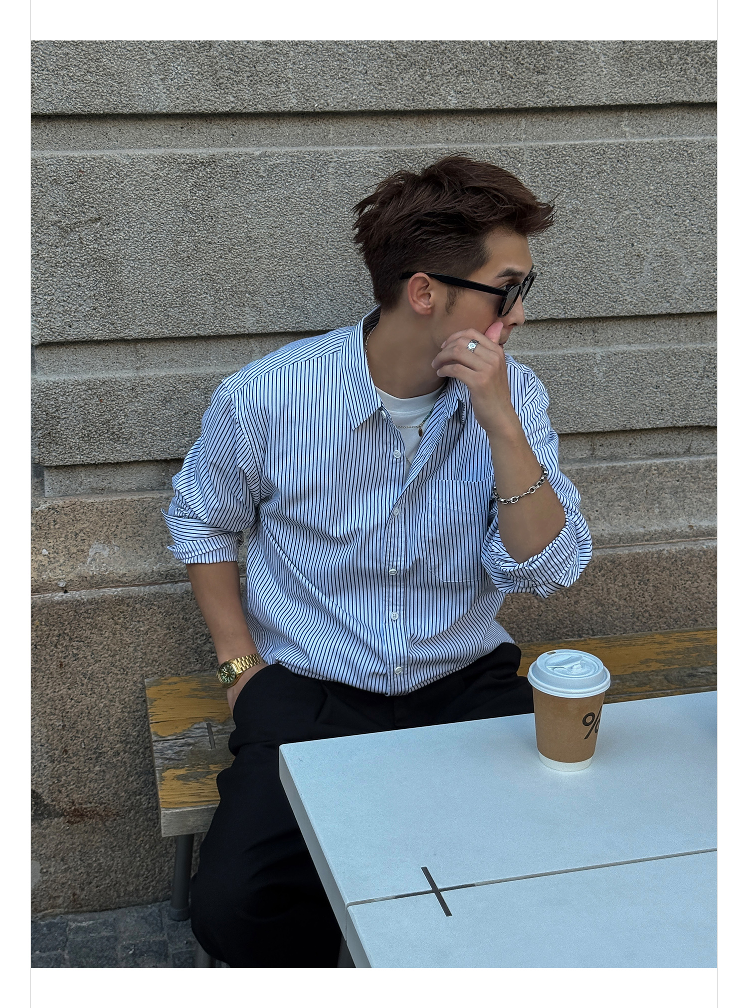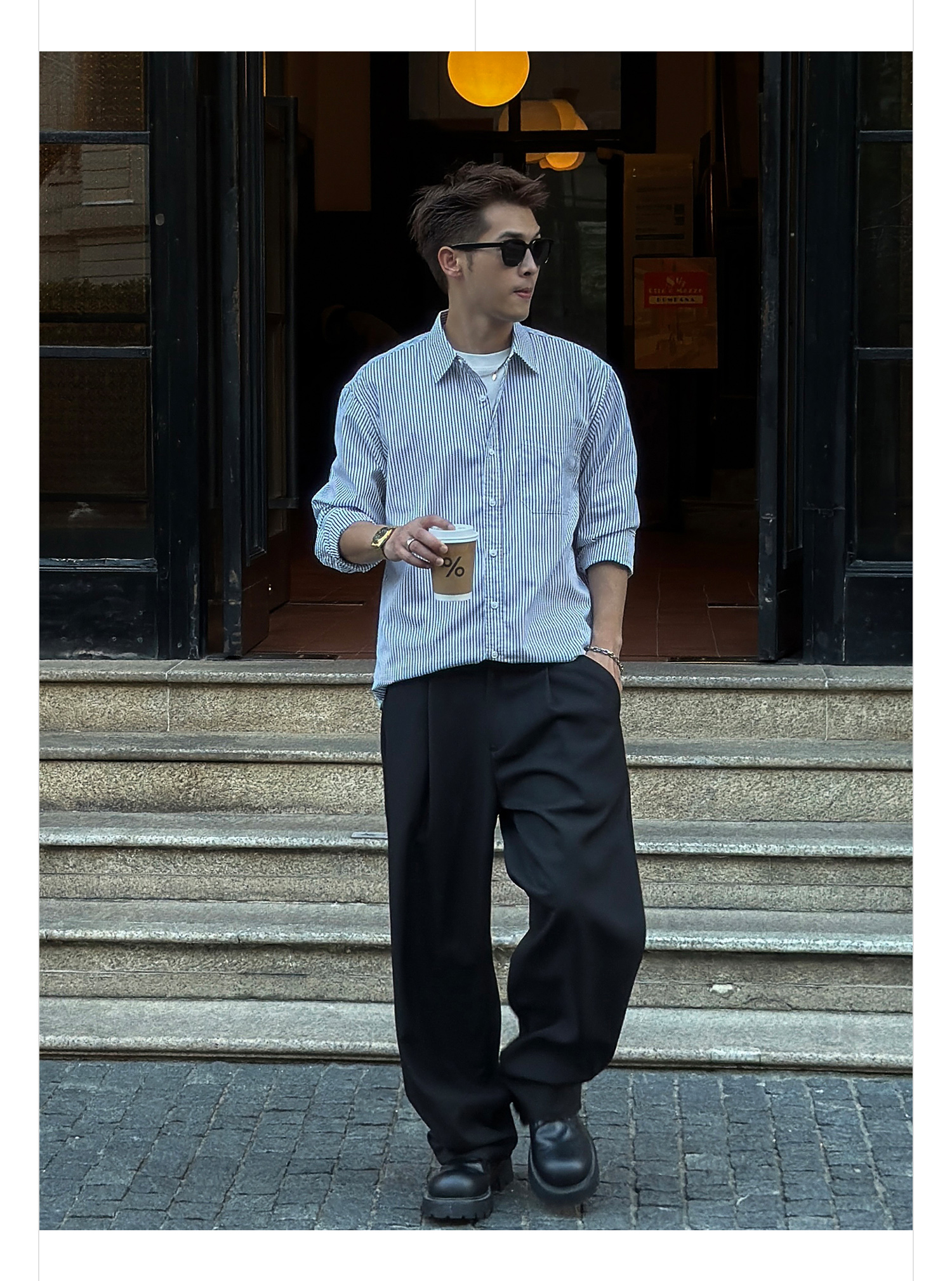 徐太浪【竖条纹 230g纯棉】大码长袖衬衫男春秋2025新款休闲衬衣