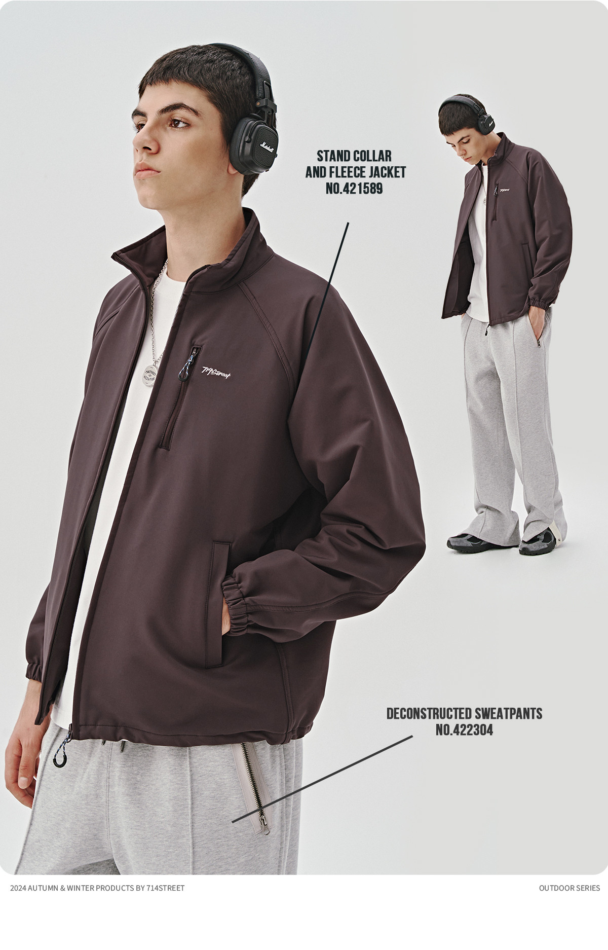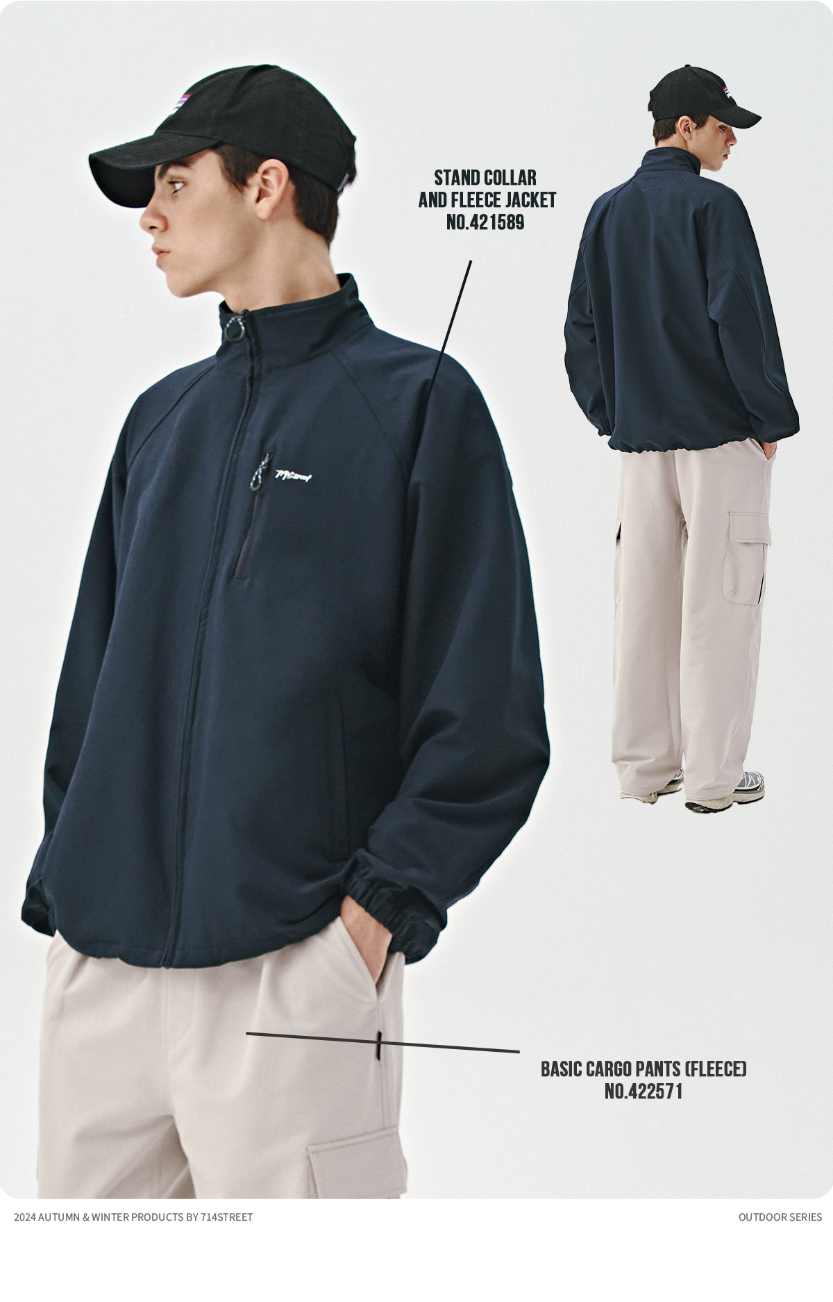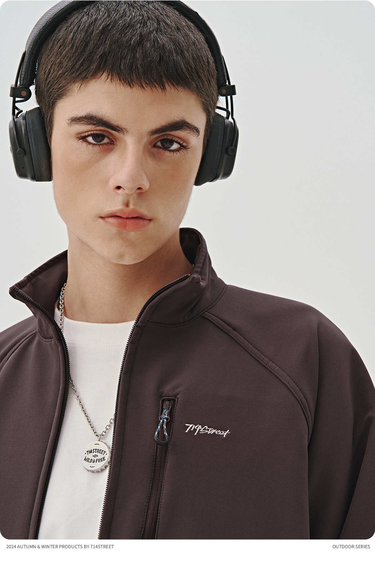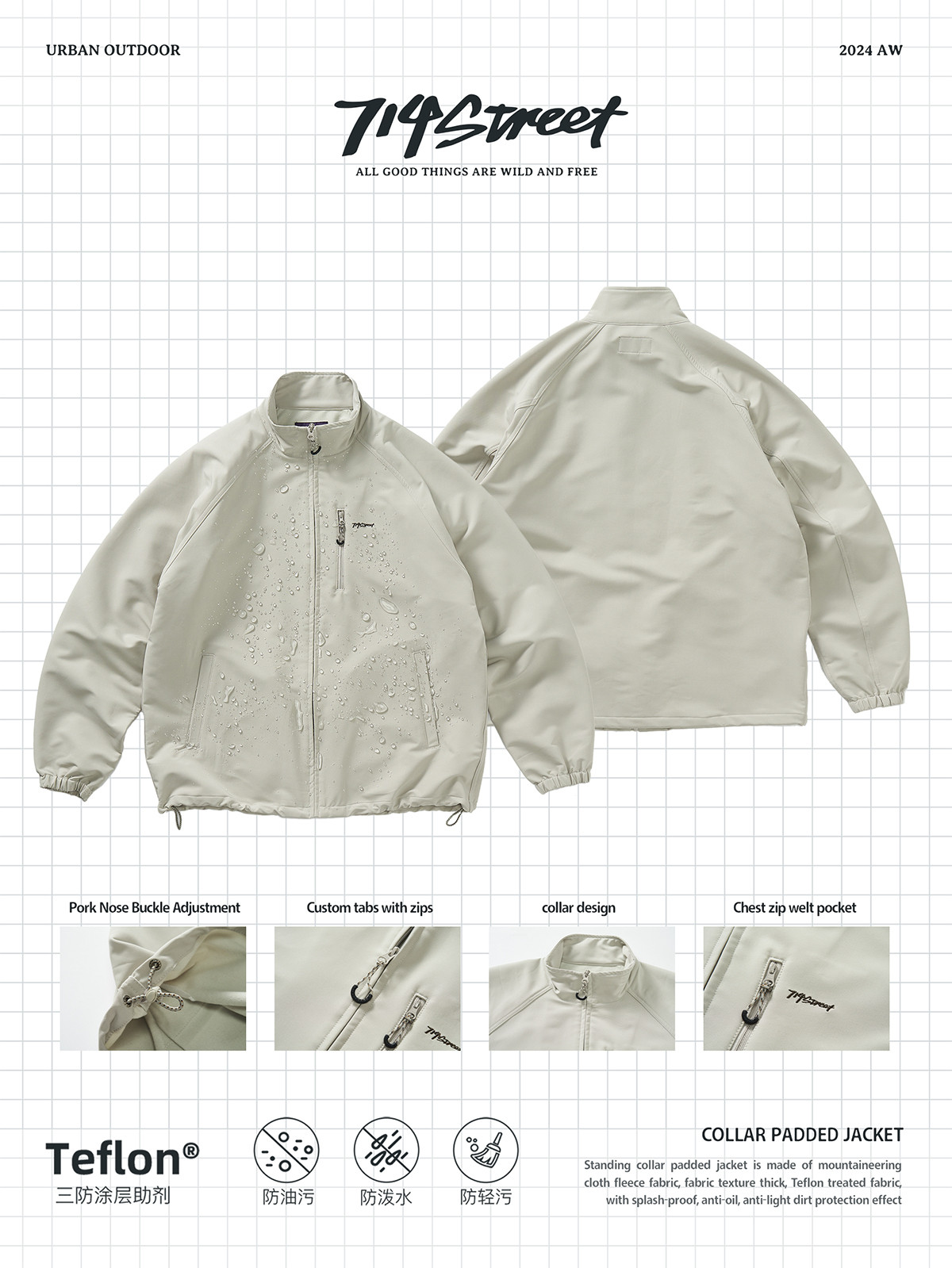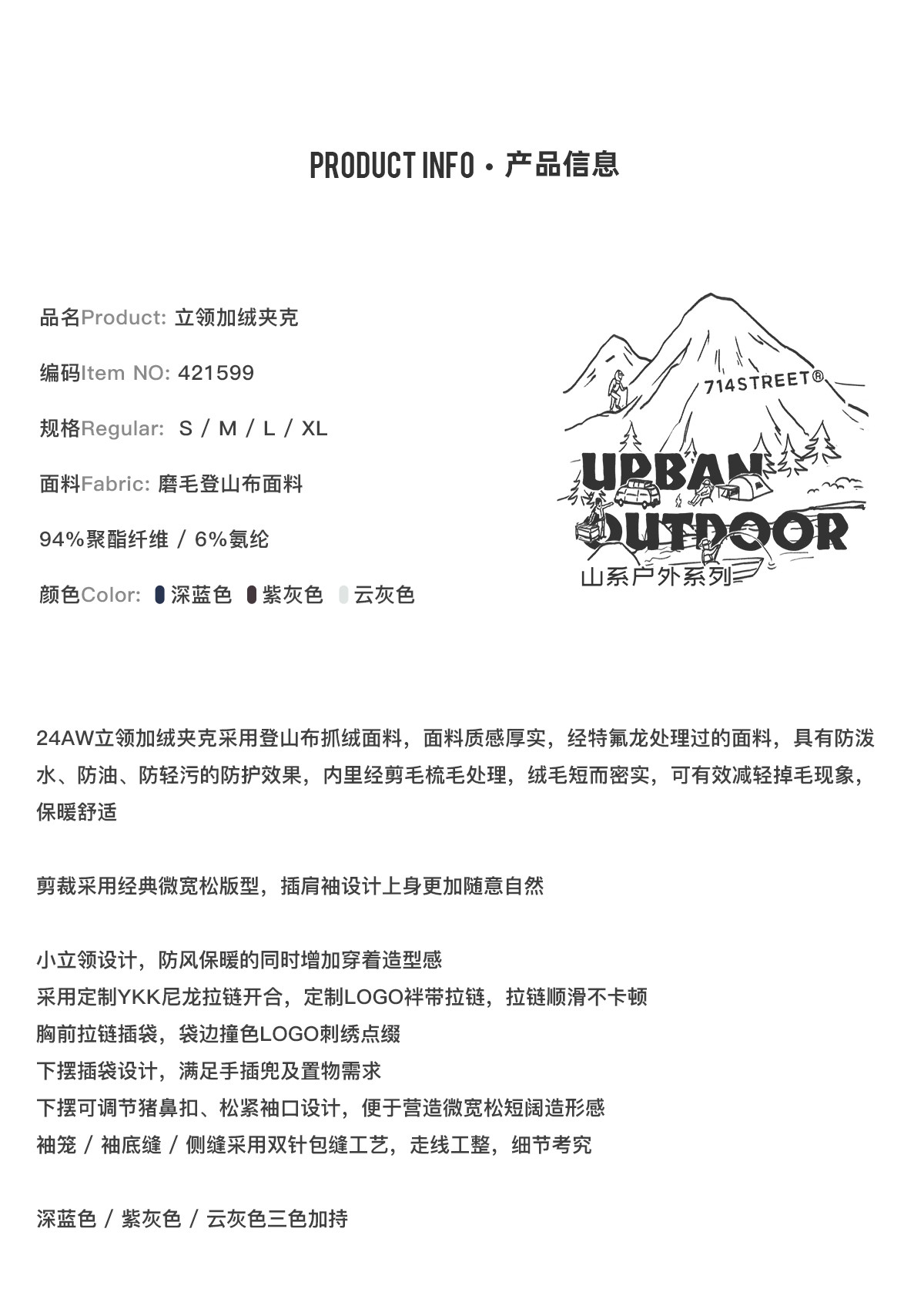 714street山系户外防水立领夹克男女新款防风登山服宽松加绒外套
