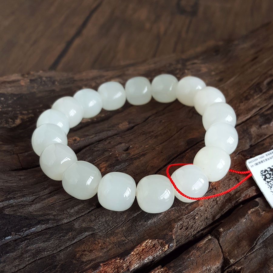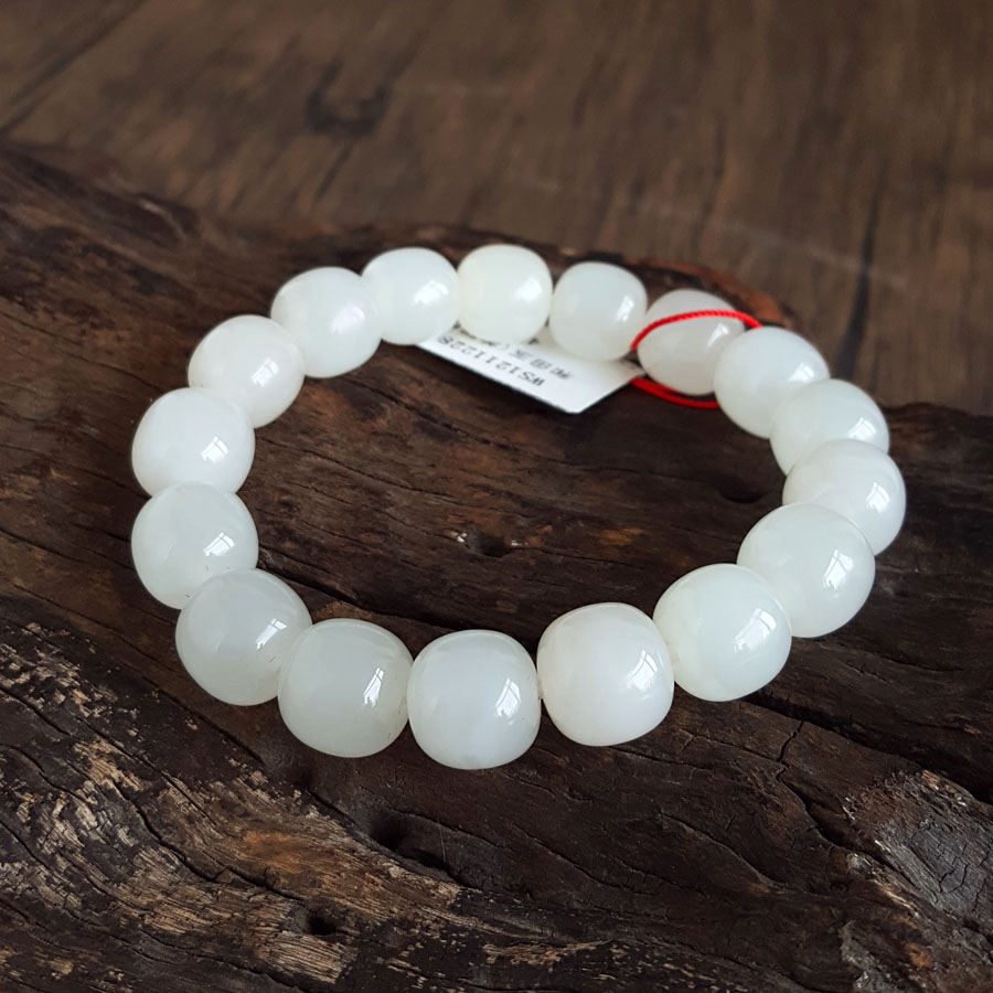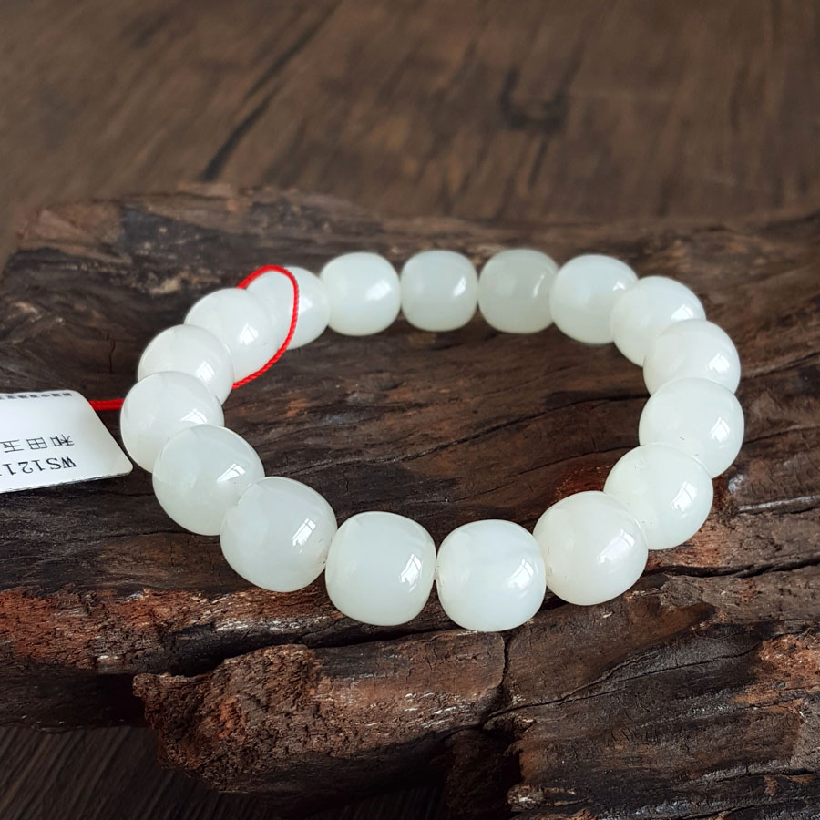 名称 | 天然约11*12MM无杂裂青海料和田玉桶珠手串 |