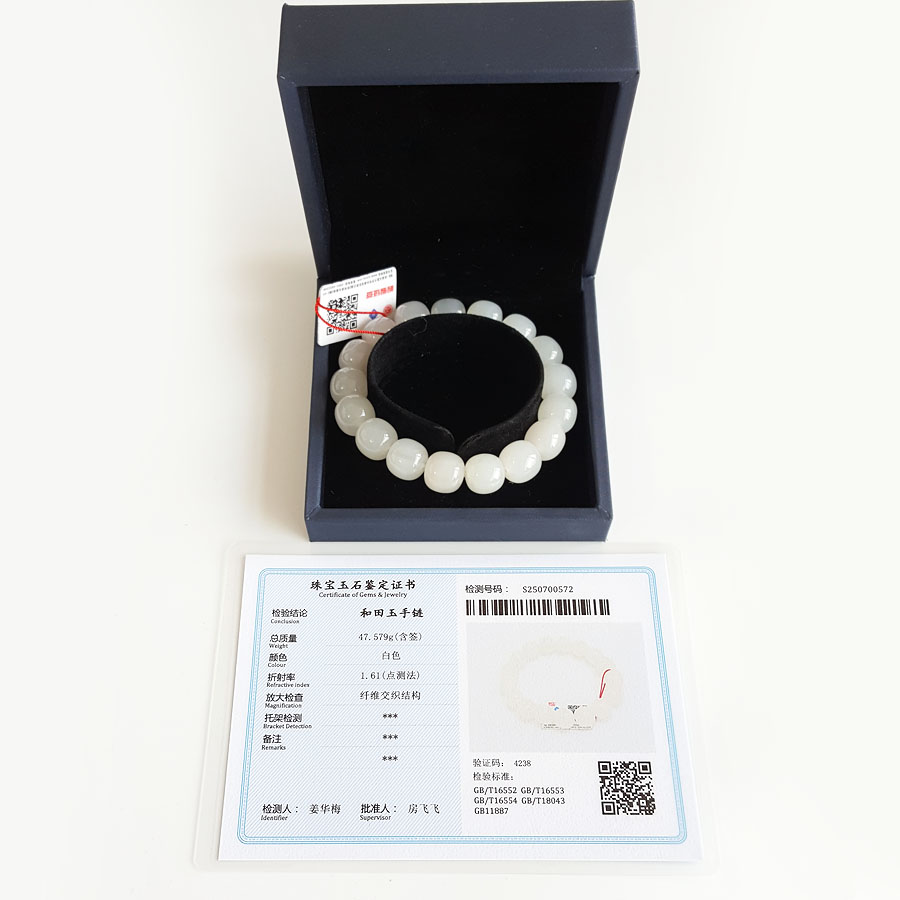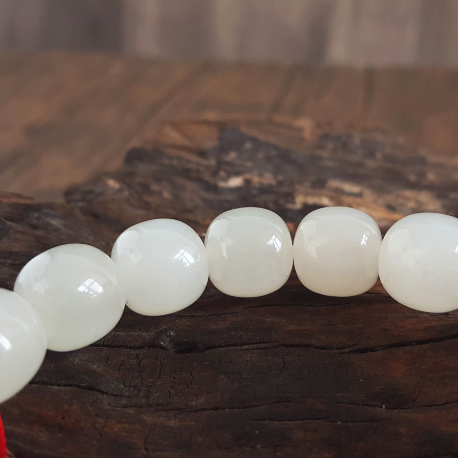 尺寸 | 天然约11*12MM无杂裂青海料和田玉桶珠手串 |