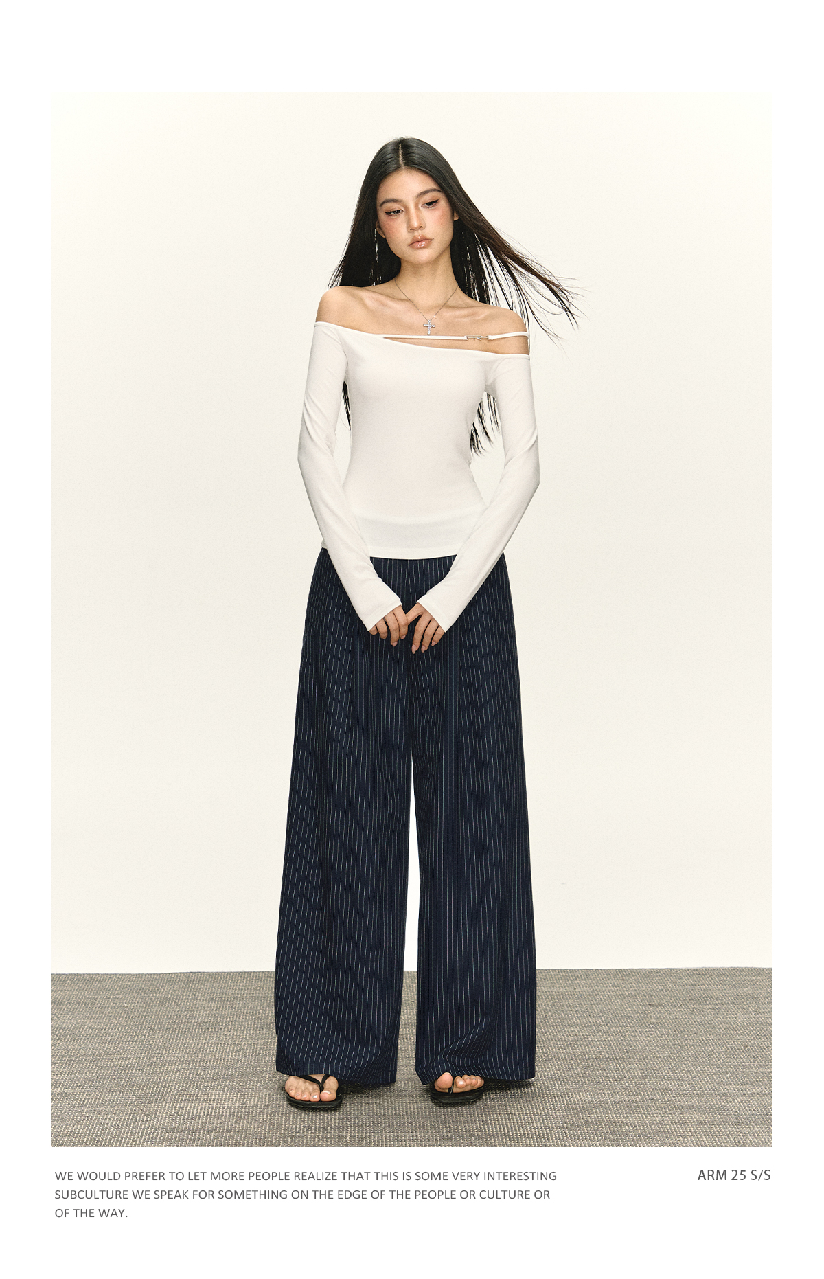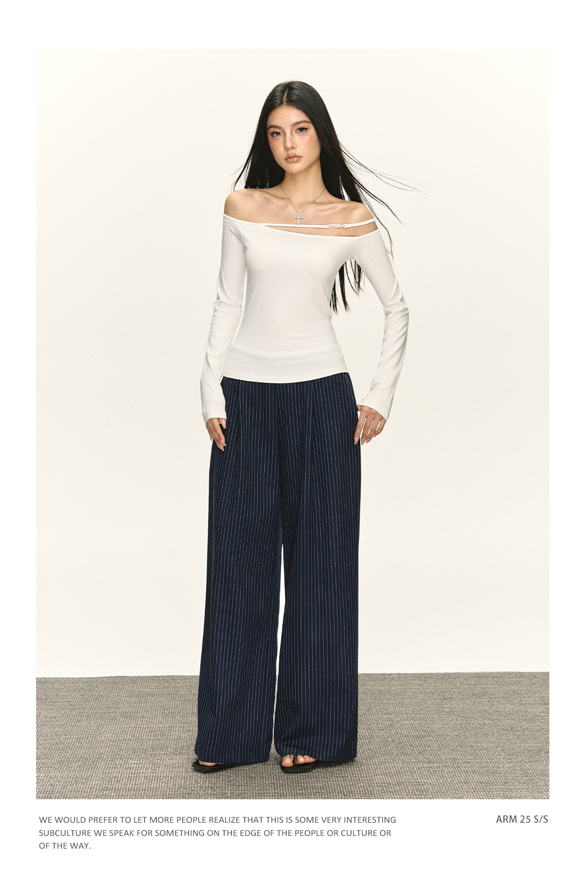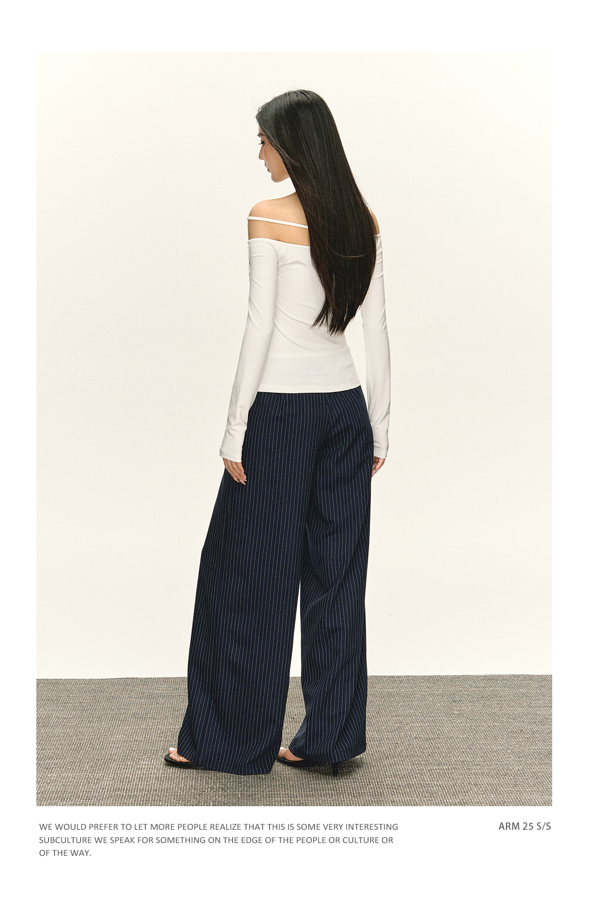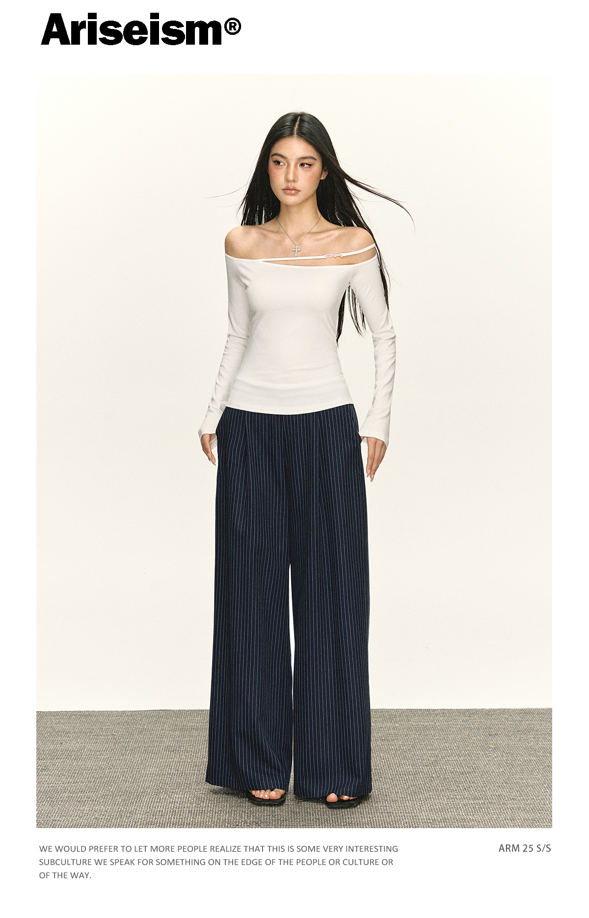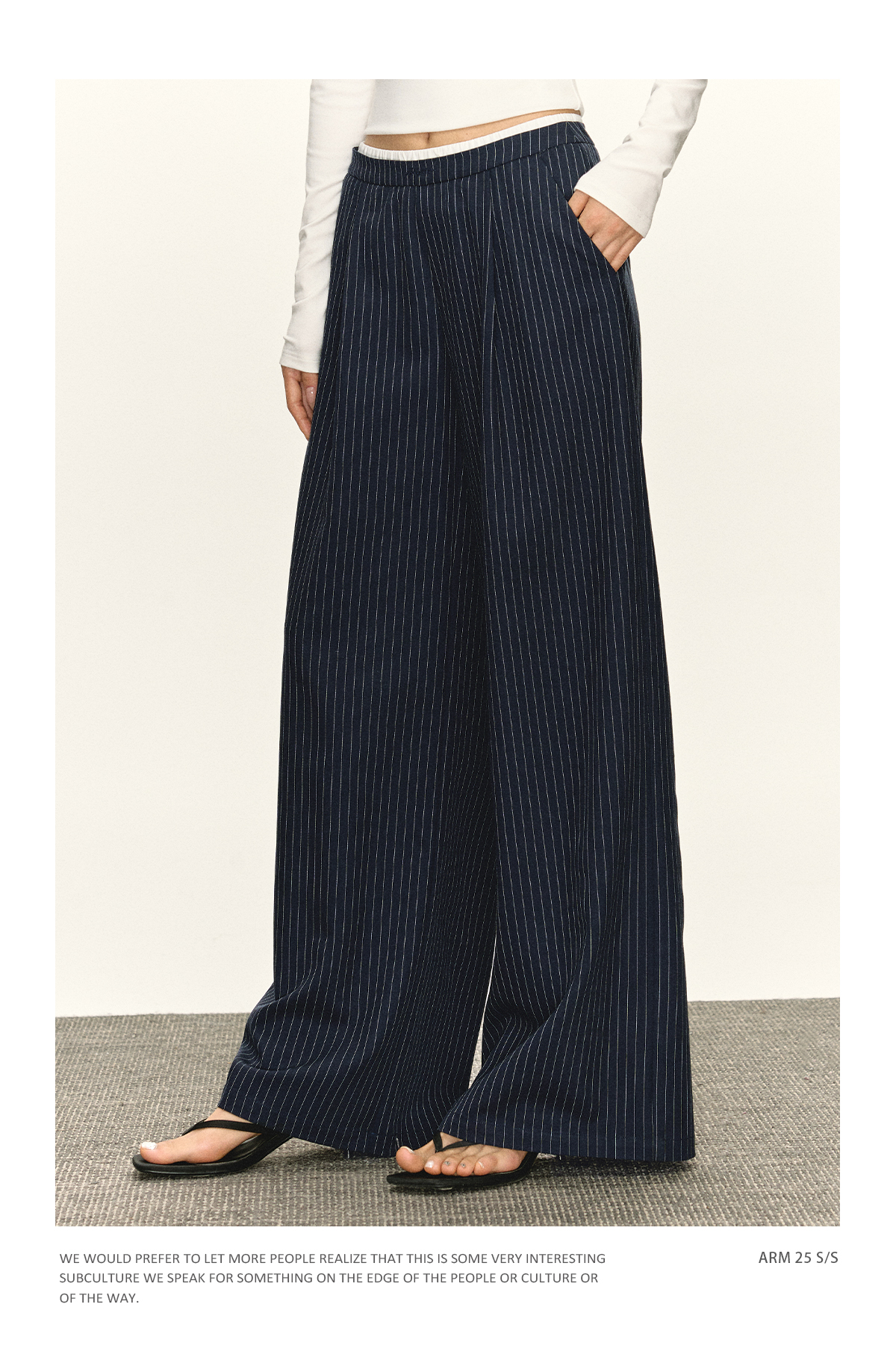 Ariseism 美式复古设计感黑色竖条纹家居裤休闲裤女秋季新款长裤