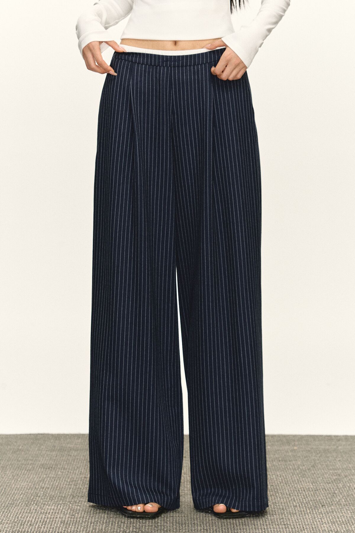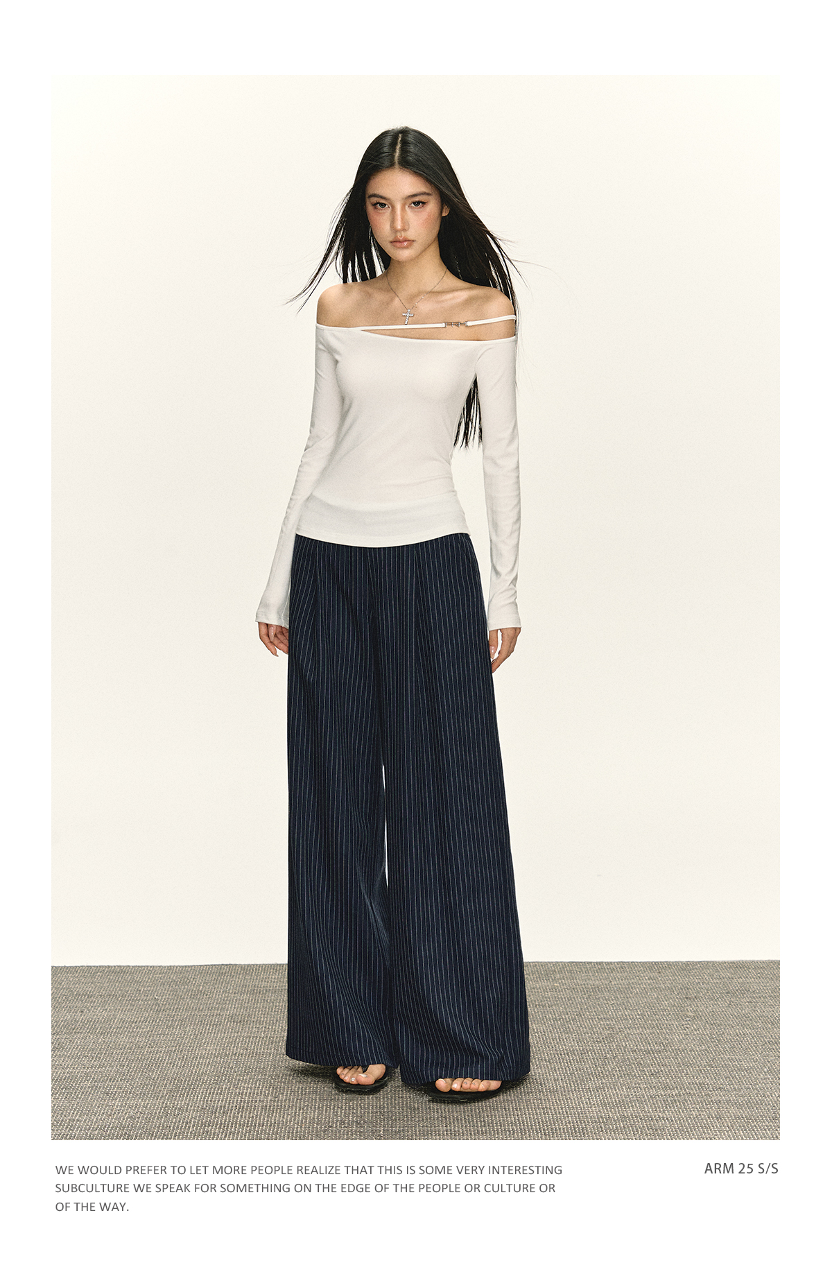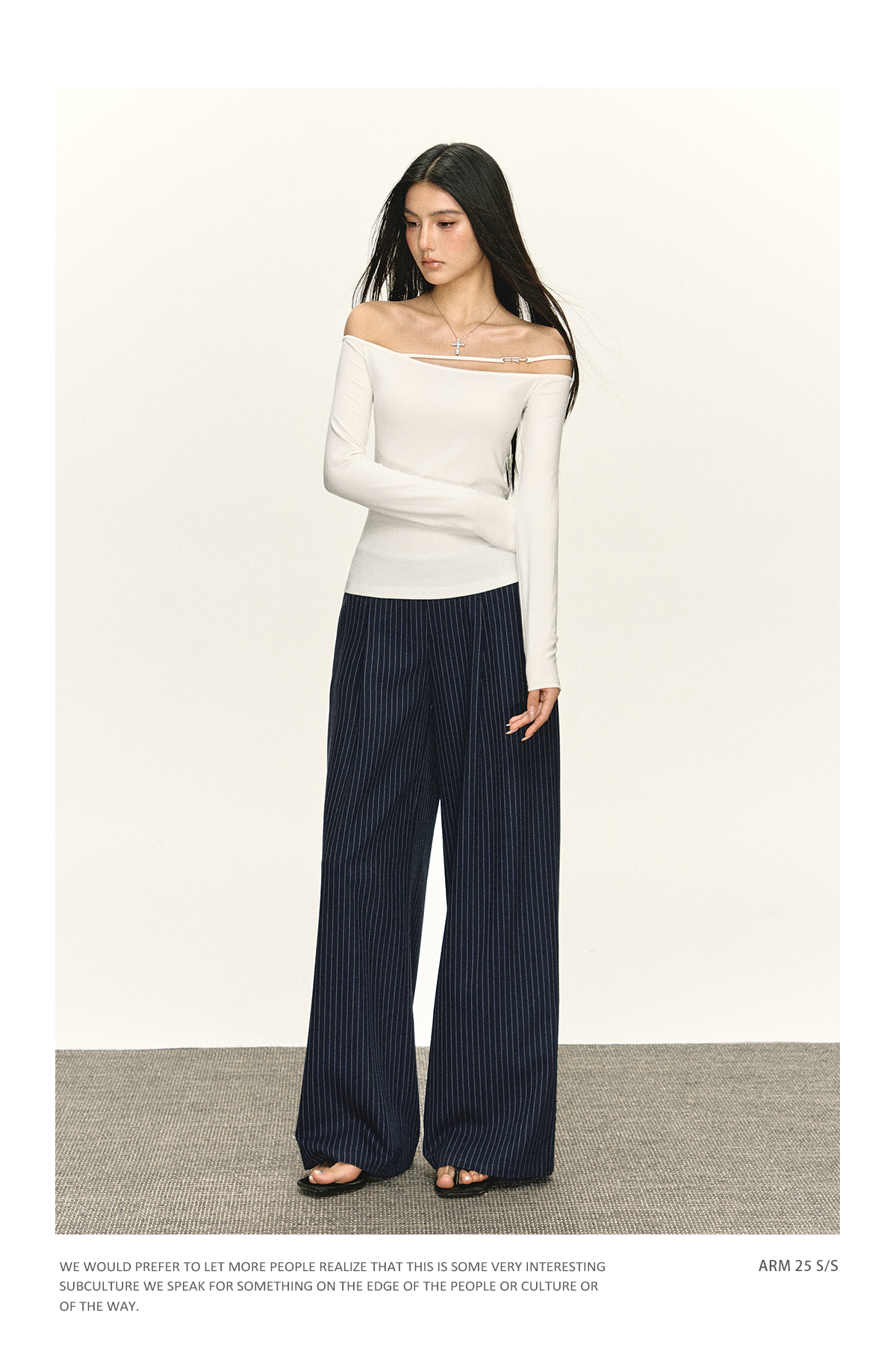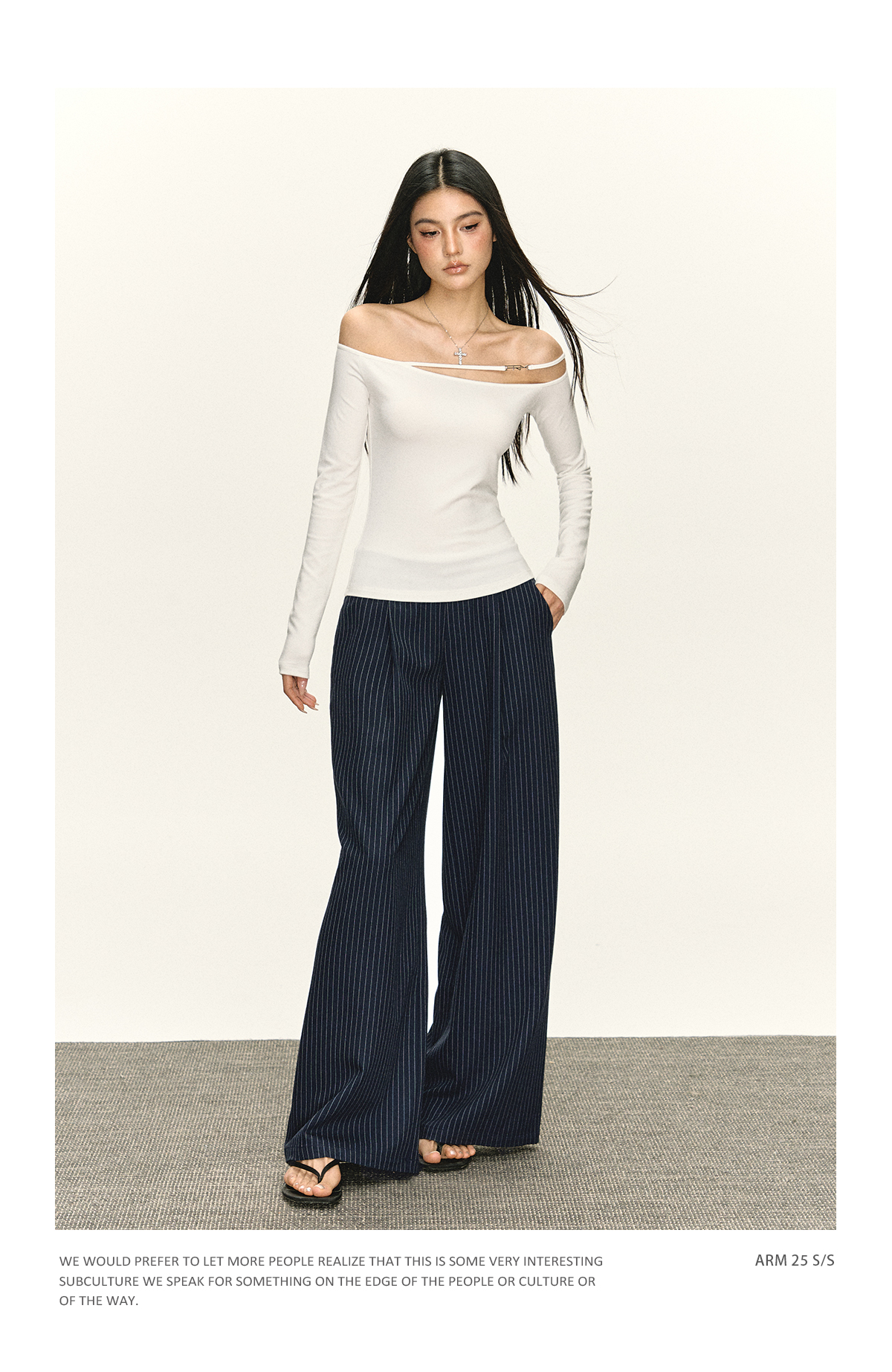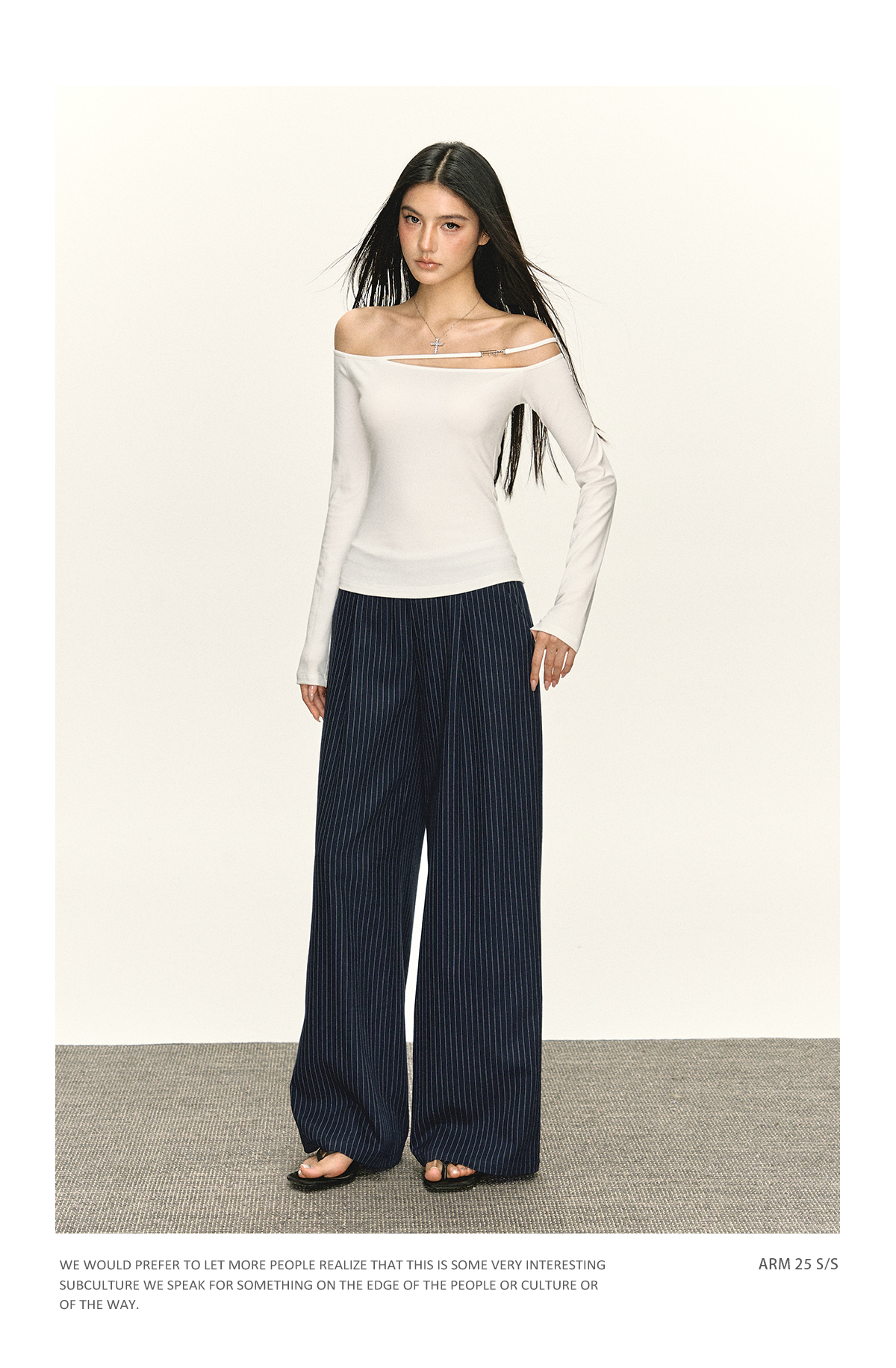 Ariseism 美式复古设计感黑色竖条纹家居裤休闲裤女秋季新款长裤