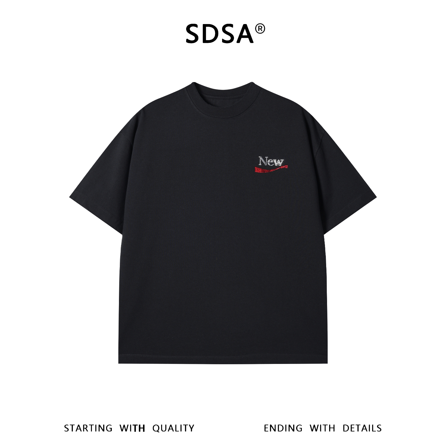 SDSA男装2026新款高贵轻奢美式潮牌烫钻字母圆领短袖T恤百搭时尚