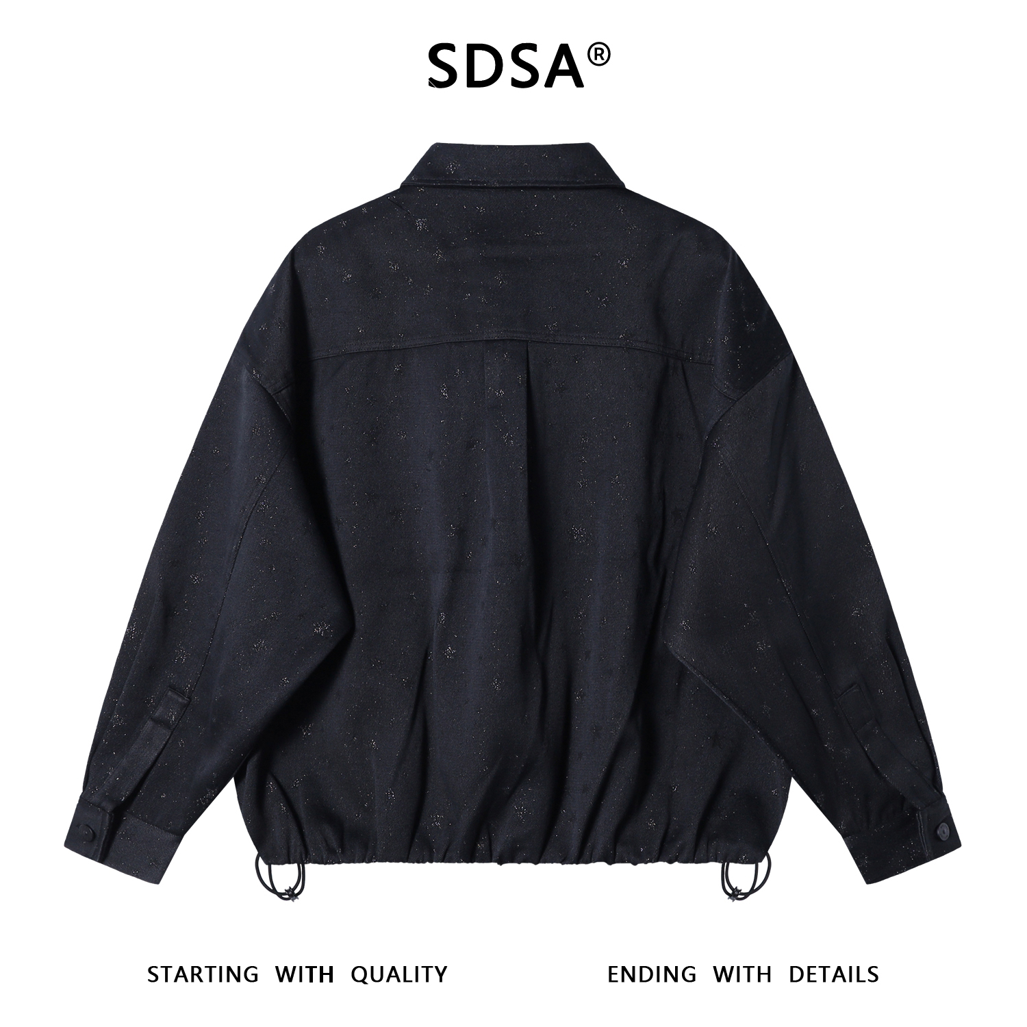 23760SDSA秋冬新款痞帅男装潮牌满印洒金星星翻领夹克外套下摆松紧百搭
