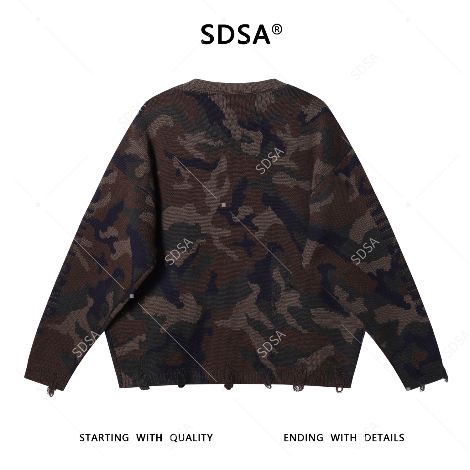 SDSA男士秋冬新款痞帅男装潮牌迷彩拉链圆领针织衫百搭开衫毛衣