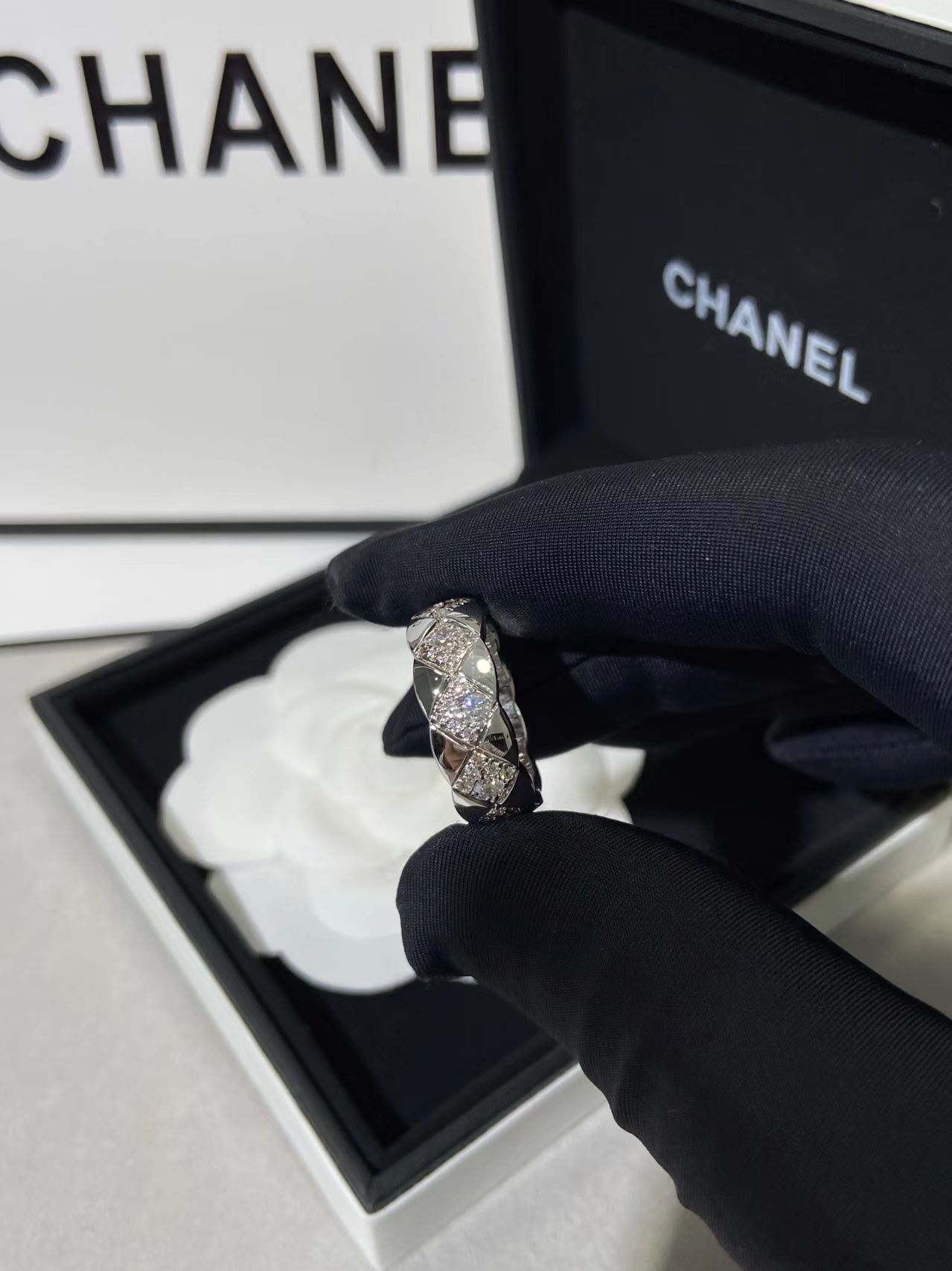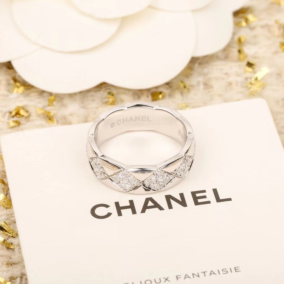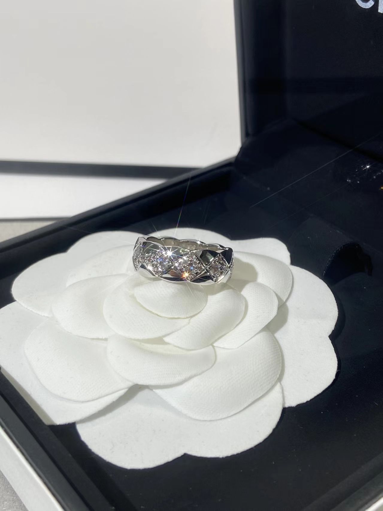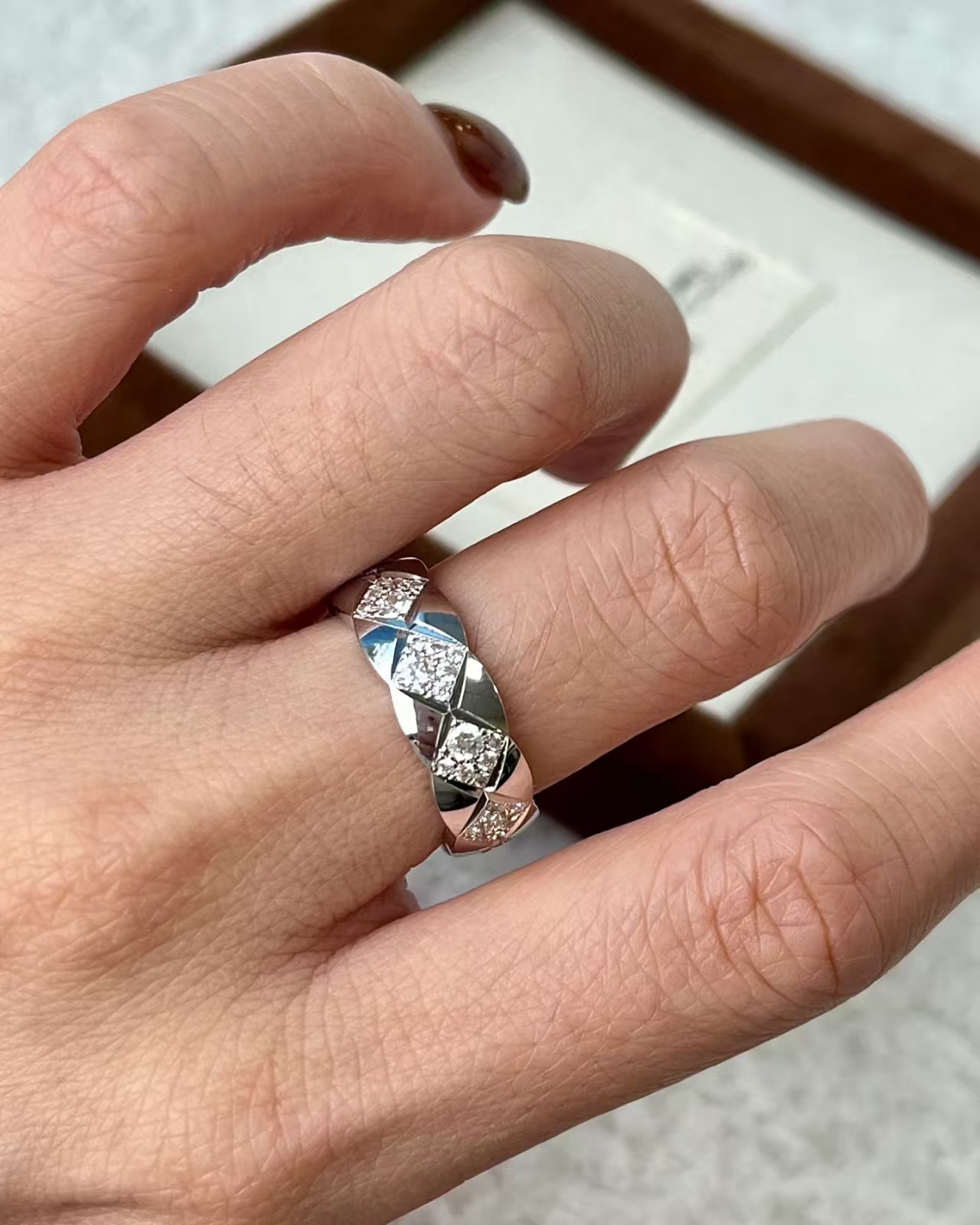 TB36-香奈儿菱格纹宽版镶钻戒指(XK)