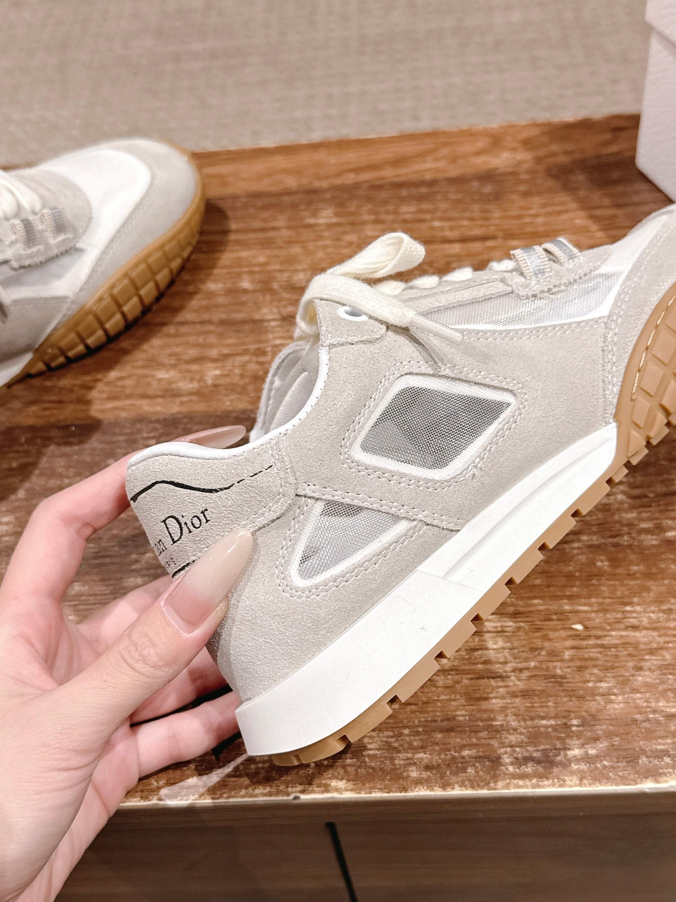 Christian Dior 迪奥新款情侣 休闲鞋 德训鞋 鞋面采用麂皮和网面拼接 精心制作,正面饰以同色调绒面牛皮革镶片, 系带设计,穿脱方便,底厚显高显瘦小能手 既能配裤装又能配裙装可咸可甜超级推荐,百搭完美 原版楦型 上脚超舒服羊皮内里 Tpu大底 Size:男女35-46(女40男4546订做不退换)