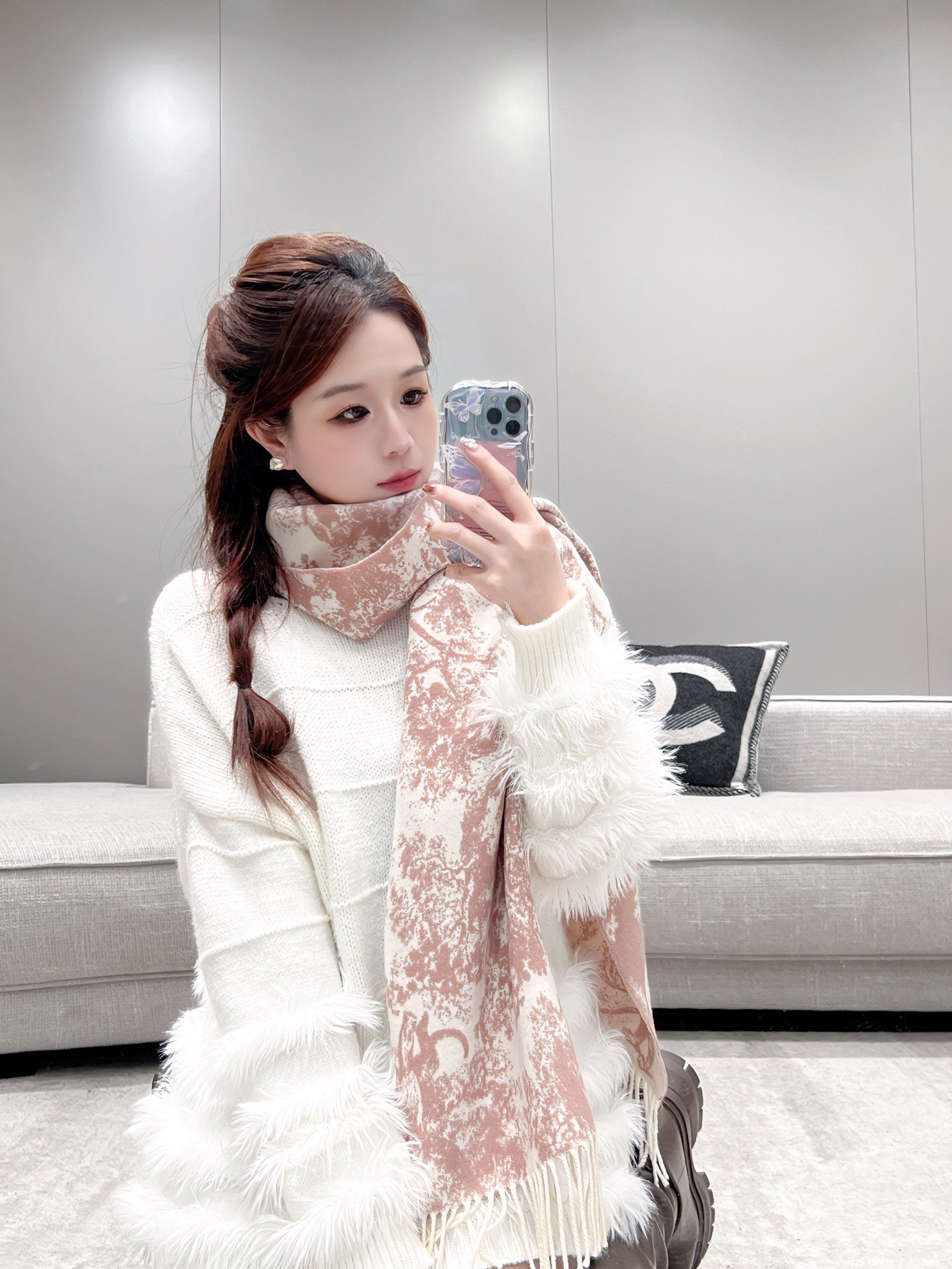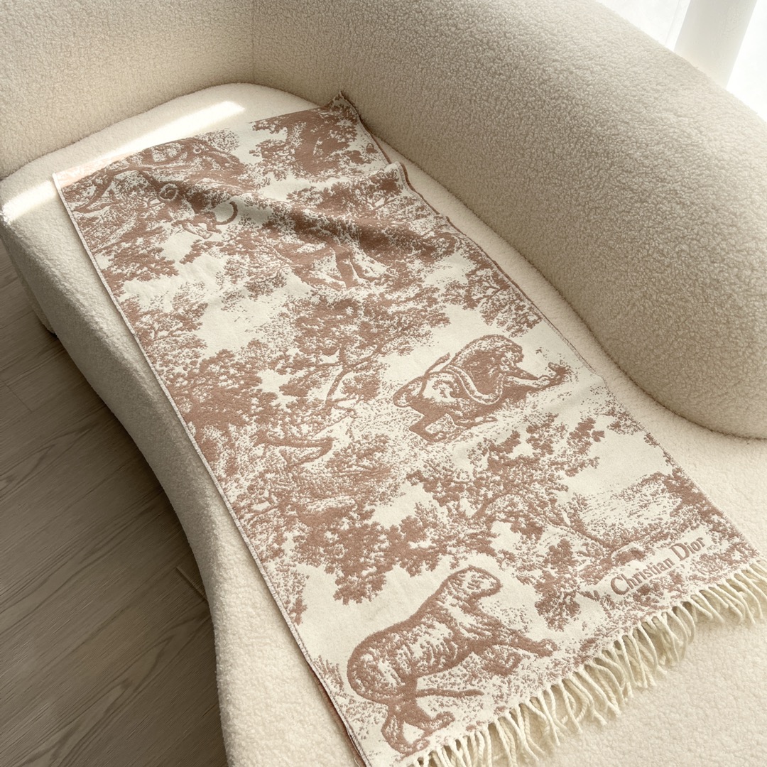 茹伊印花,一直都是Dior最珍视的主题元素, 精工描绘立体提花,灵动的视觉感,留白效果柔化印花自带的隆重感,极具中国美学特征,演绎经典优雅魅力,精致手工打穗 双层织造,两面可用 百搭出挑!送礼自用都敲推荐