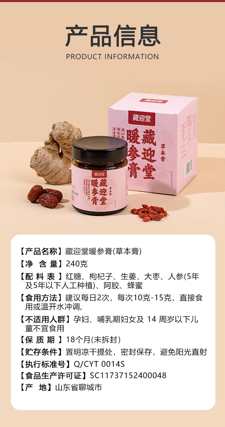 藏迎堂阿胶姜枣暖参膏旗舰店补气养血养颜暖身驱寒安神正品旗舰店