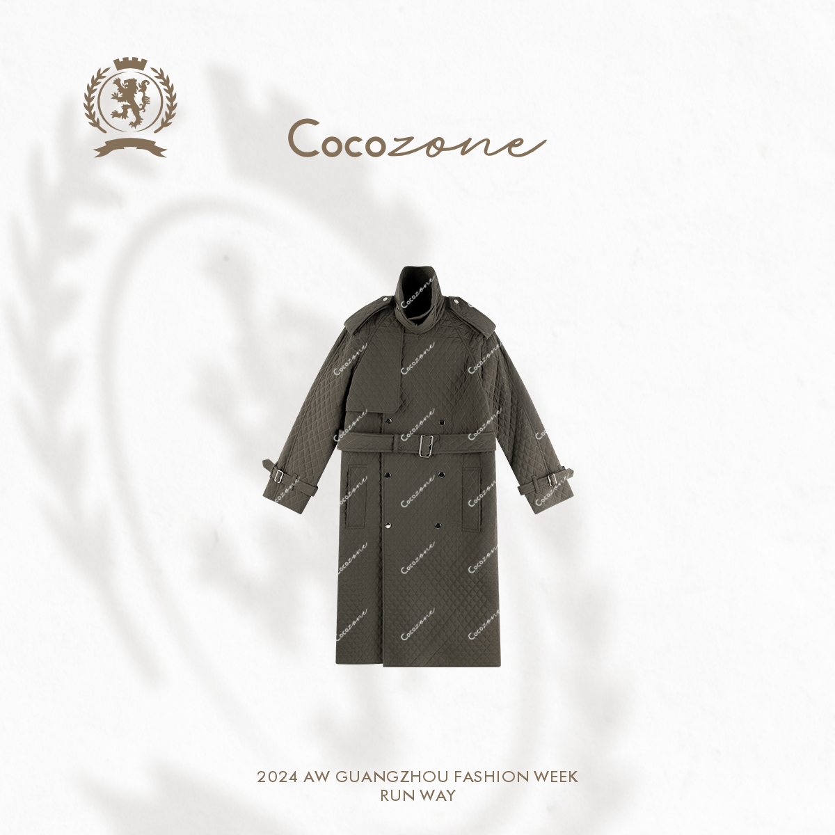 COCO ZONE 高级感复古菱格气质长款保暖立领棉服CC2C1984