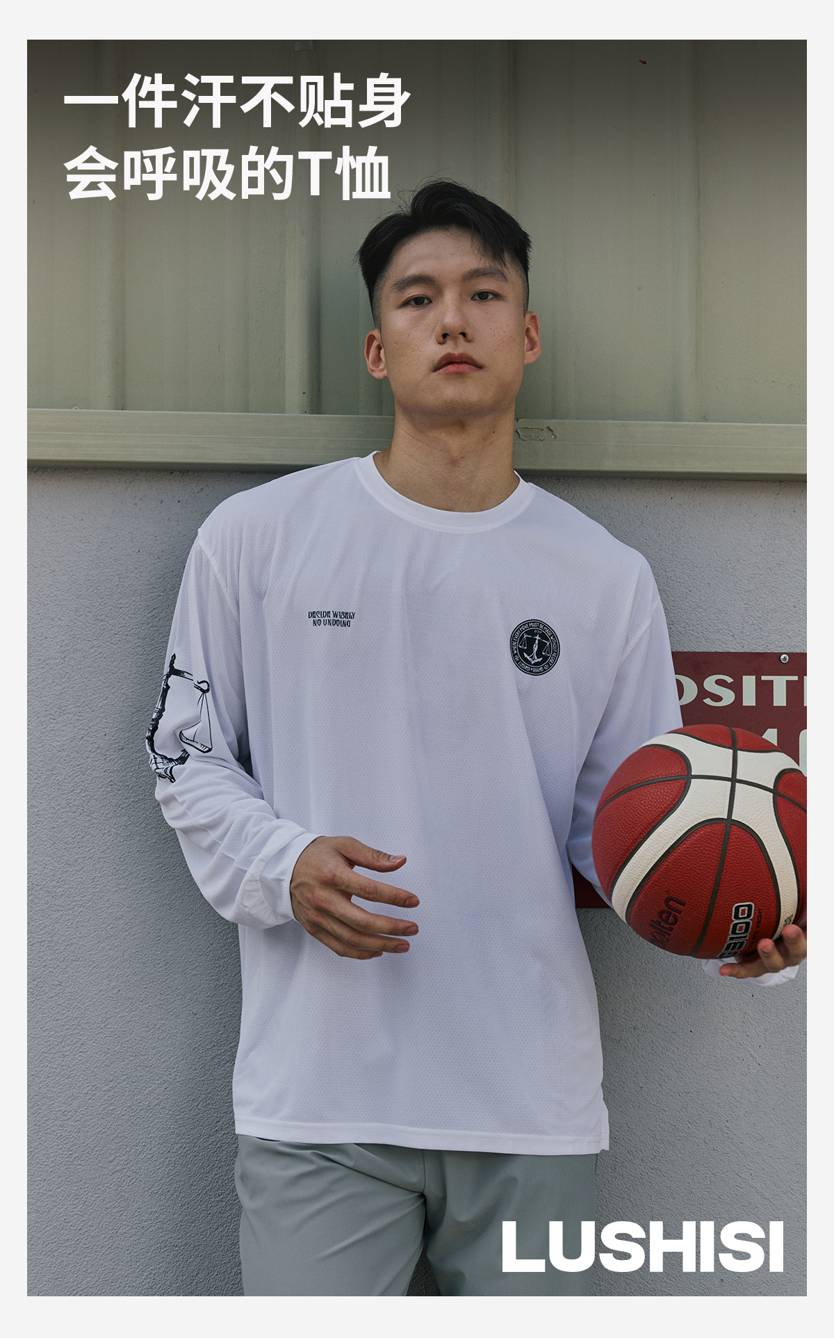 录士LUSHISI平衡长袖美式投篮服篮球休闲运动速干吸湿排汗长袖男