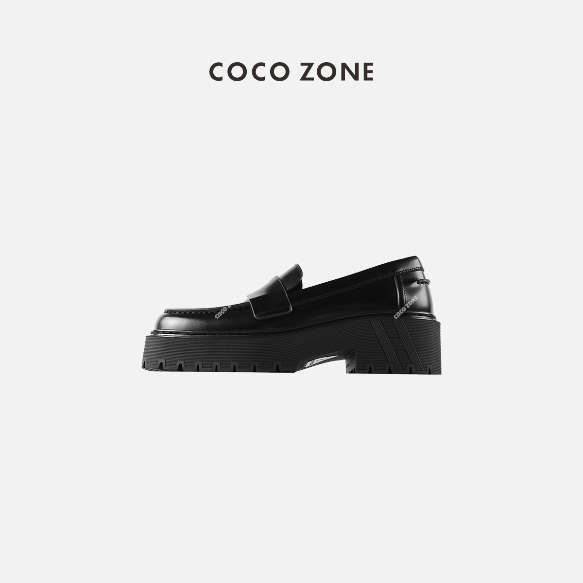 COCOZONE真皮圆头厚底小皮鞋松糕一脚蹬乐福鞋23C29638