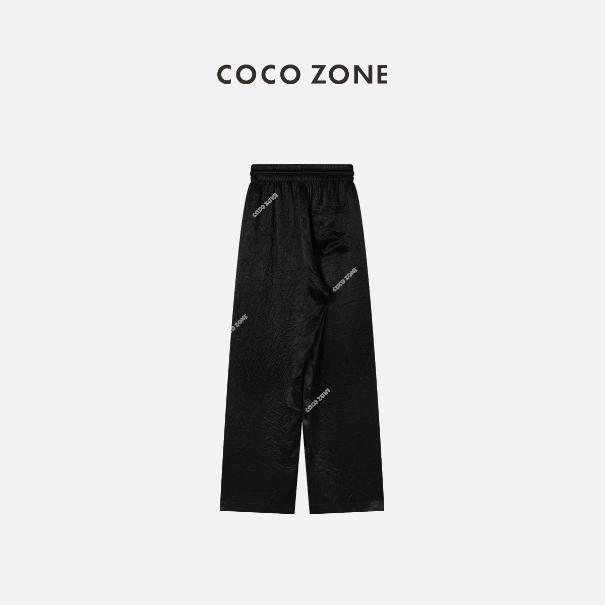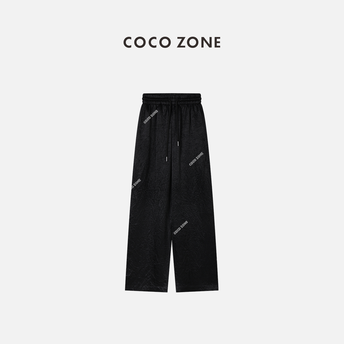 COCO ZONE 女士经典弹力系绳阔腿裤醋酸皱感休闲裤 23C18414