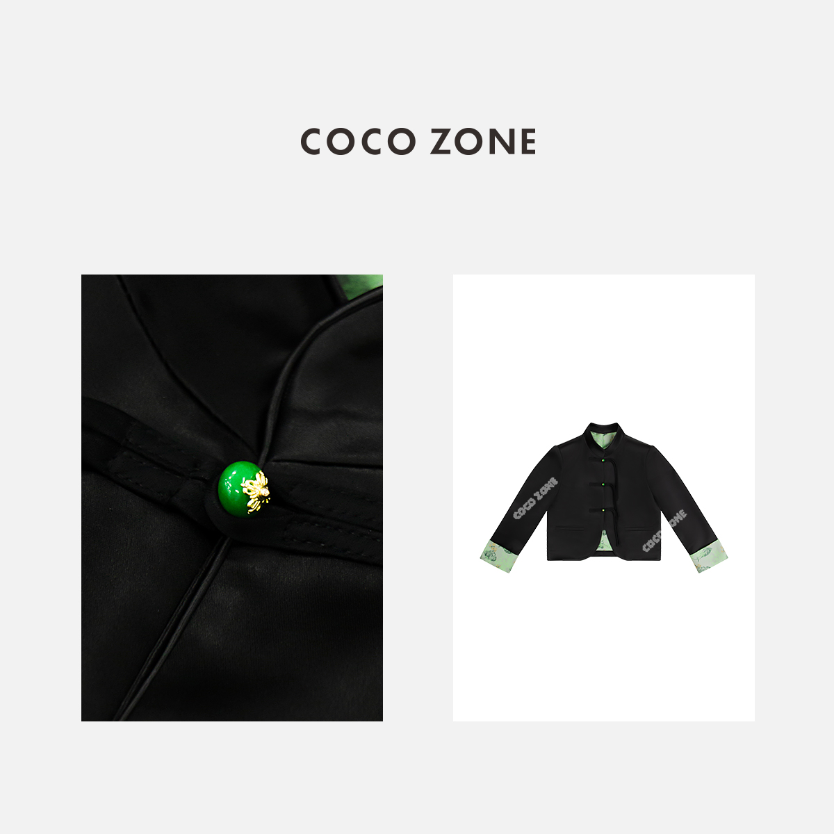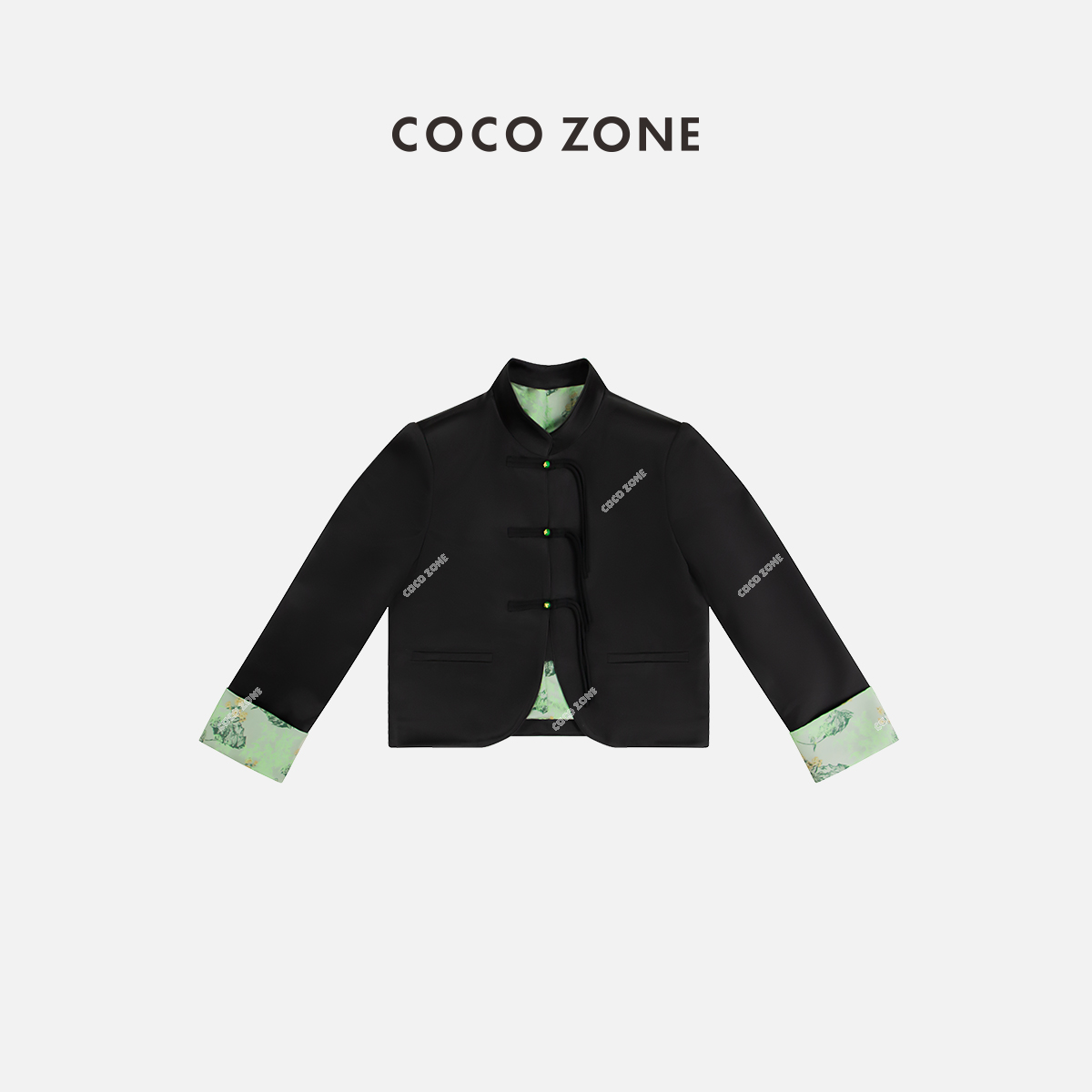 COCO ZONE2024新中式国风盘扣外套撞色拼接立领上衣CC1A0493