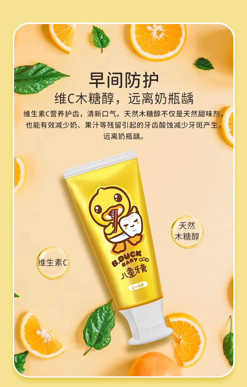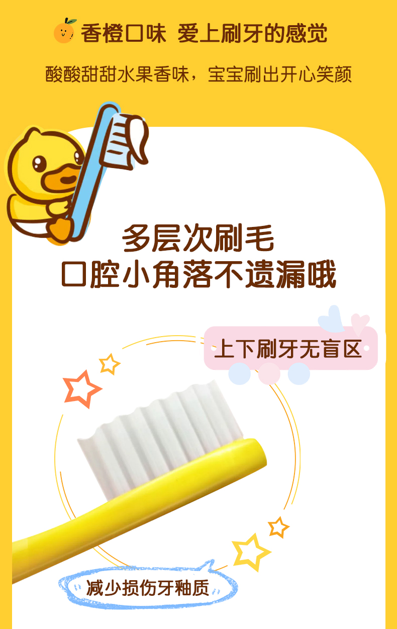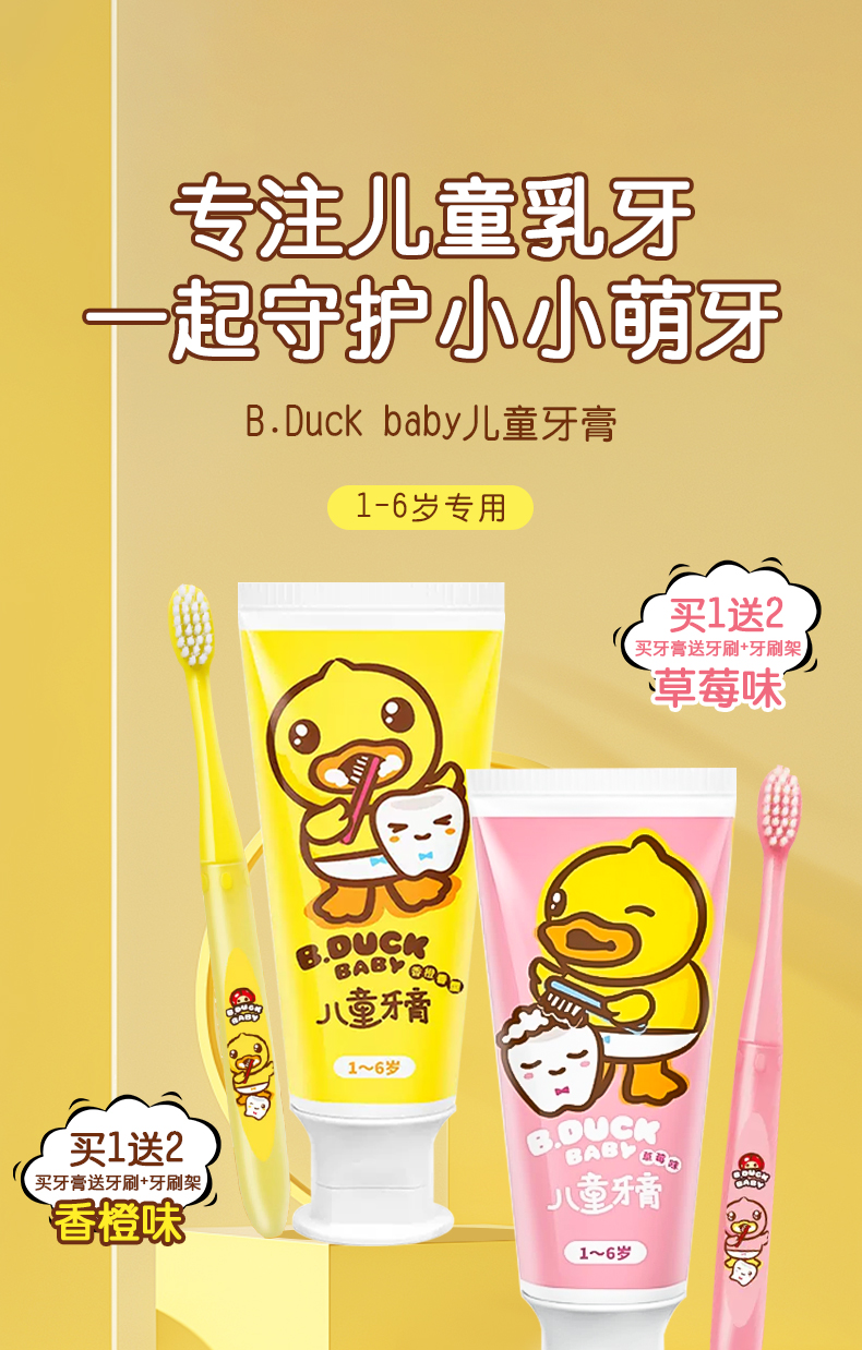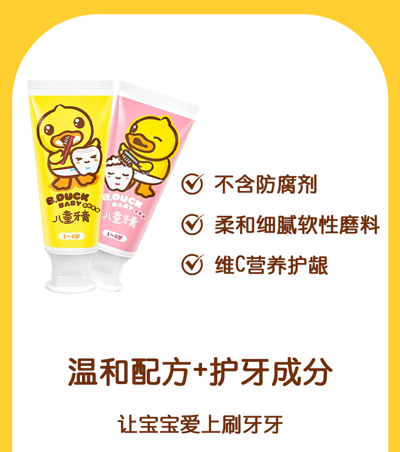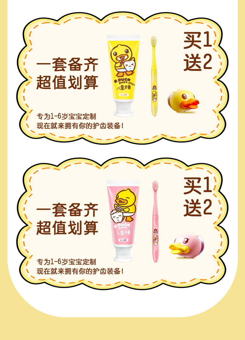 【牙膏+牙刷+支架套装】B.Duck小黄鸭儿童牙膏1-6-12岁以上含氟宝宝牙膏可防蛀防龋齿不吞咽 50g牙膏+1支牙刷+1个牙刷架