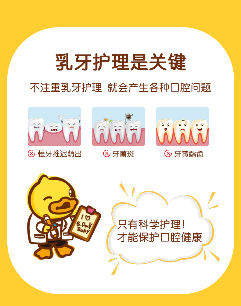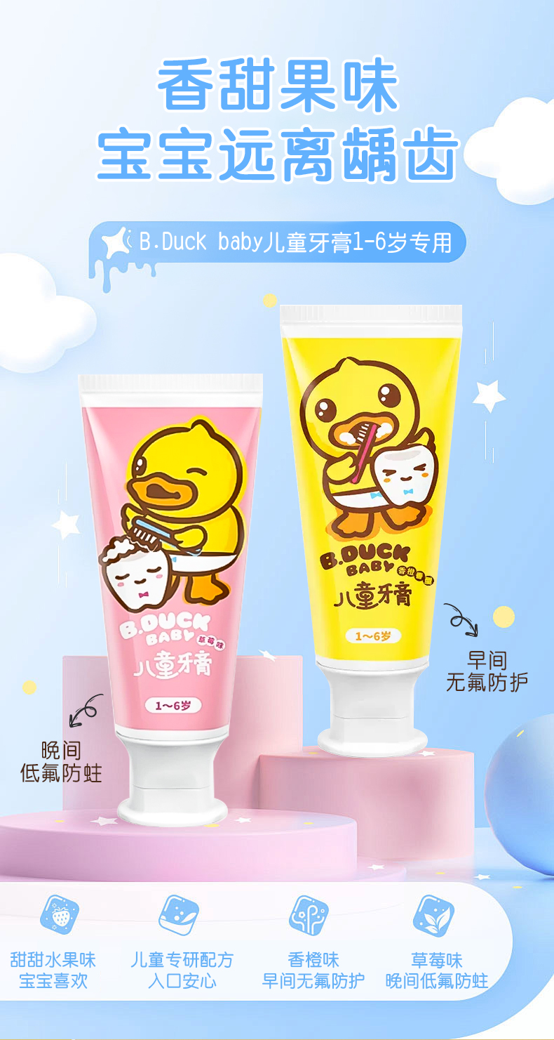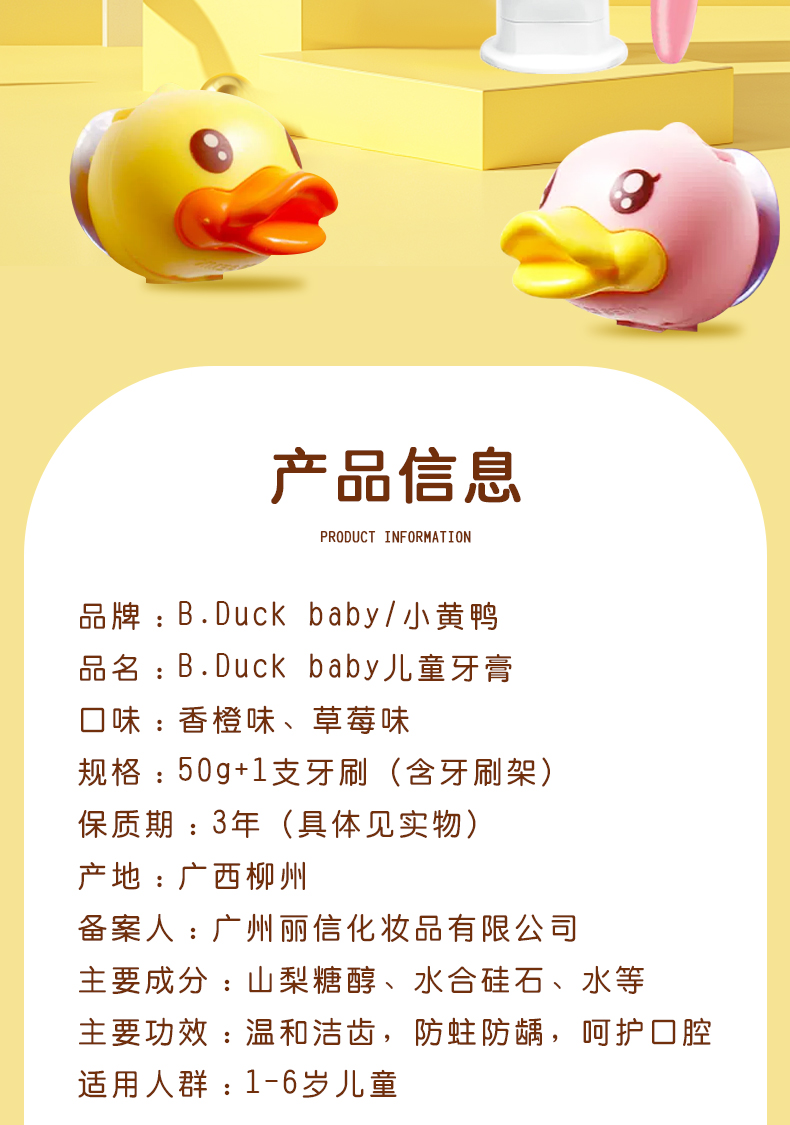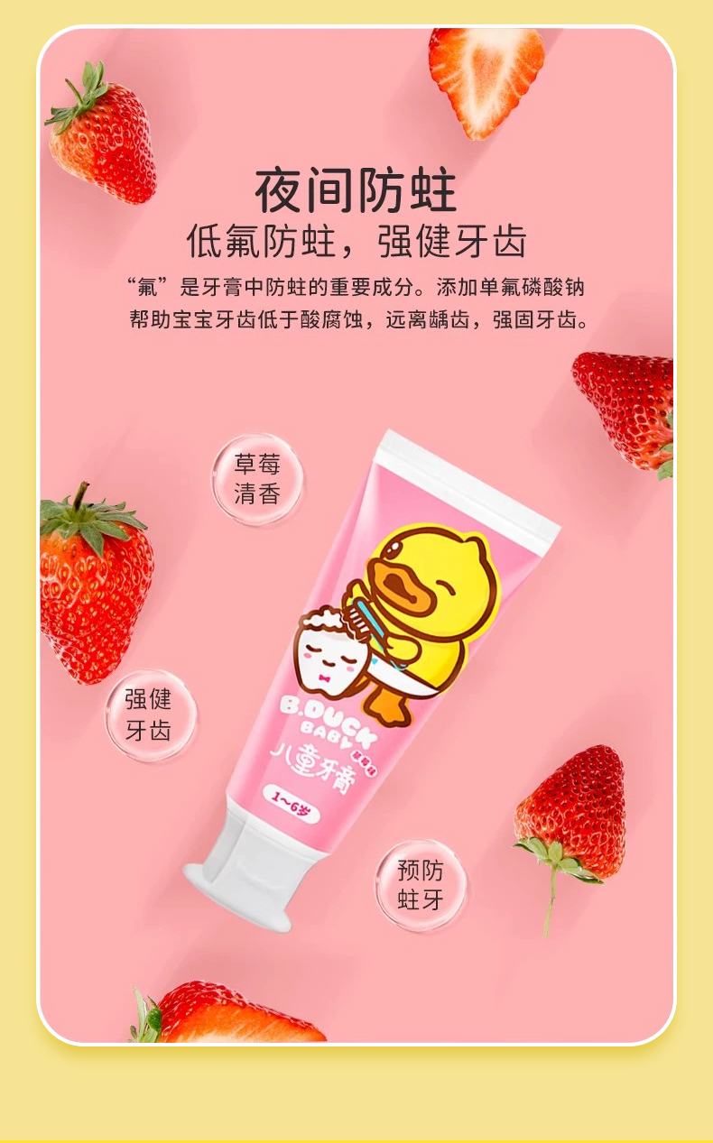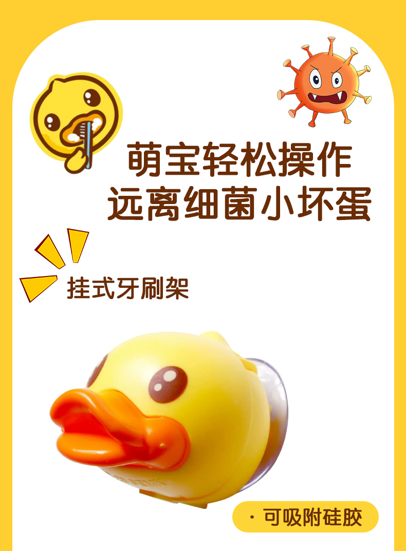 【牙膏+牙刷+支架套装】B.Duck小黄鸭儿童牙膏1-6-12岁以上含氟宝宝牙膏可防蛀防龋齿不吞咽 50g牙膏+1支牙刷+1个牙刷架