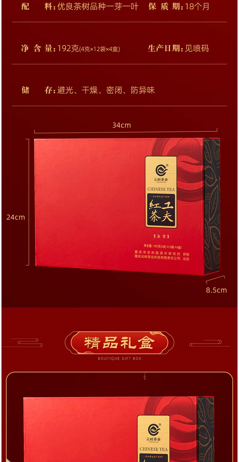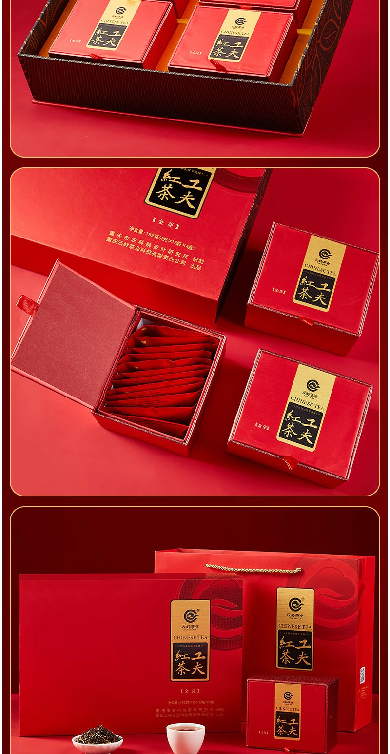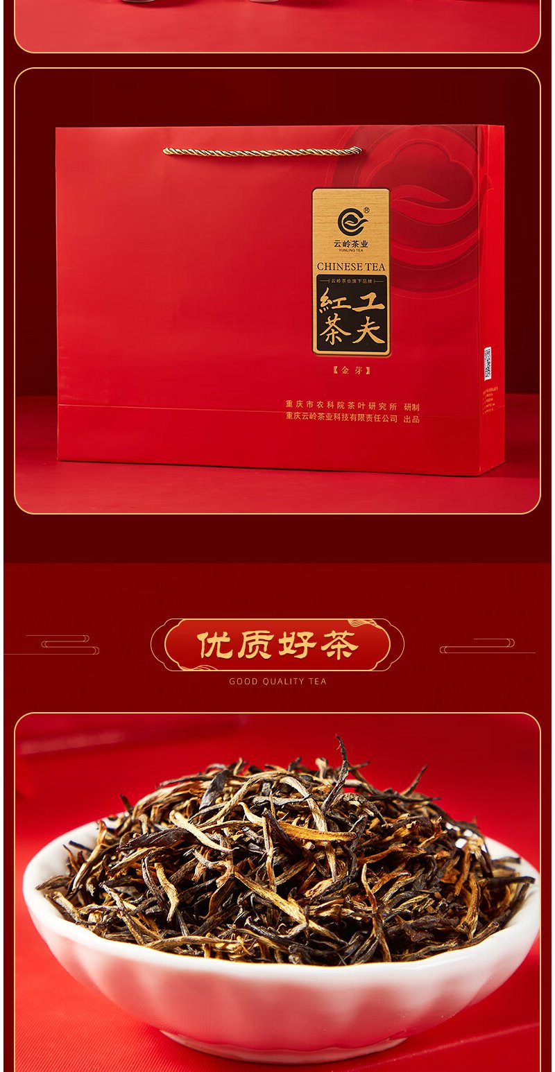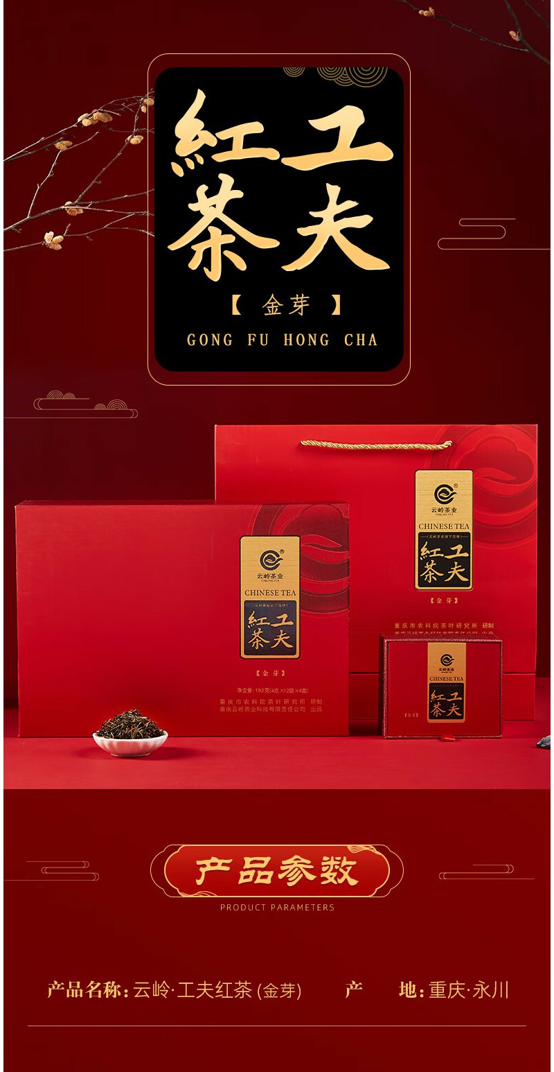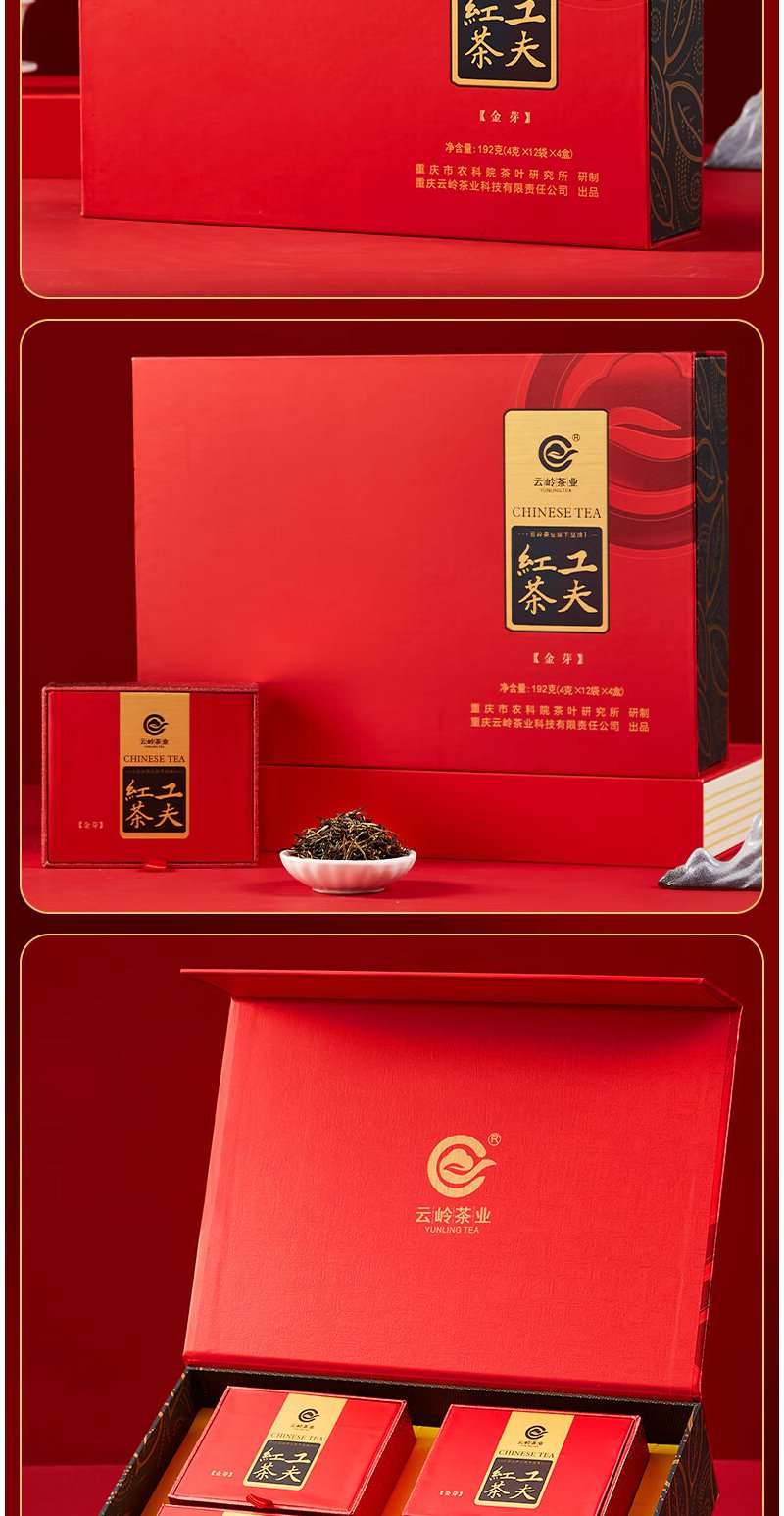 云岭茶业 工夫红茶(金芽)高档茶叶礼盒装重庆特产送礼 红色礼盒192g