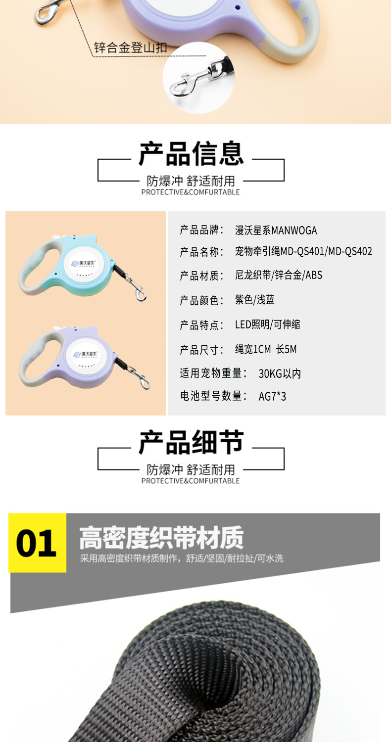 漫沃星系宠物自动牵引绳MD-QS402