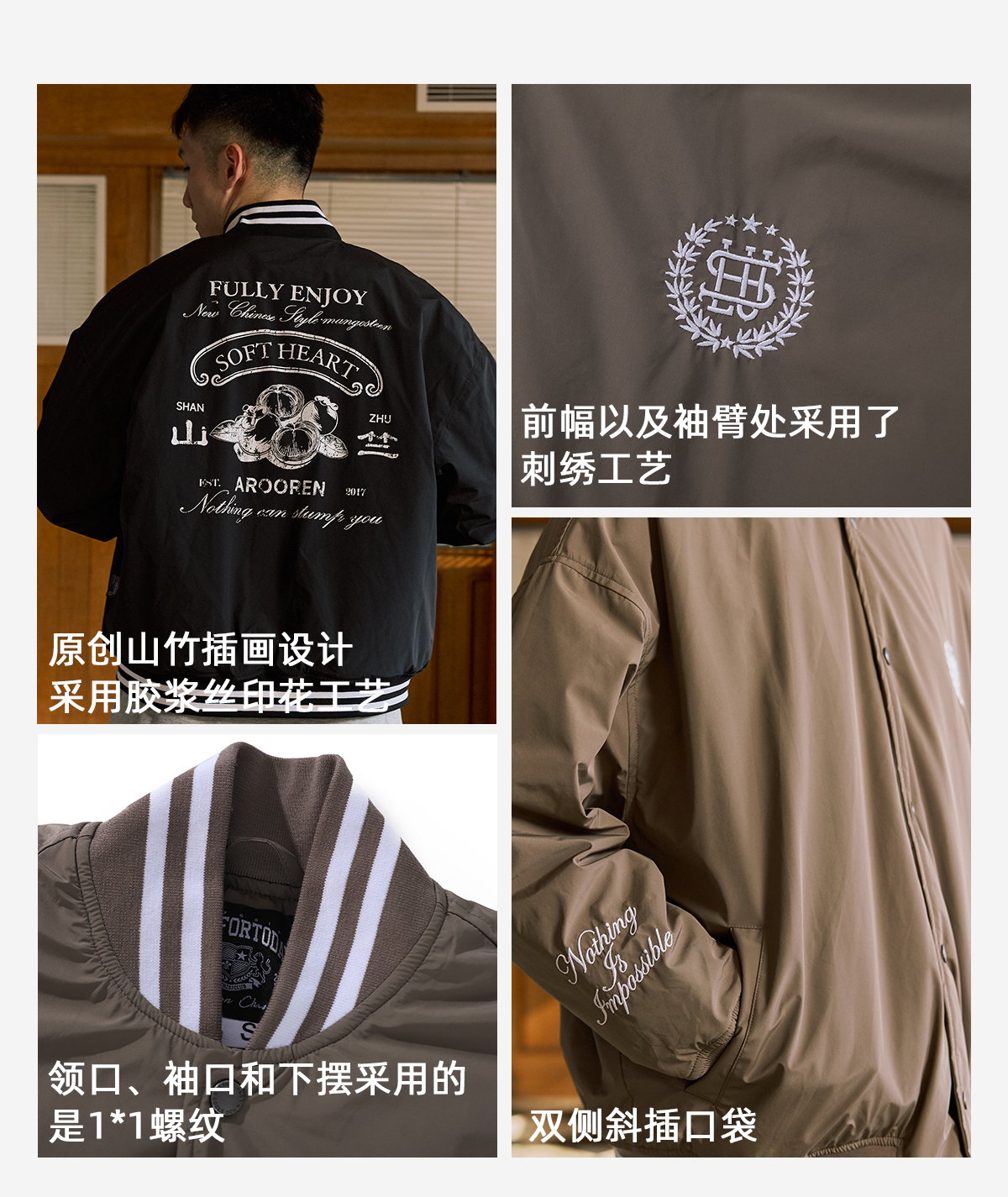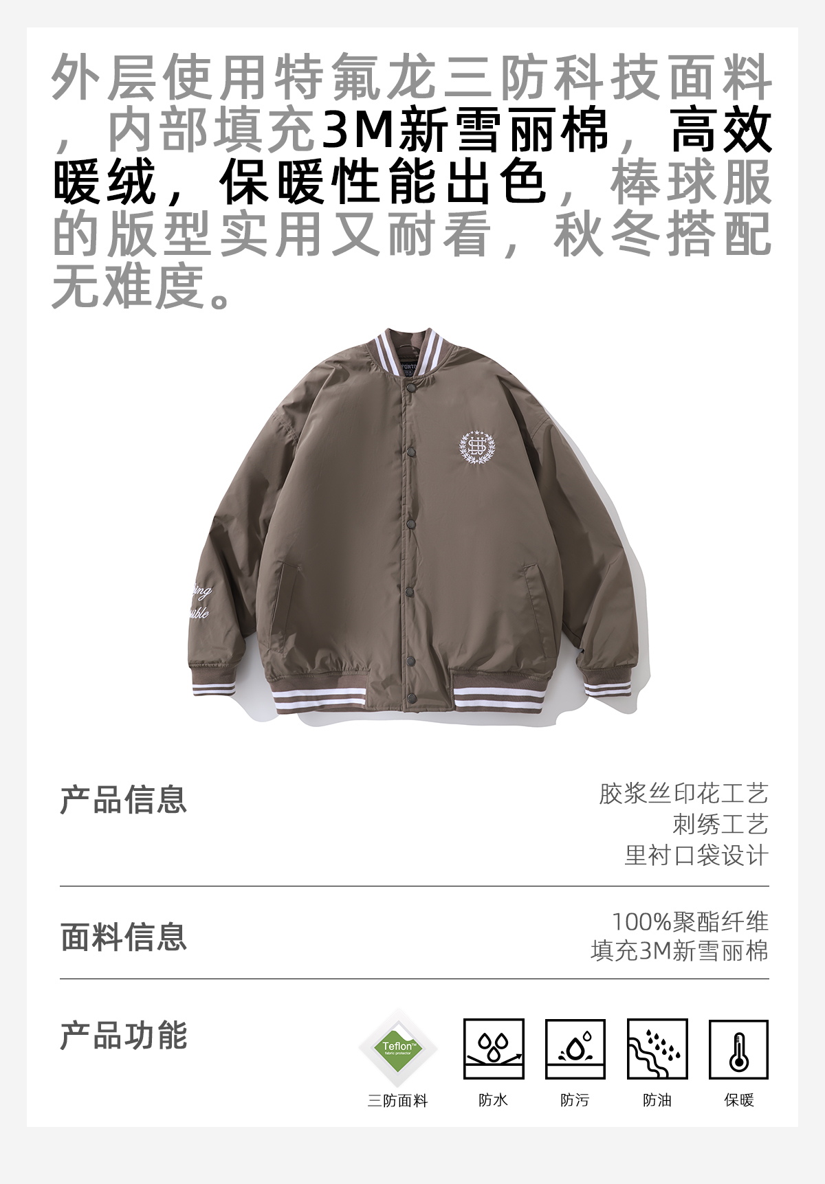LUSHISI山竺主题棒球服特氟龙三防表层3M新雪丽棉保暖厚情侣外套