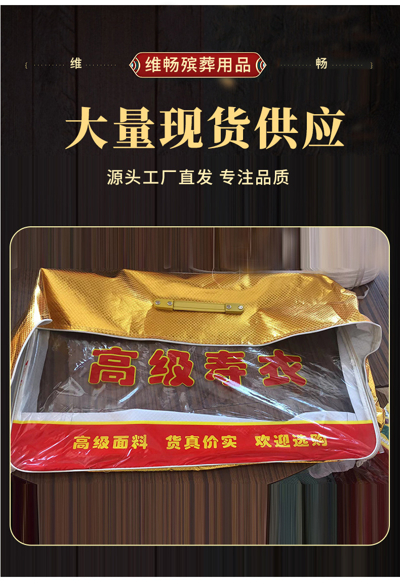 黄包寿衣包装袋寿衣寿鞋寿帽各种殡葬用品白事寿衣包装袋