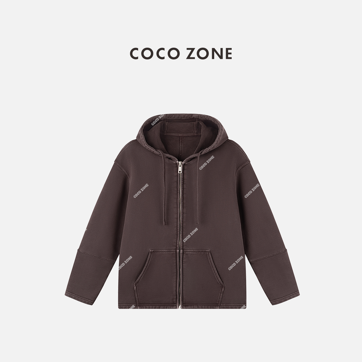 COCO ZONE 100棉秋季休闲纯色连帽女士外套CC1C1840